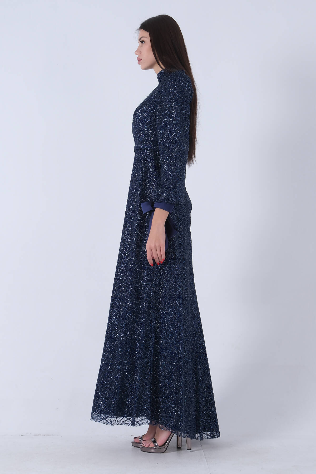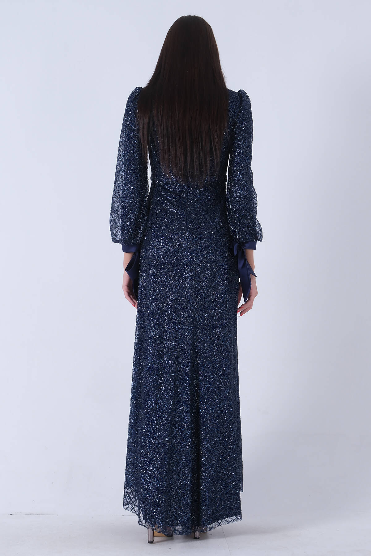 Lacivert Bilek Ucu Tüylü Pul Payetli Tesettür Abiye 6502496.02