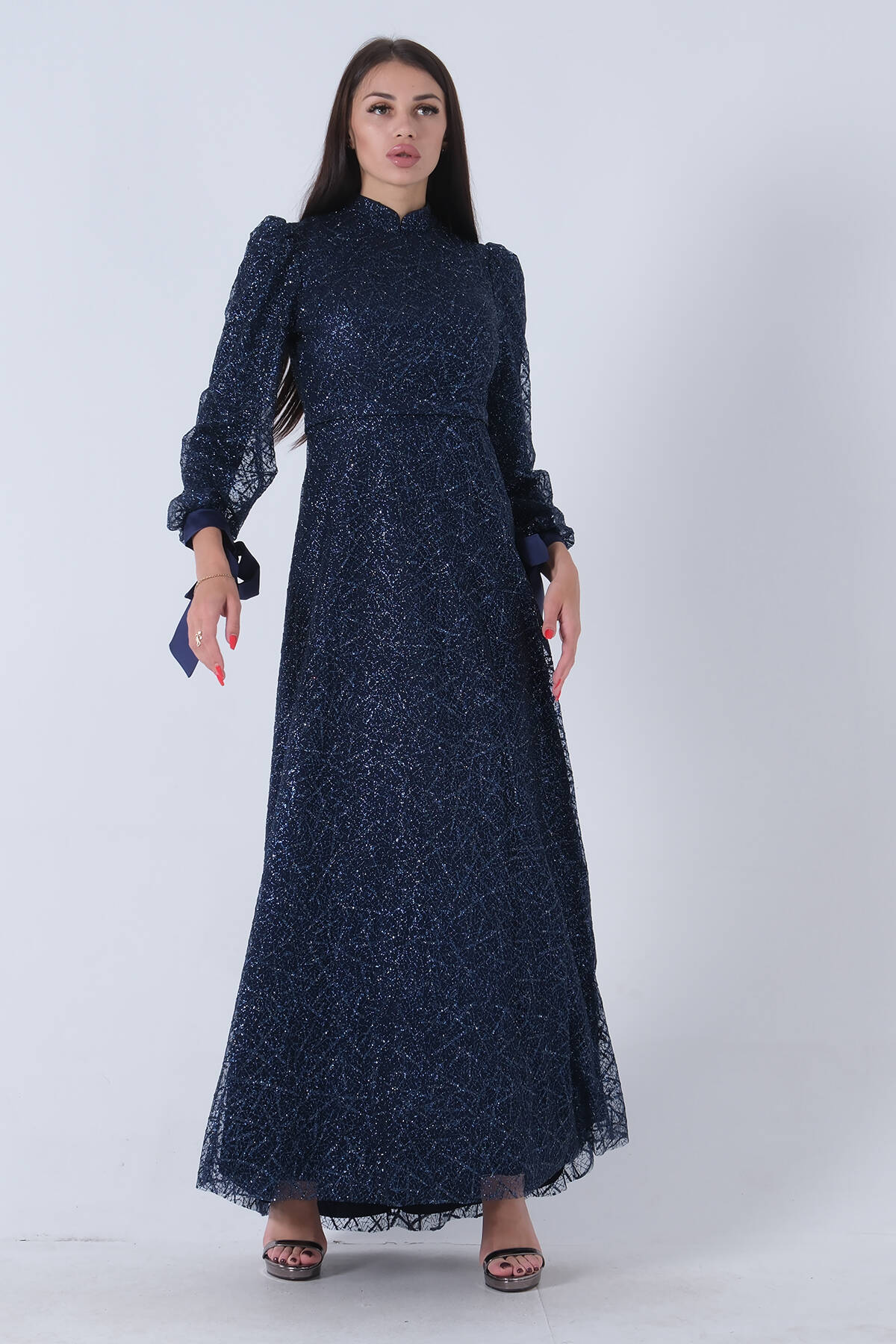 Lacivert Hakim Yaka Simli Bileği Bağlamalı Tesettür Abiye 6502480.02