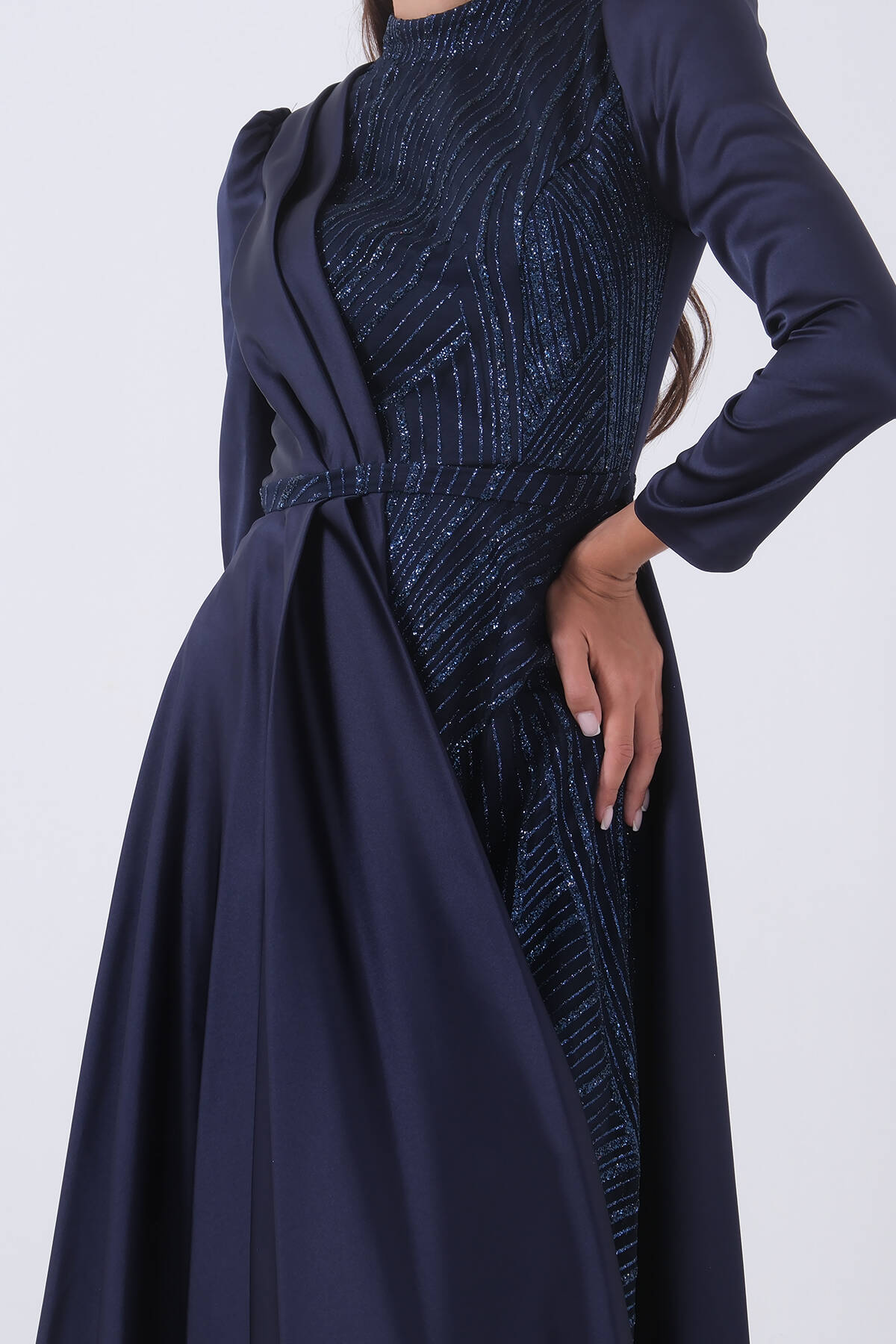 Lacivert İç Kısmı Simli Saten Abiye 6502431.02