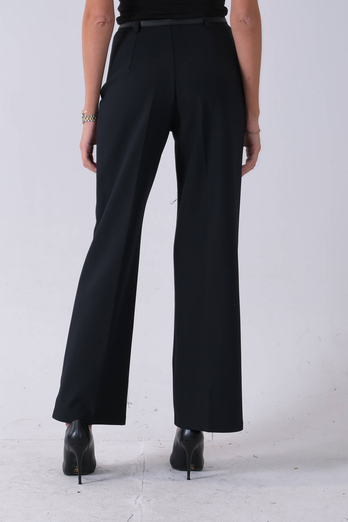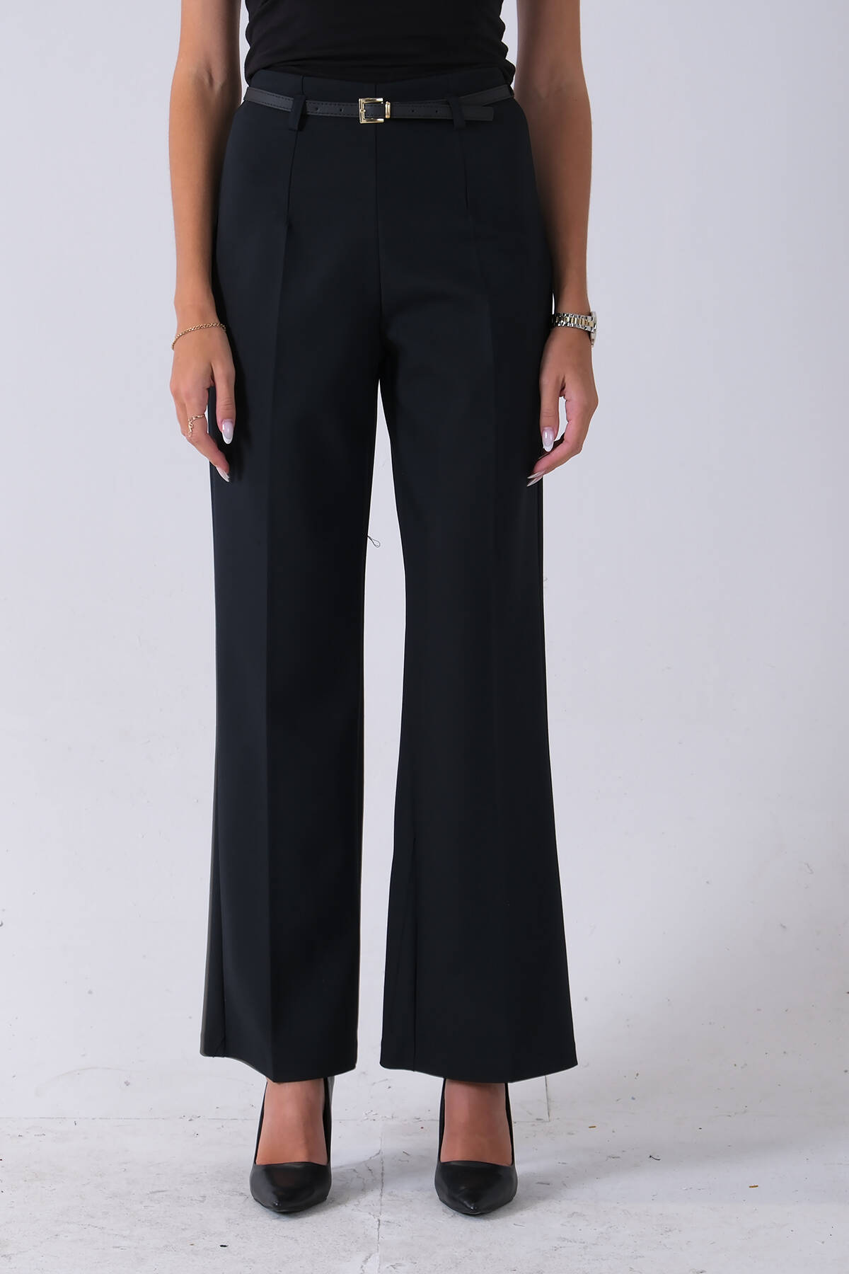 Siyah İnce Kemerli Cepsiz Bol Paça Uzun Pantolon 03030306.01
