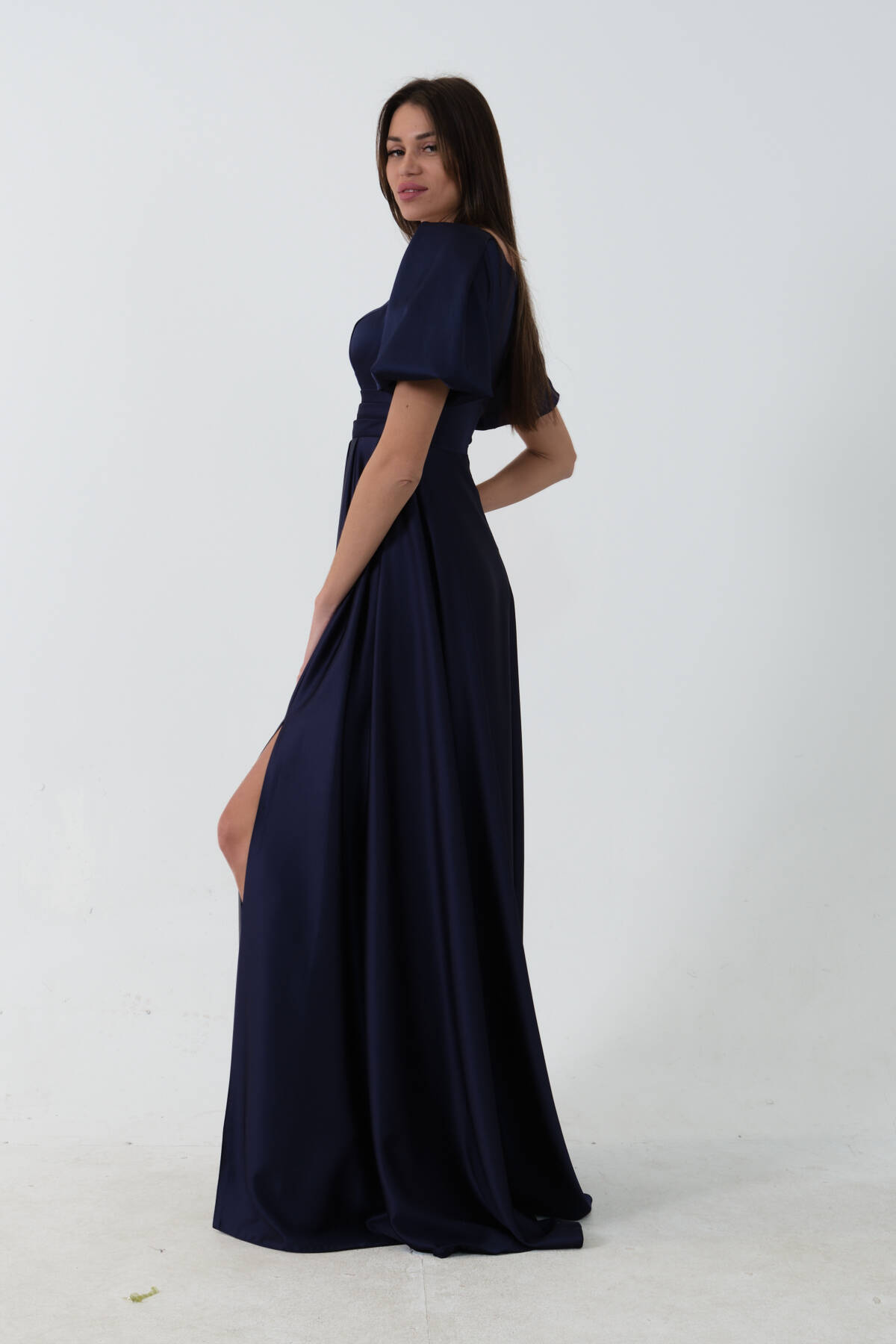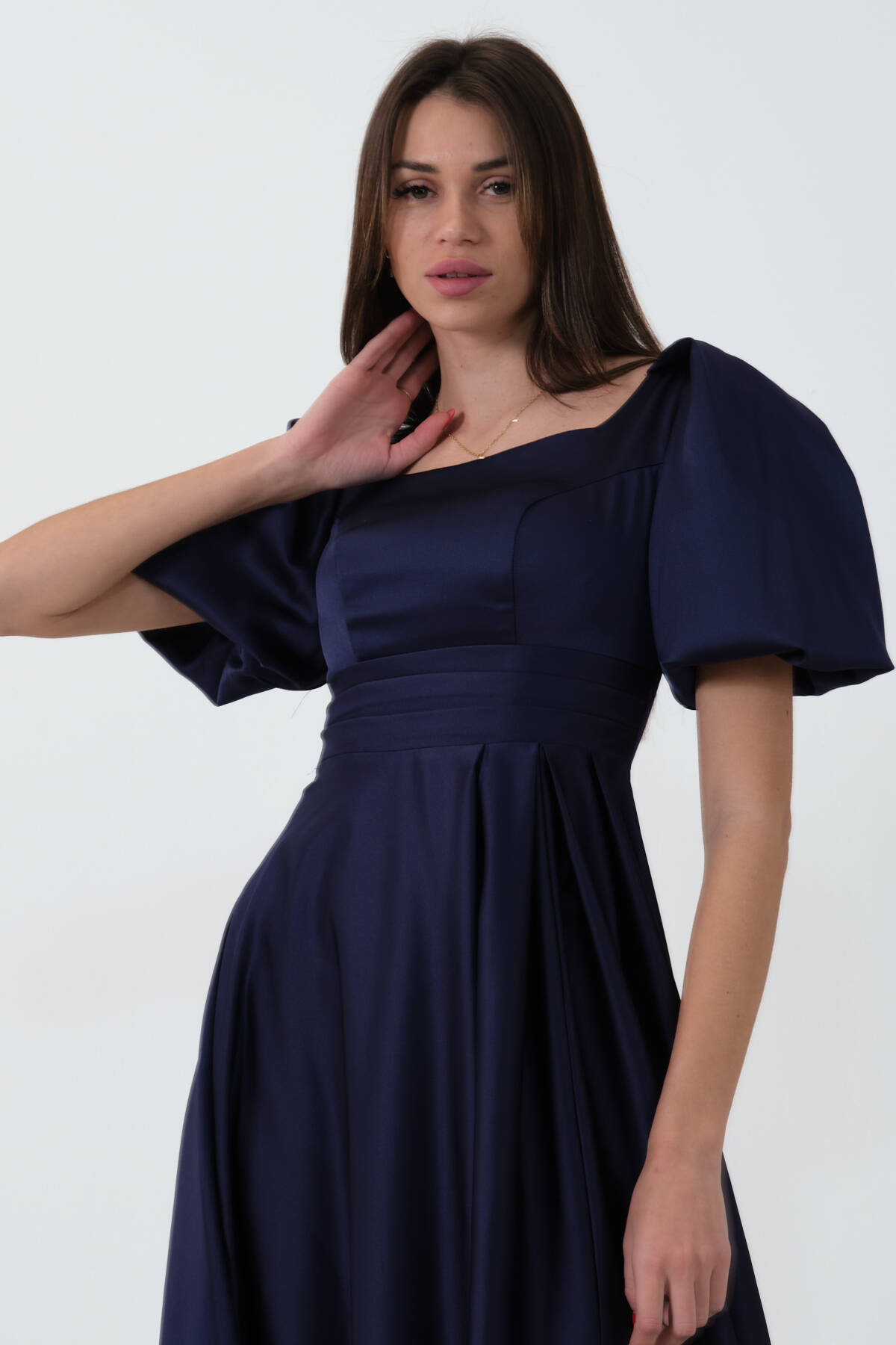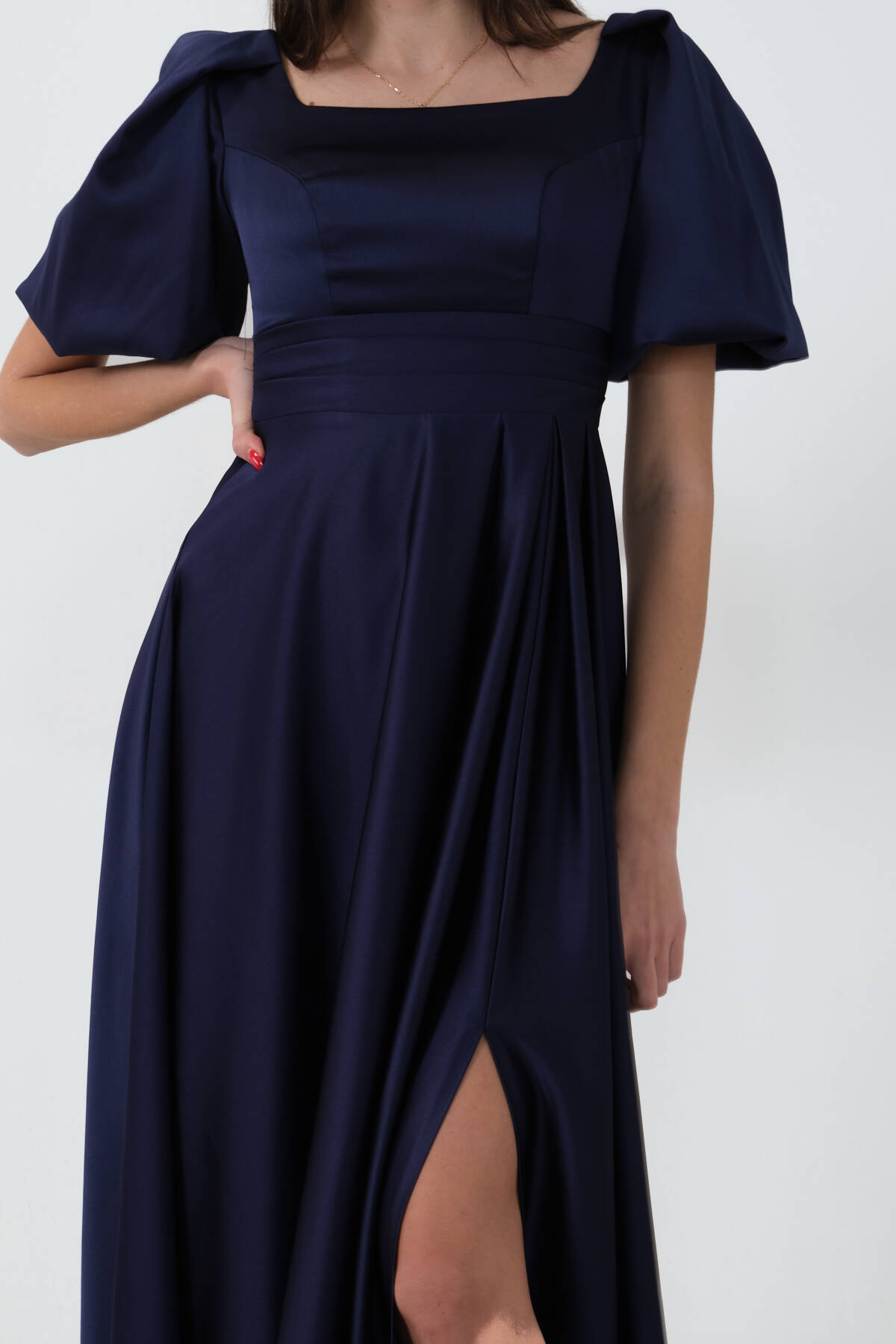 Lacivert Kare Yaka Balon Kol Abiye 0801121.02