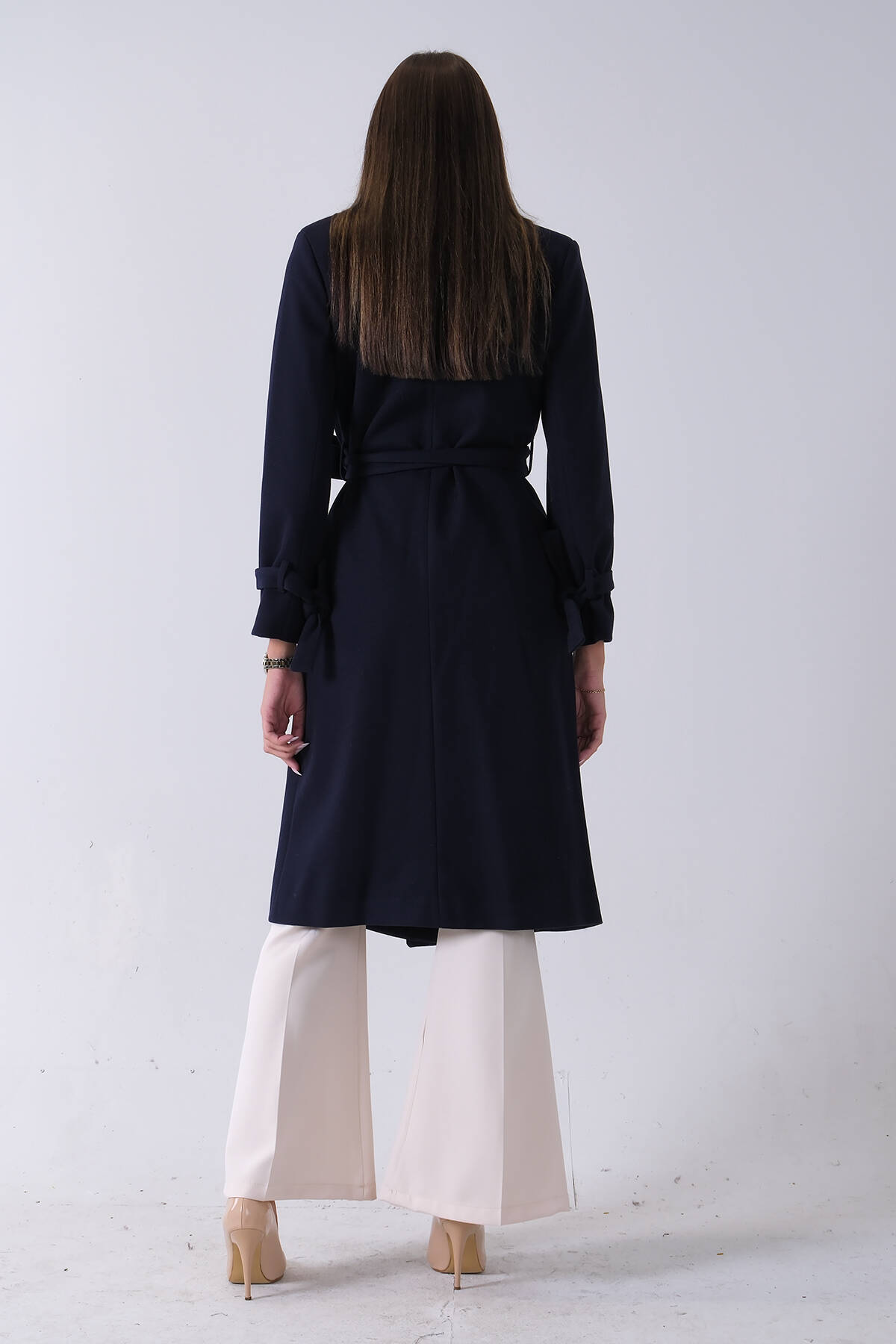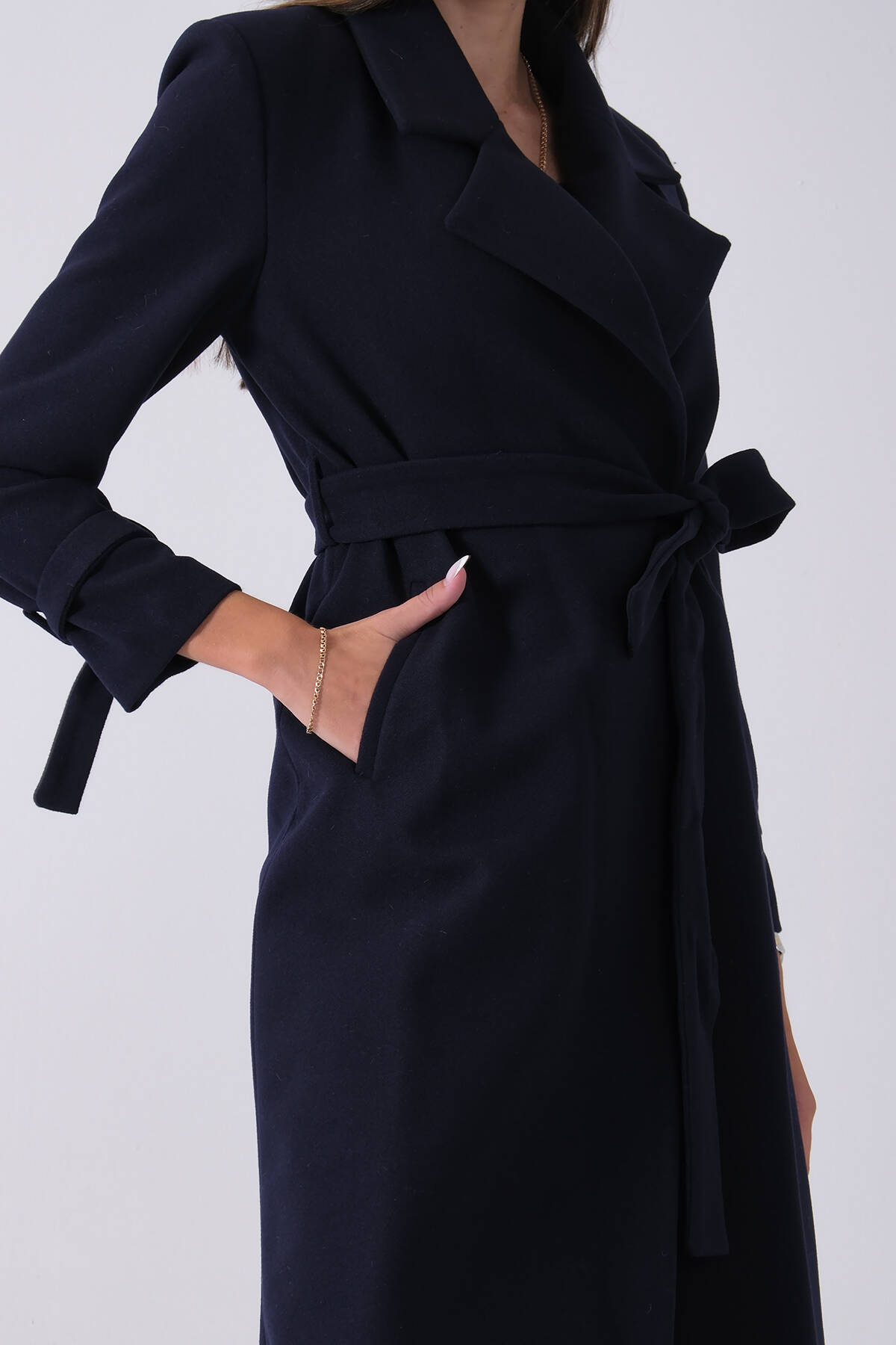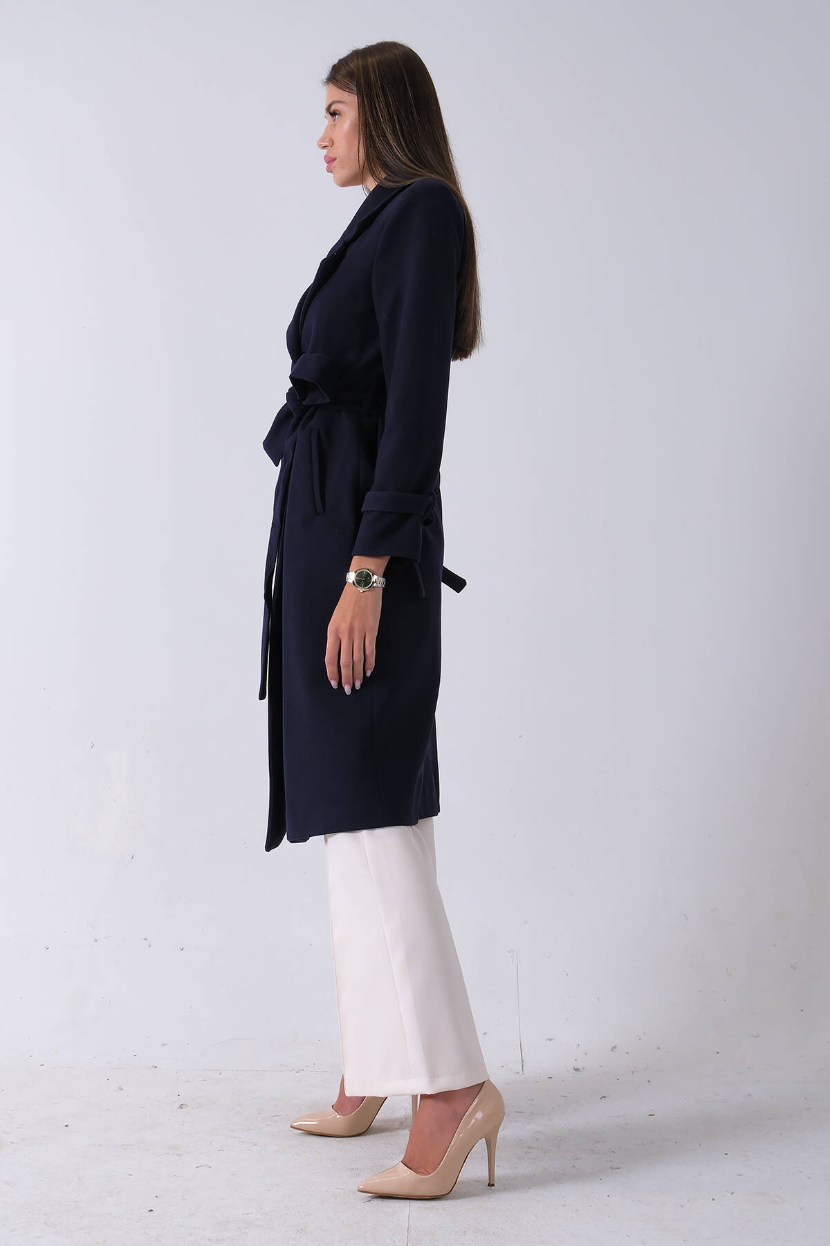 Lacivert Kol Bağlamalı Seyyar Kuşaklı Uzun Kaşe Kaban 41630051.02