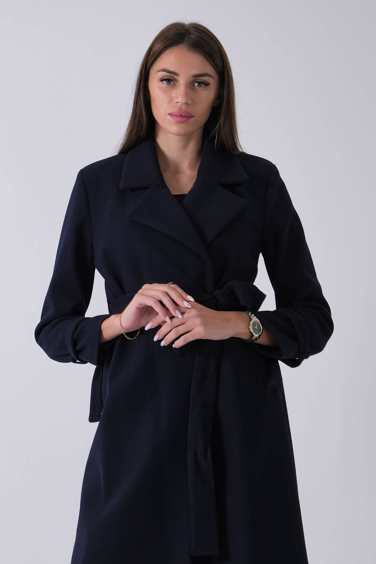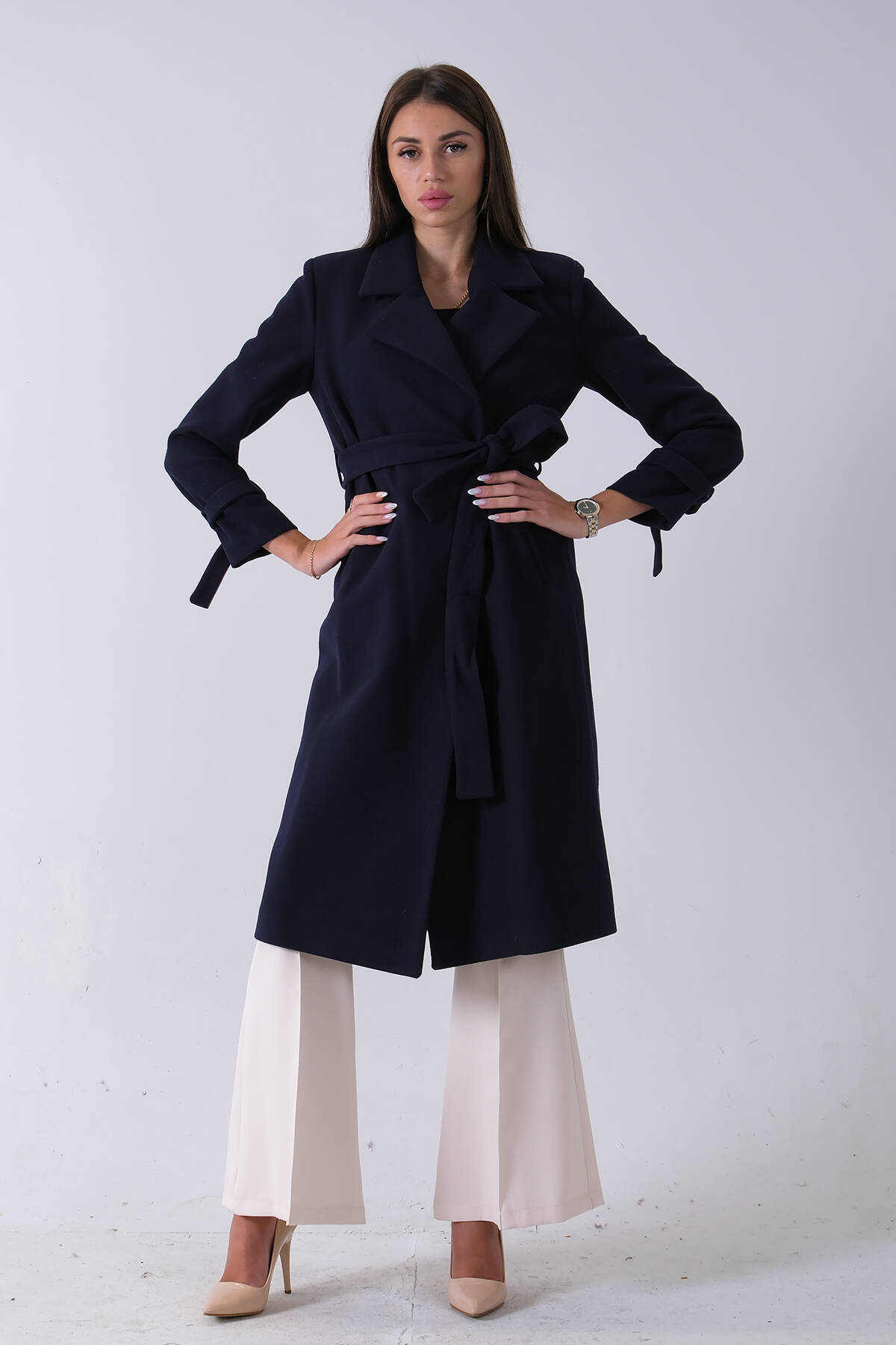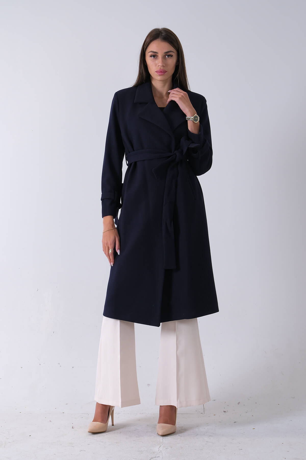 Lacivert Kol Bağlamalı Seyyar Kuşaklı Uzun Kaşe Kaban 41630051.02
