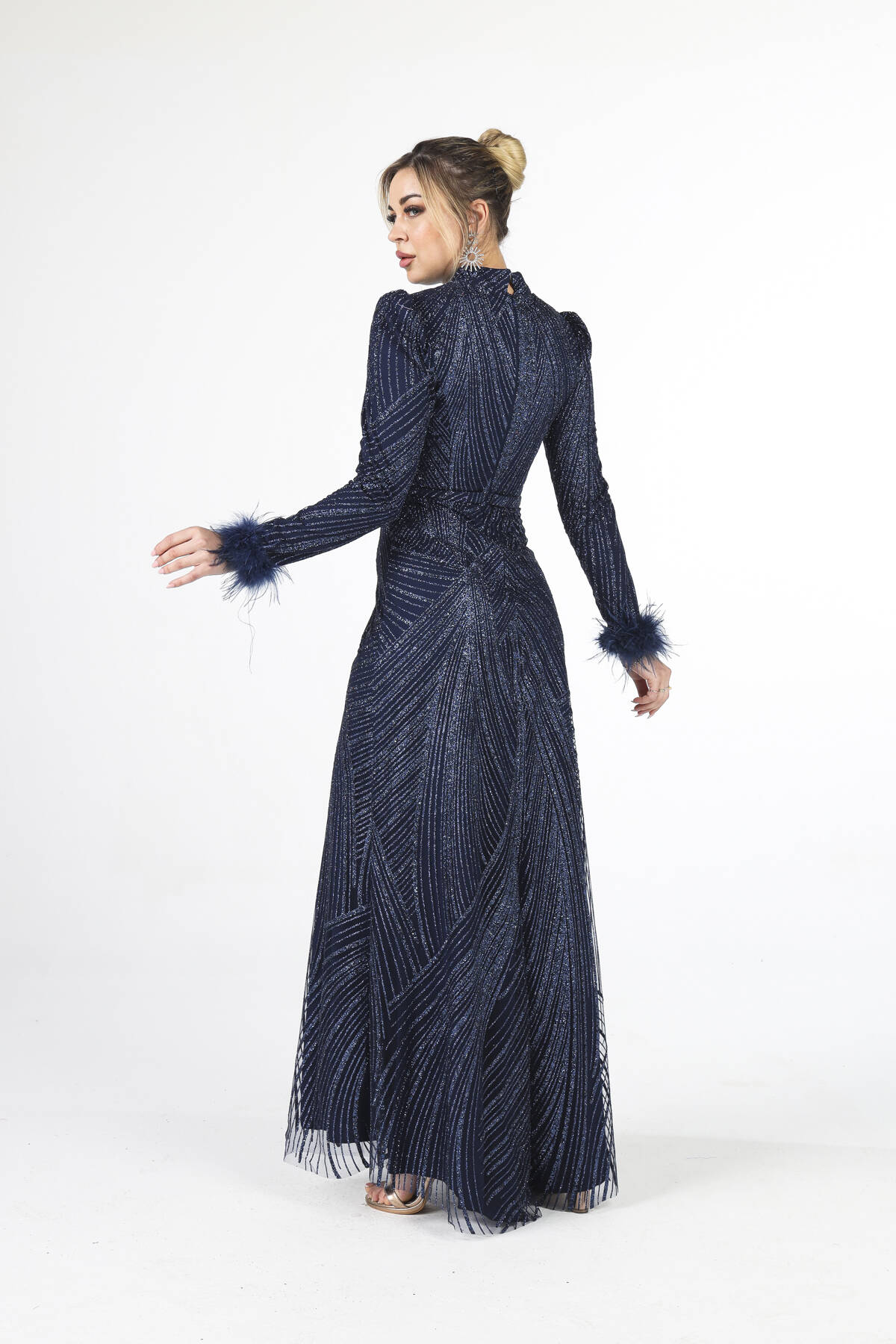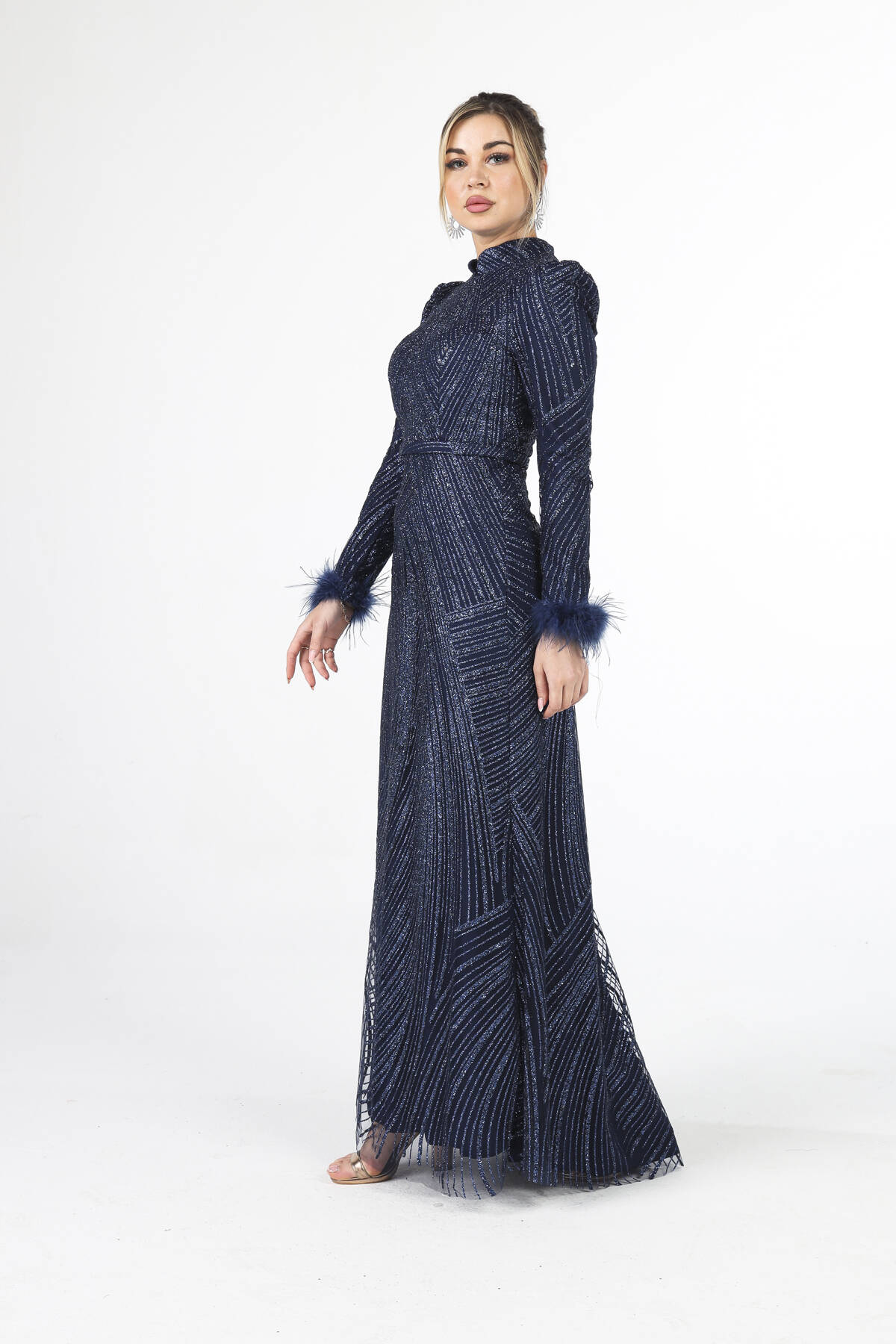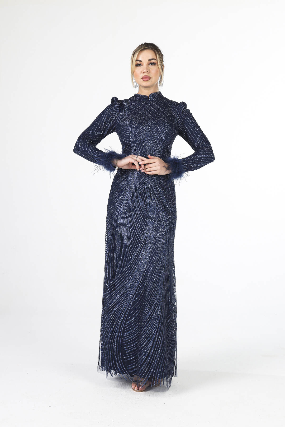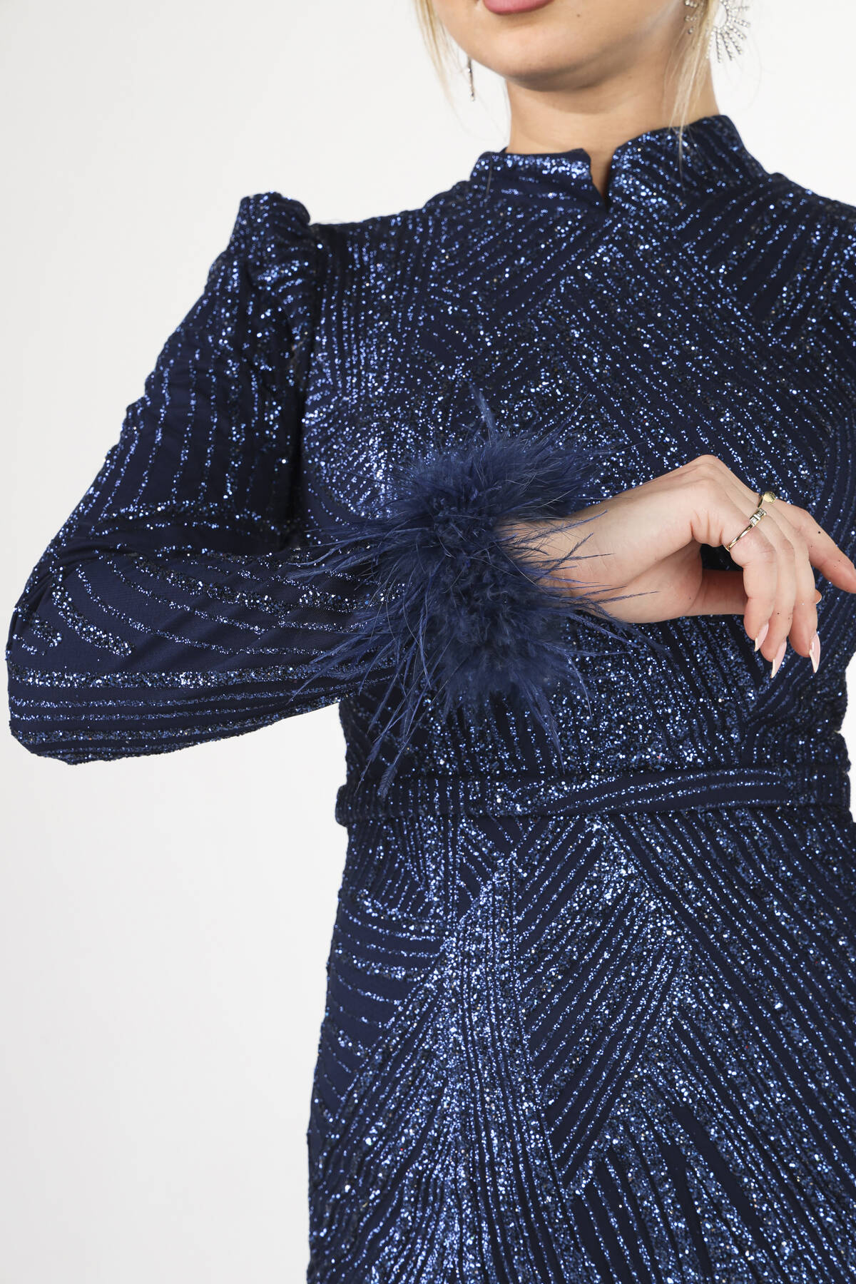 Modelin Ölçüleri : Boy: 1.80 cm / Göğüs: 88 cm / Bel: 69 cm /Basen : 94 cm Mankenin Üzerindeki Ürün 38/M Bedendir %100 Polyester Uzun Hakim Yaka Balon Kol Kol Uçları Tüylü Simli Abiye Ürün Boyu : 158 cm Stüdyo Çekimlerinde Renkler Işık Farklılıgından Dolayı Değişiklik Gösterebilir (Dikkat! Ürünlerimiz güvenlik bandı ile gönderilmektedir . Güvenlik bandı olmayan ürünlerin iadesi kabul edilmeyecektir)