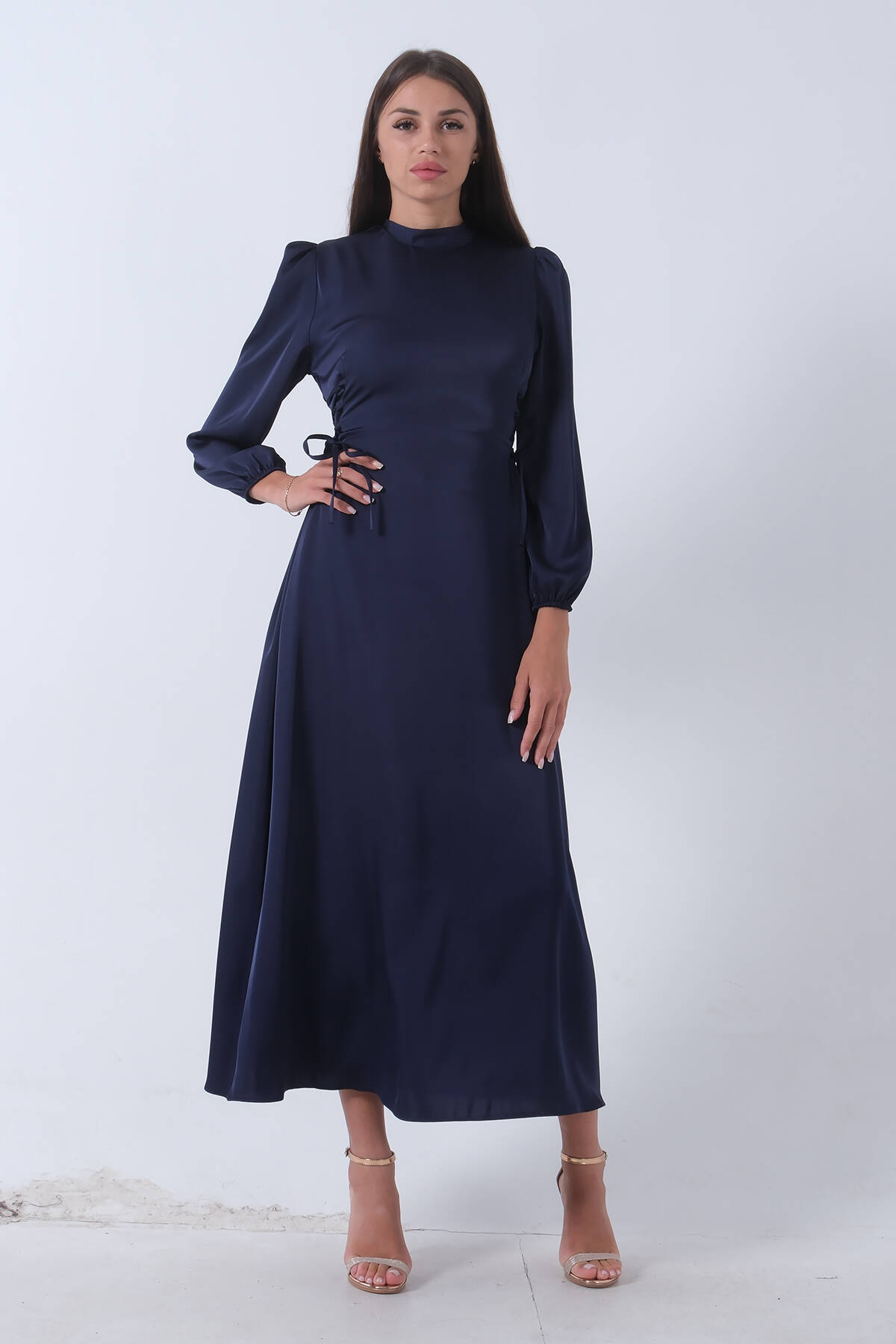 Lacivert Kolları Volanlı Yandan Bağlama İp Detaylı Elbise 31061422.02