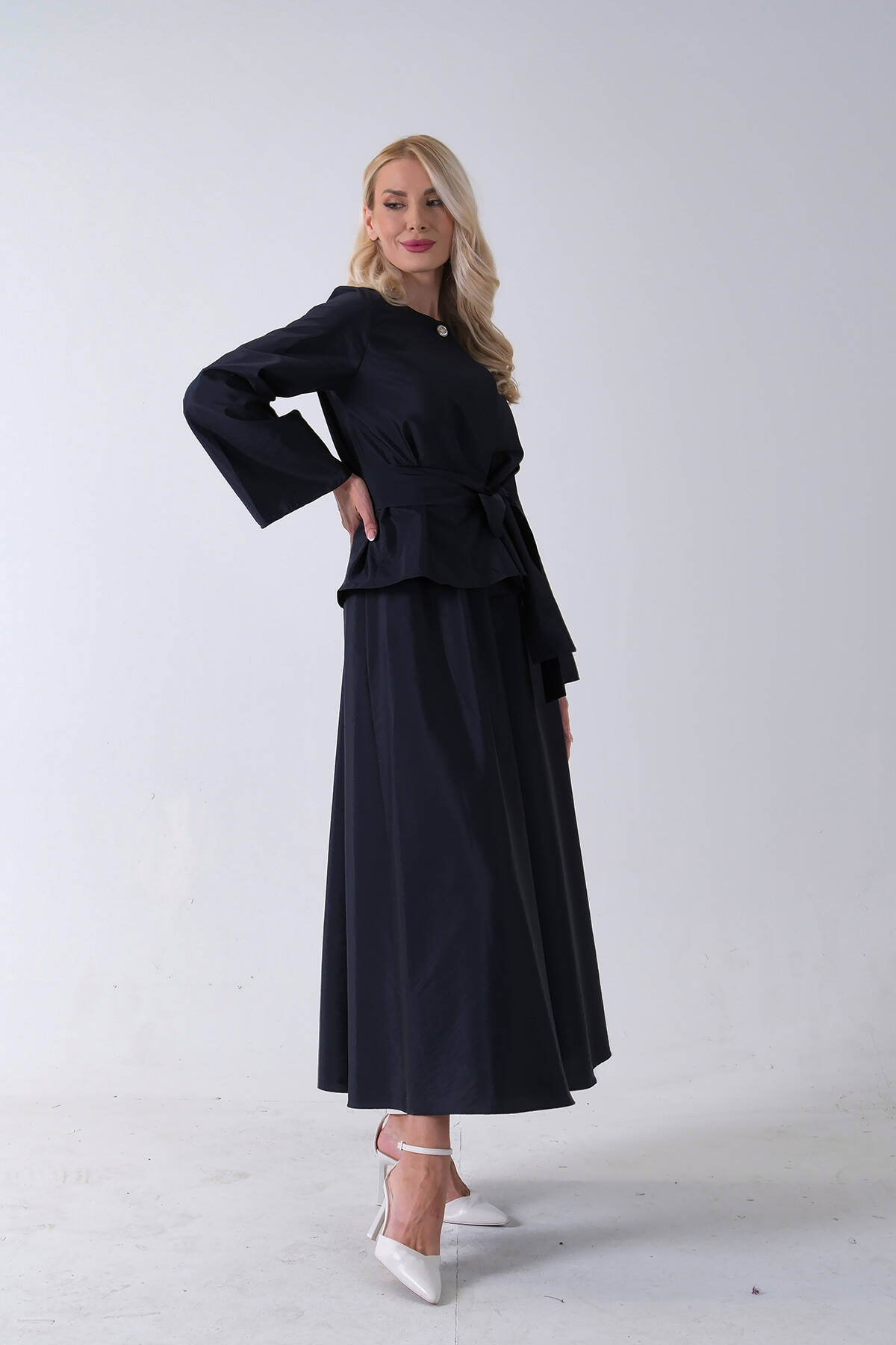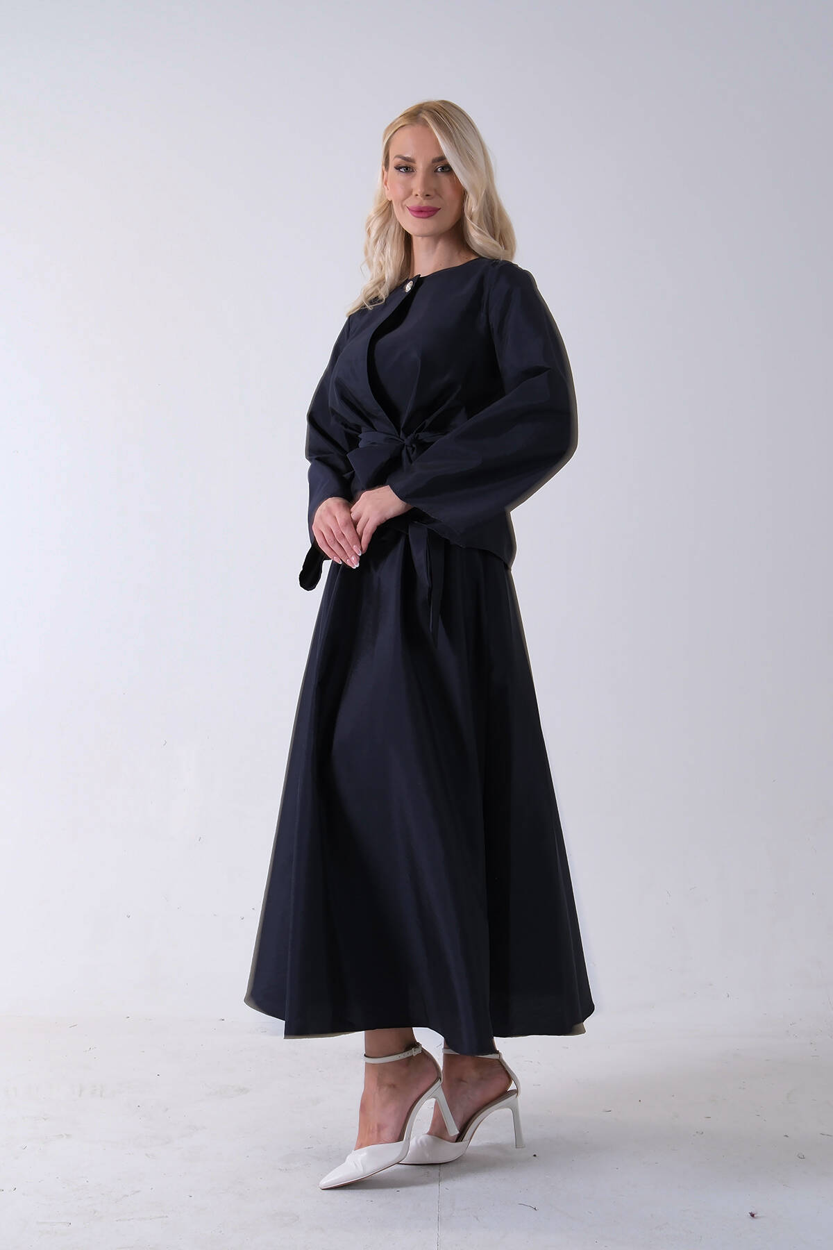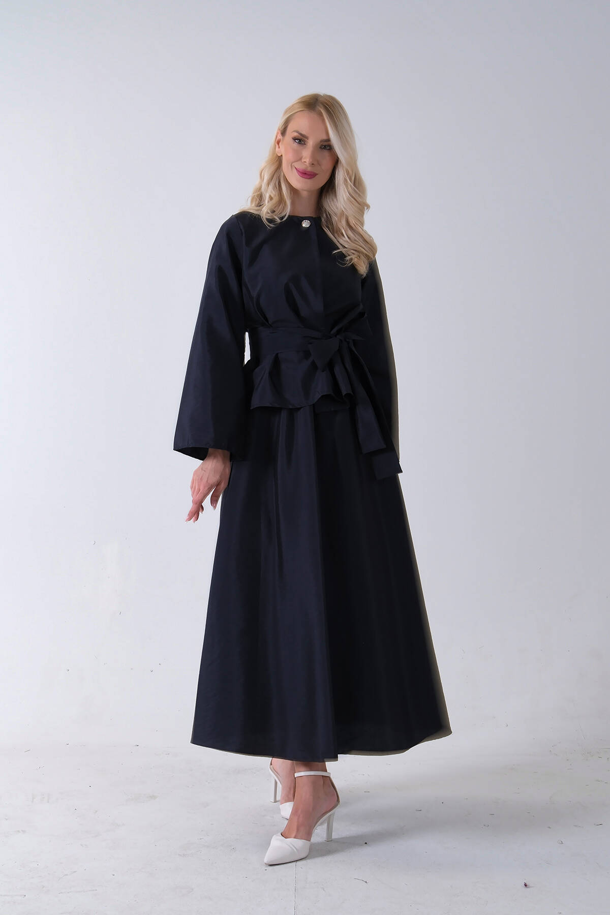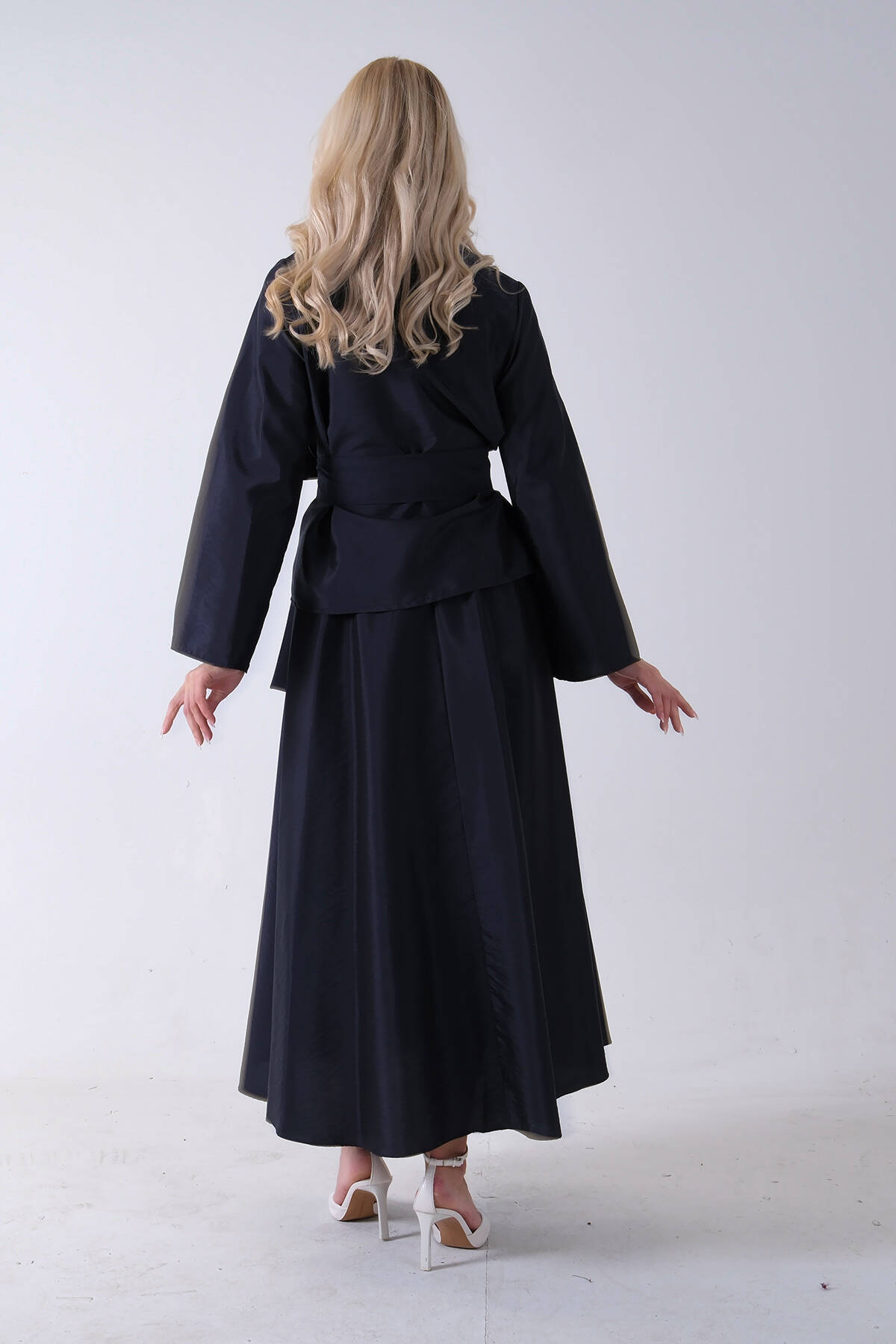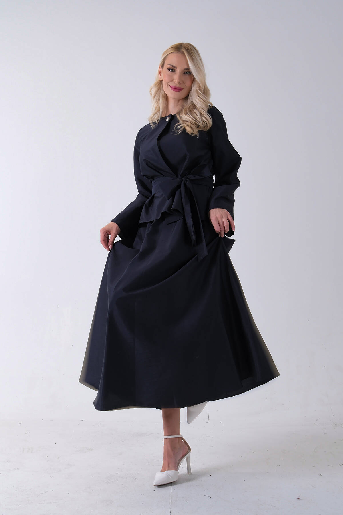 Lacivert Önü Tek Düğmeli Kuşaklı Etek Ceket 31040701.02