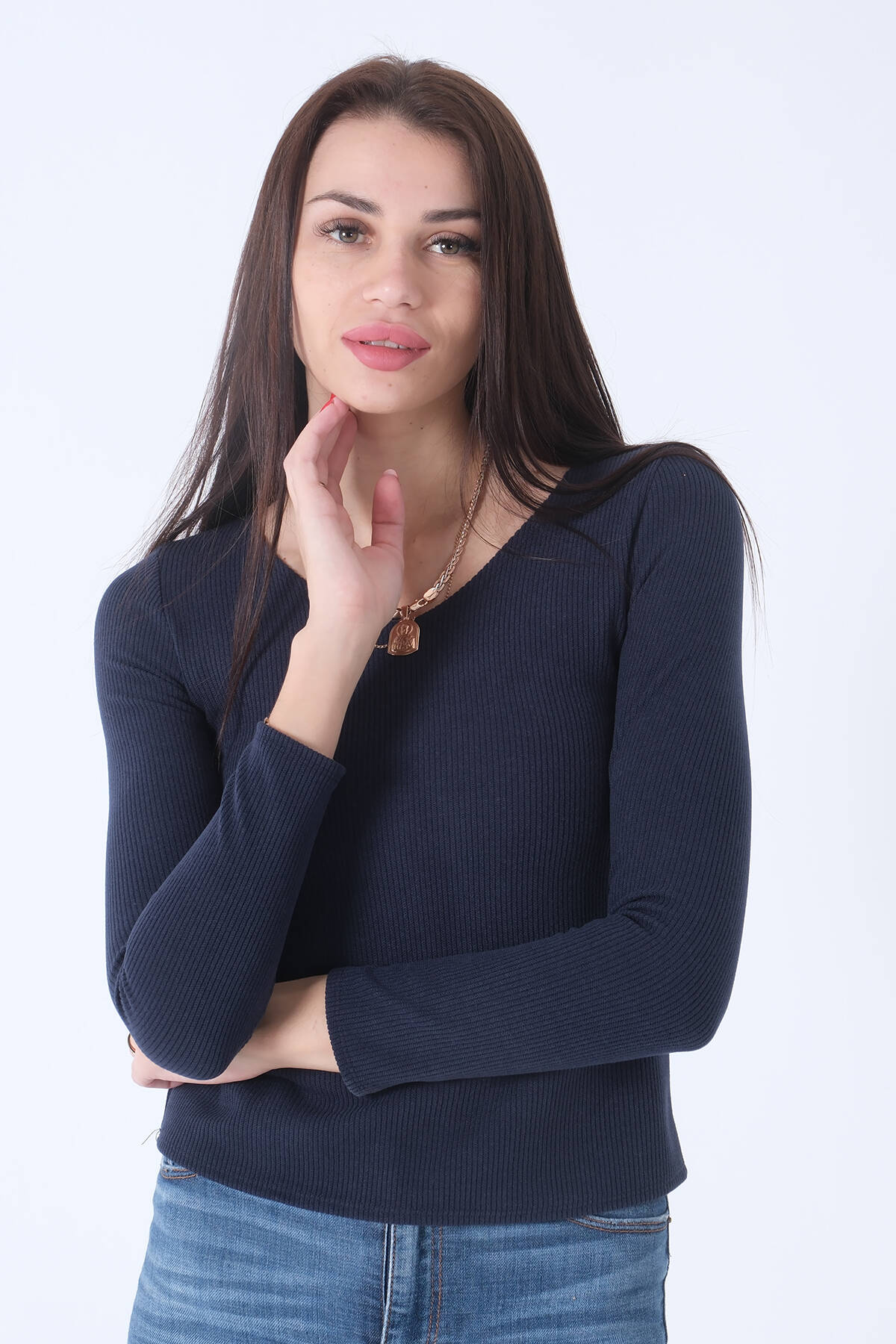 Lacivert Örme V Yaka Kazak 0103012.02