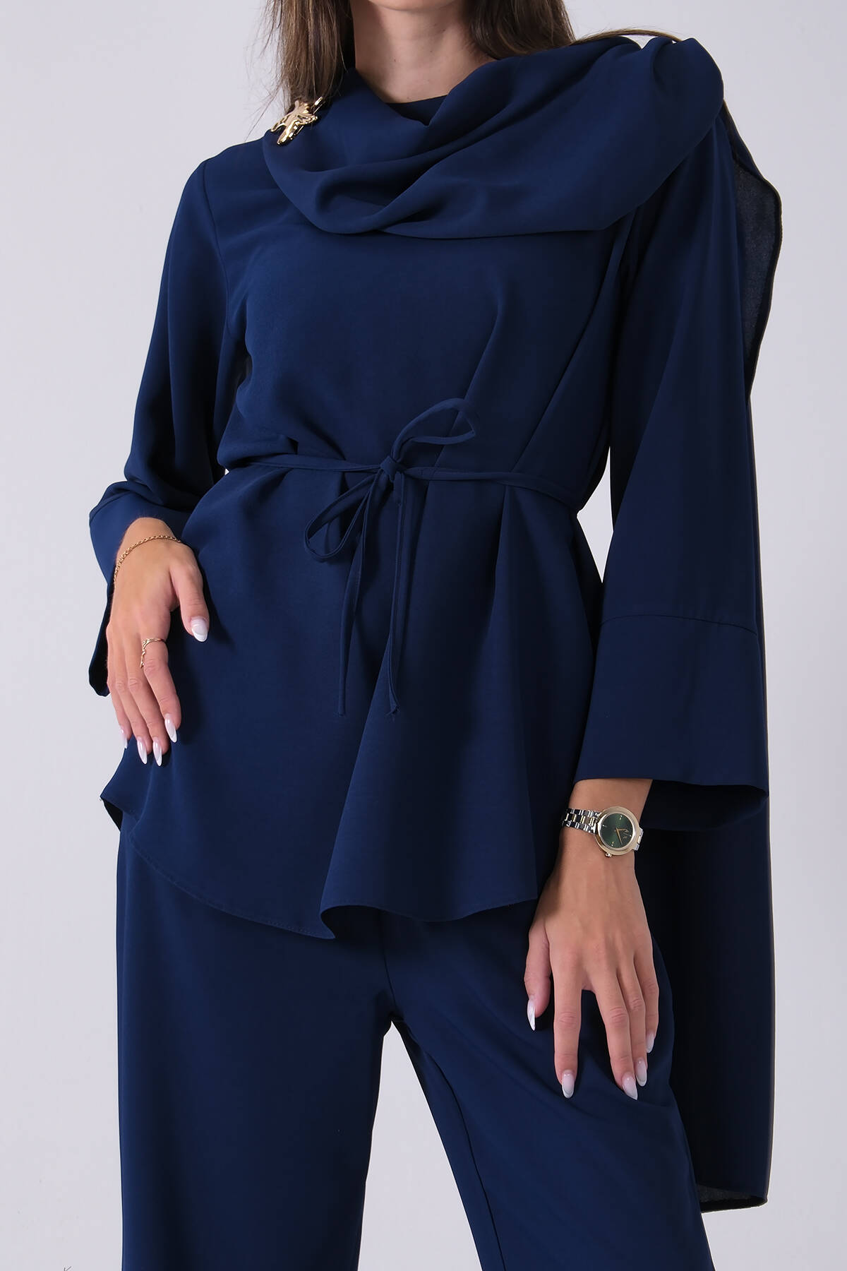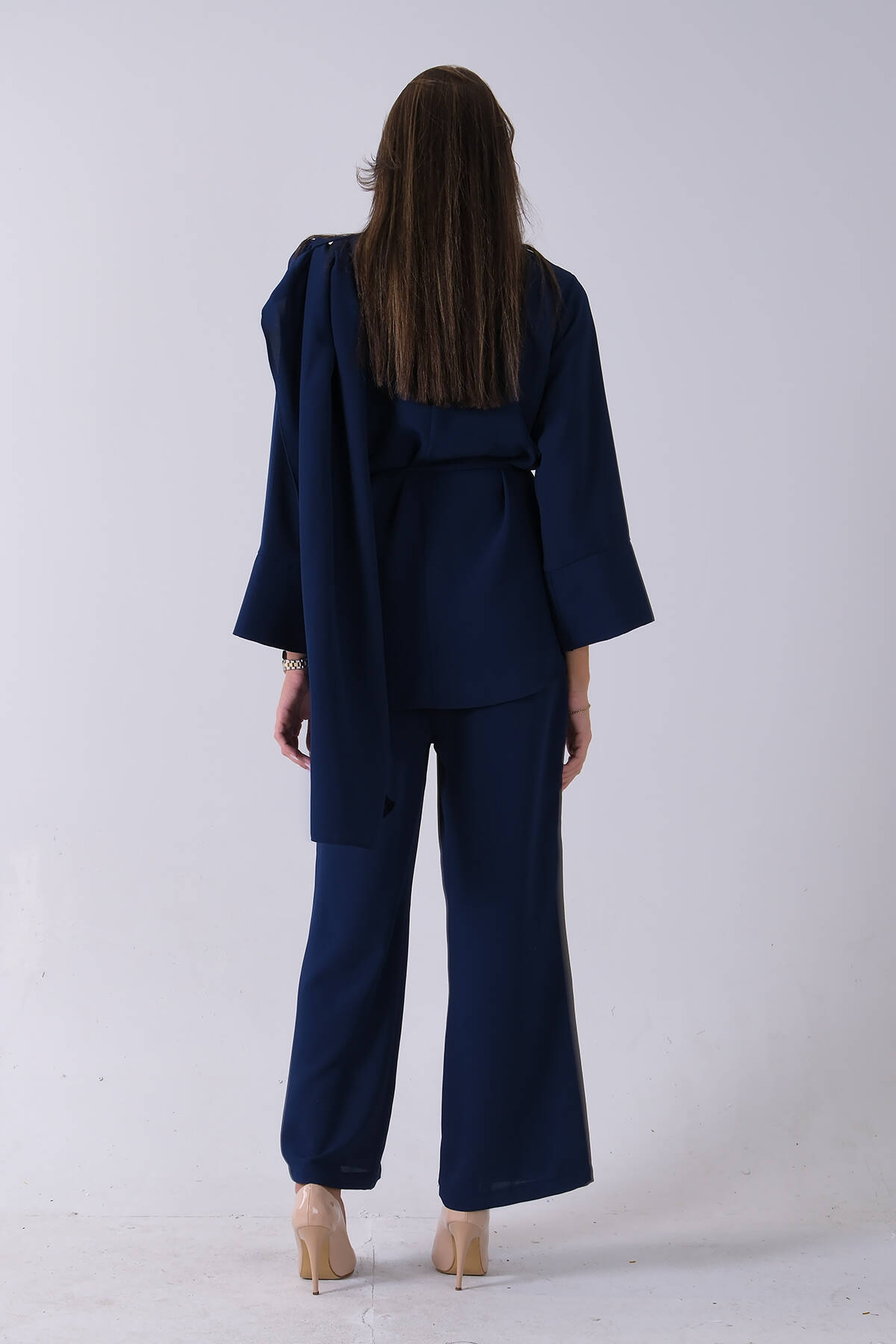 Lacivert Şal Yaka Üzeri Broş Detaylı Pantolonlu Takım 4592270.02