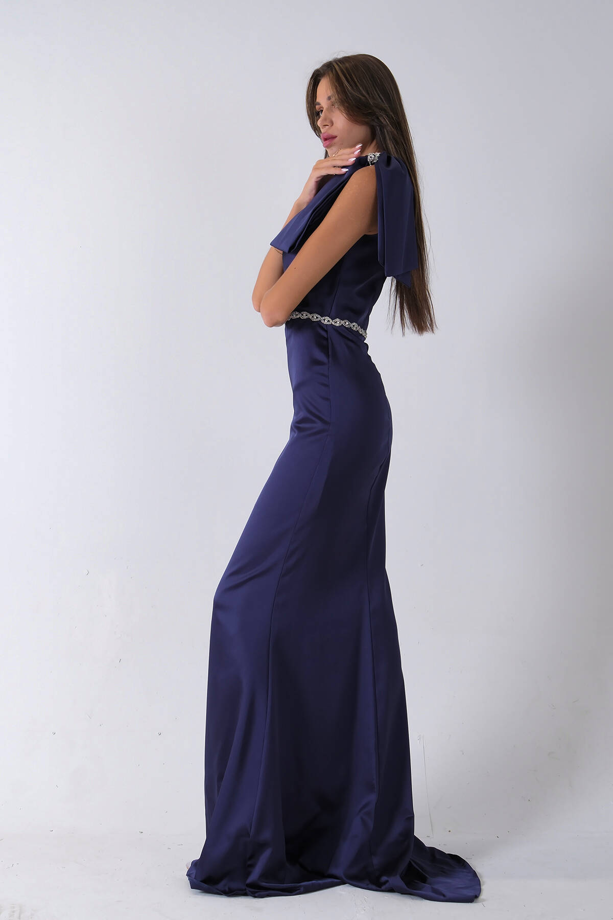 İndigo Taş İşlemeli Uzun Balık Abiye 0801056.98
