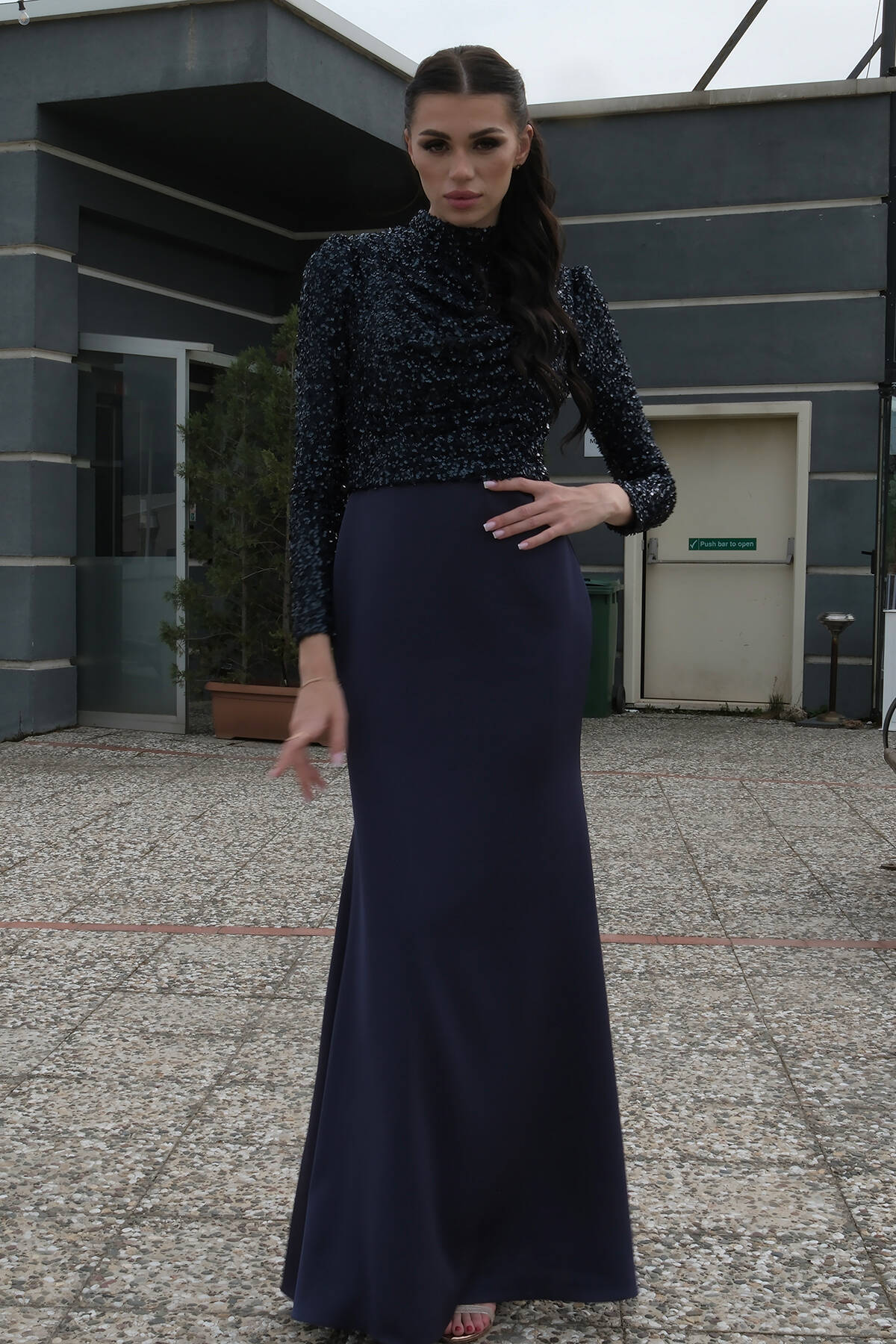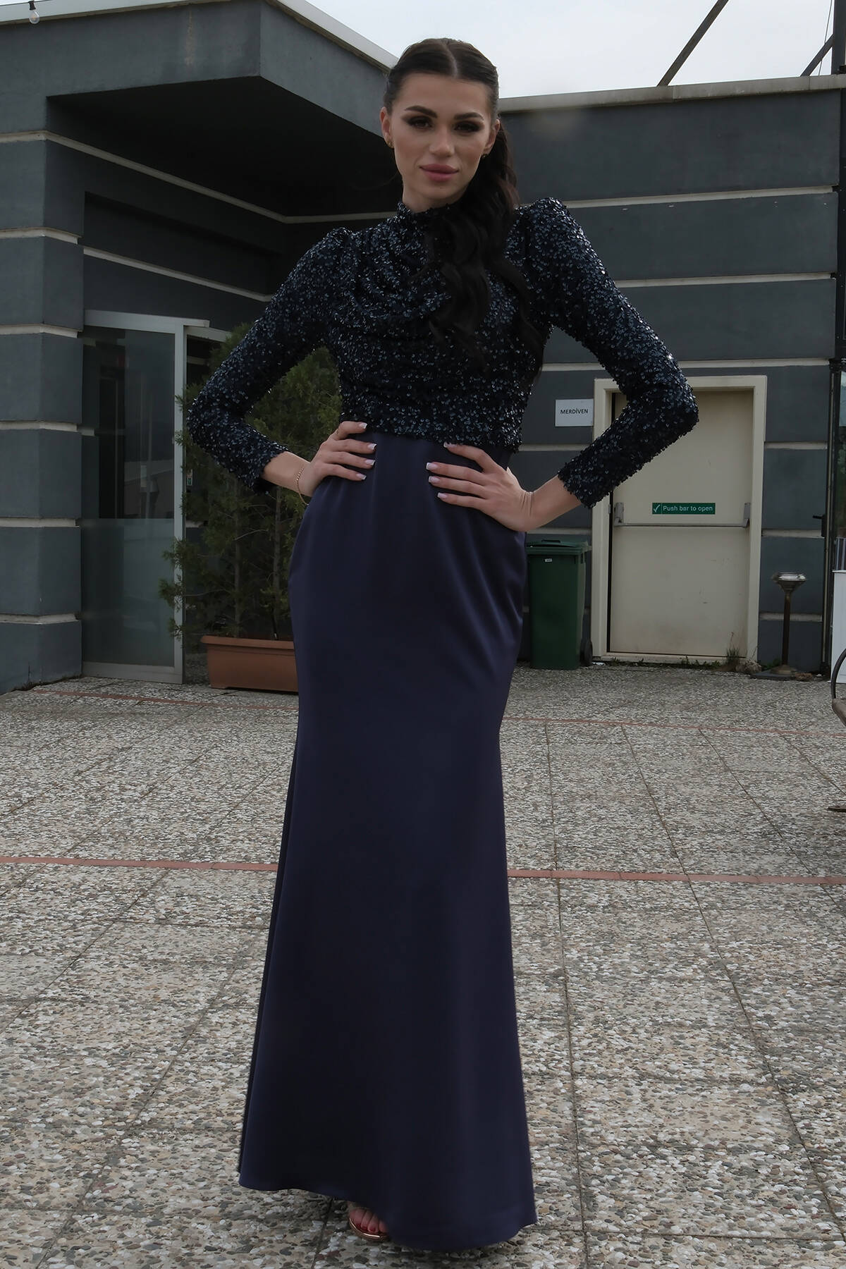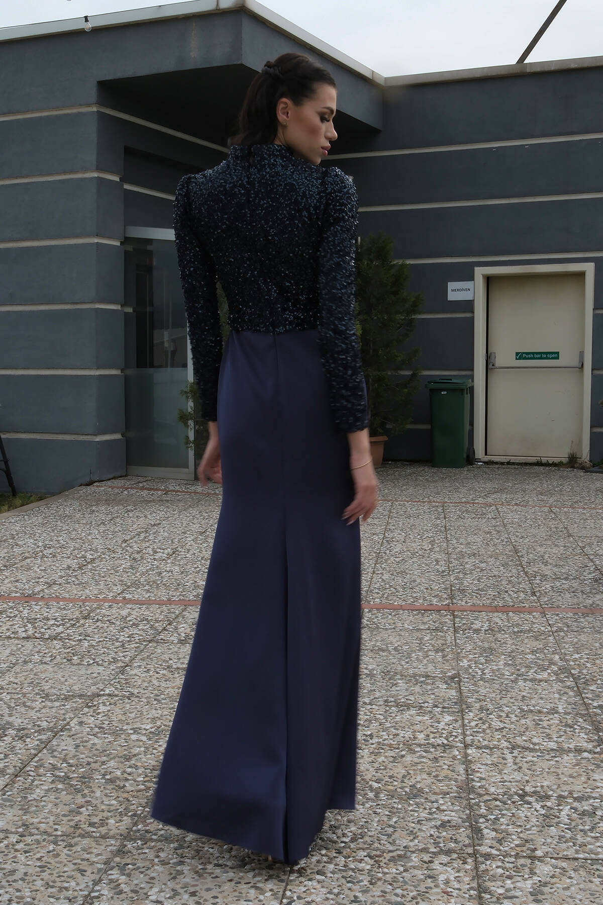 Lacivert Üst Pul Payet Alt Krep Tesettür Abiye 6502497.02