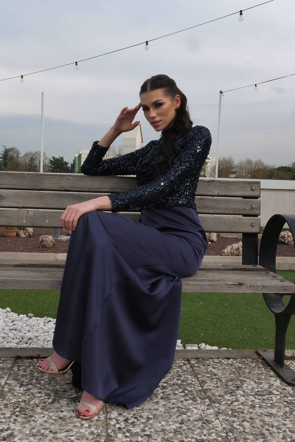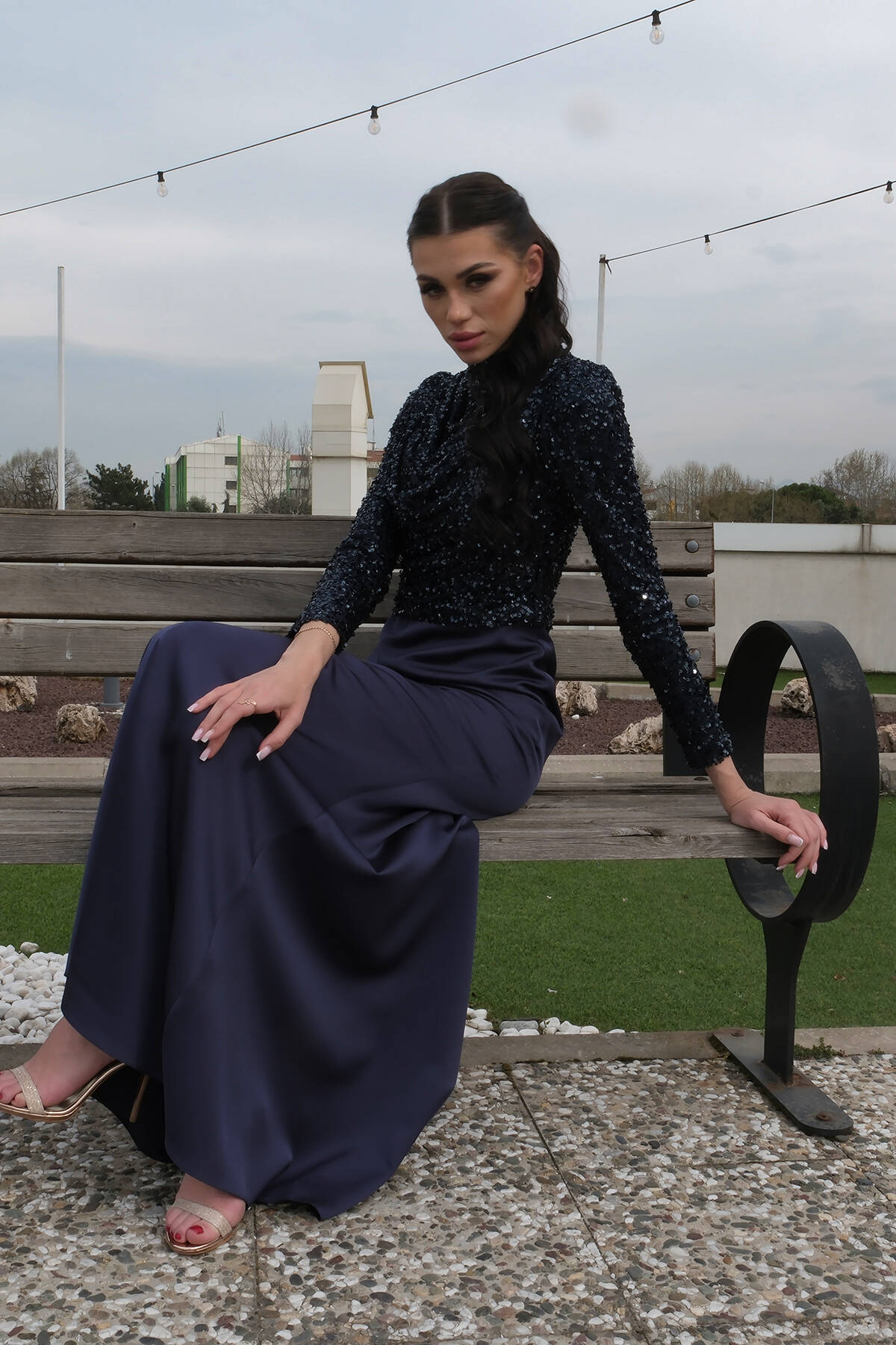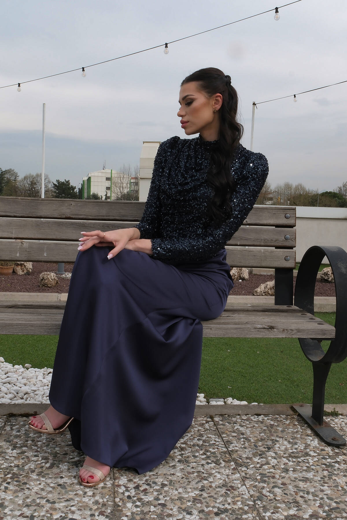 Lacivert Üst Pul Payet Alt Krep Tesettür Abiye 6502497.02