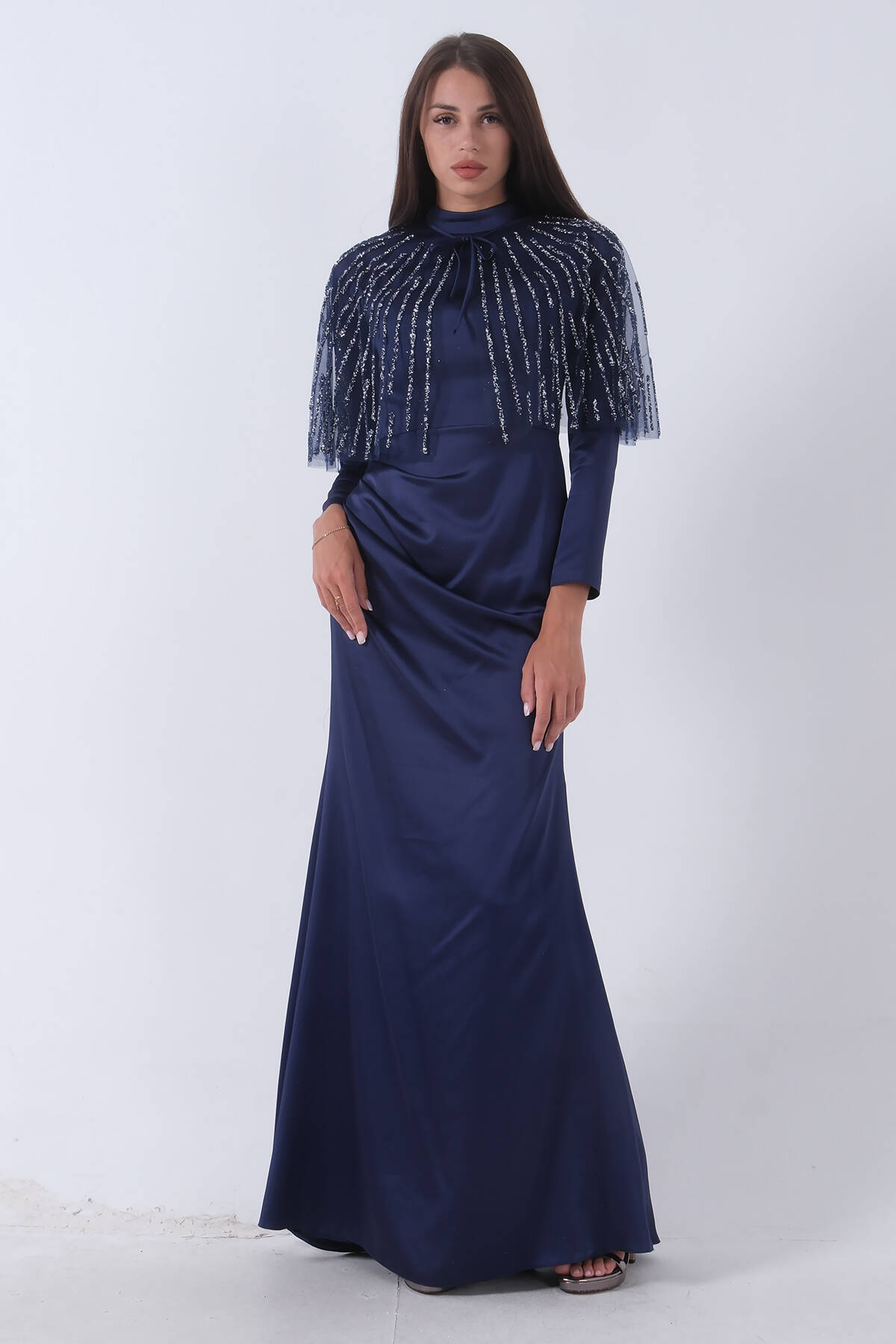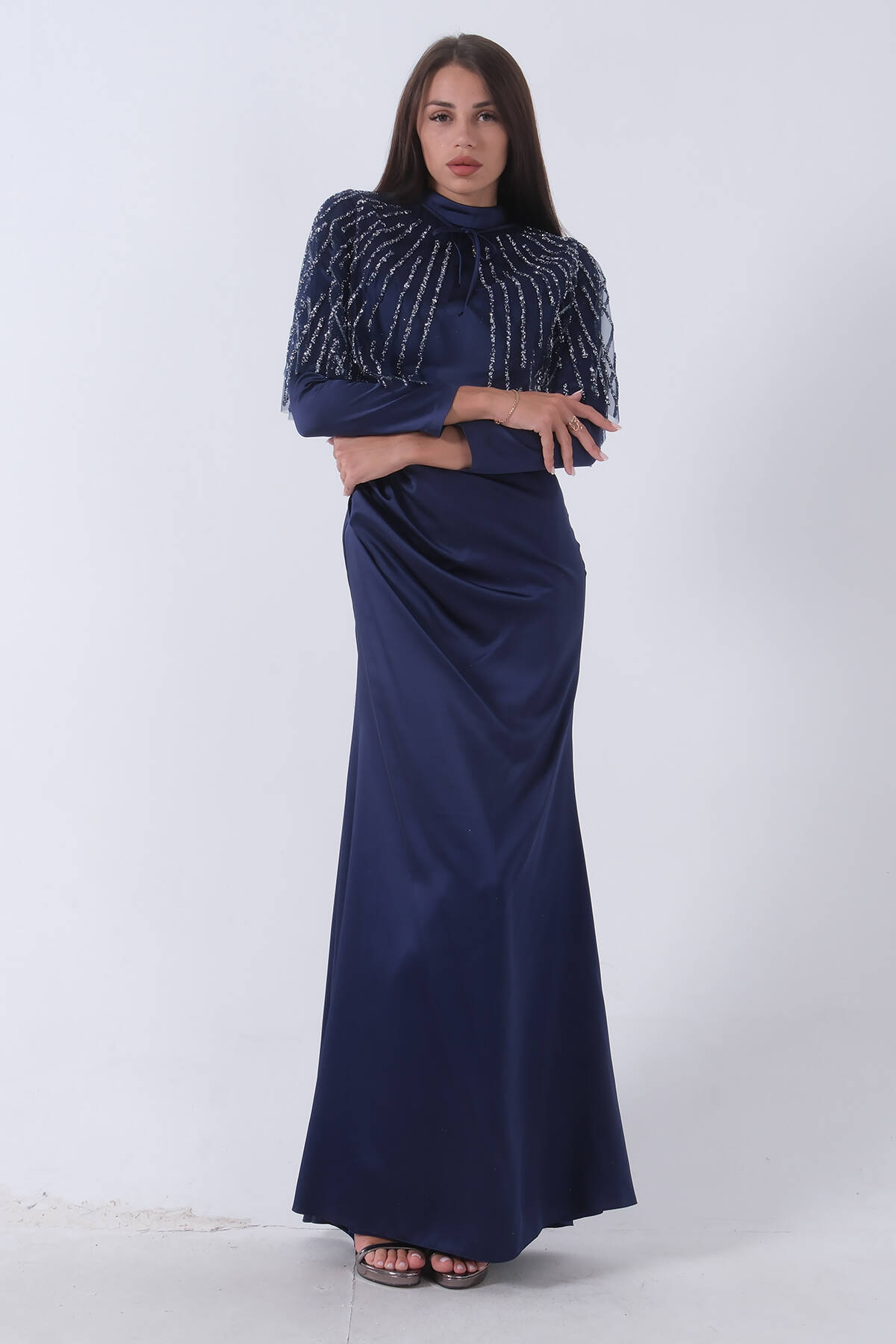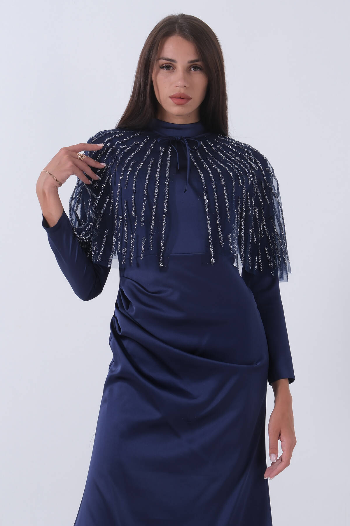 Lacivert Bilek Ucu Saten Kurdele Pullu Tesettür Abiye 6502471.02