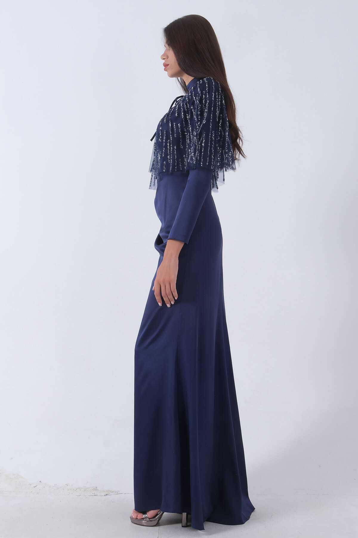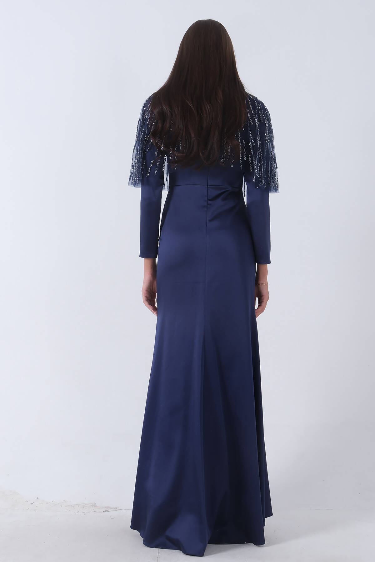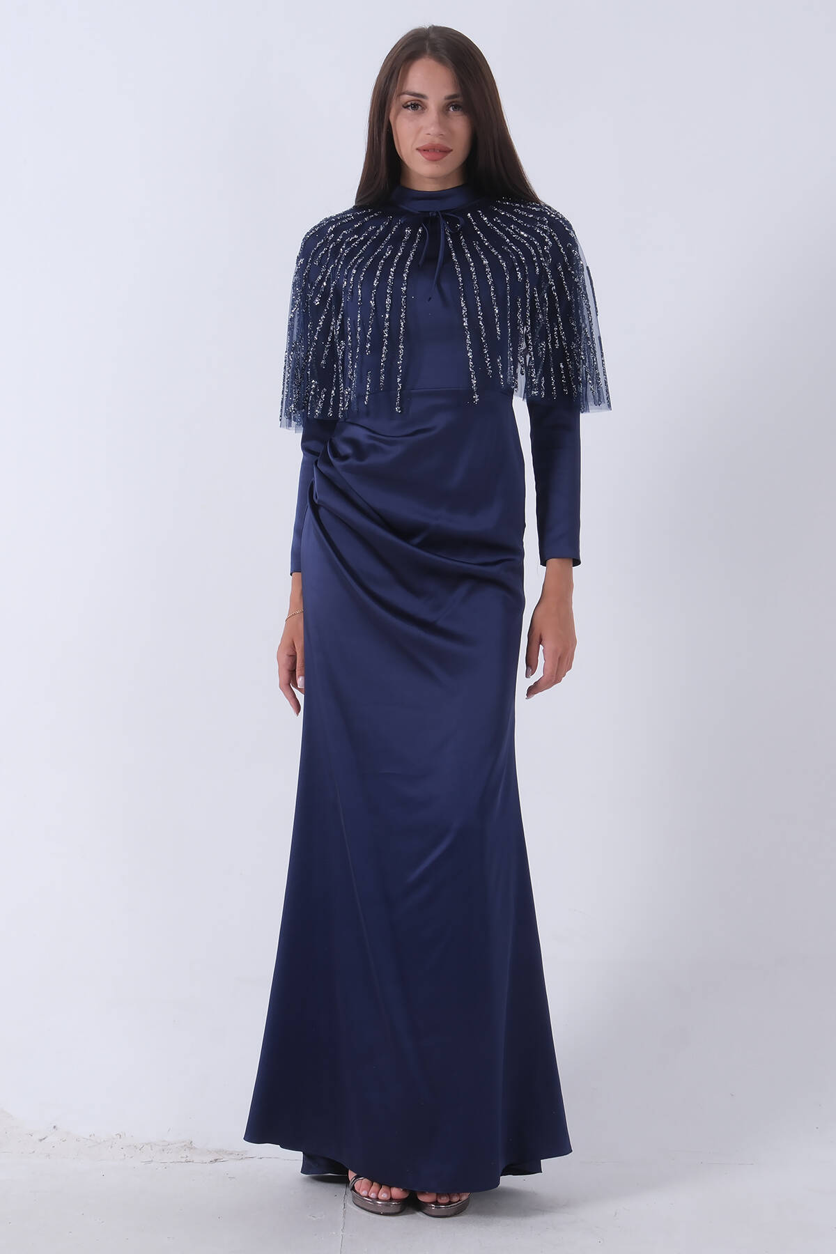 Lacivert Bilek Ucu Saten Kurdele Pullu Tesettür Abiye 6502471.02