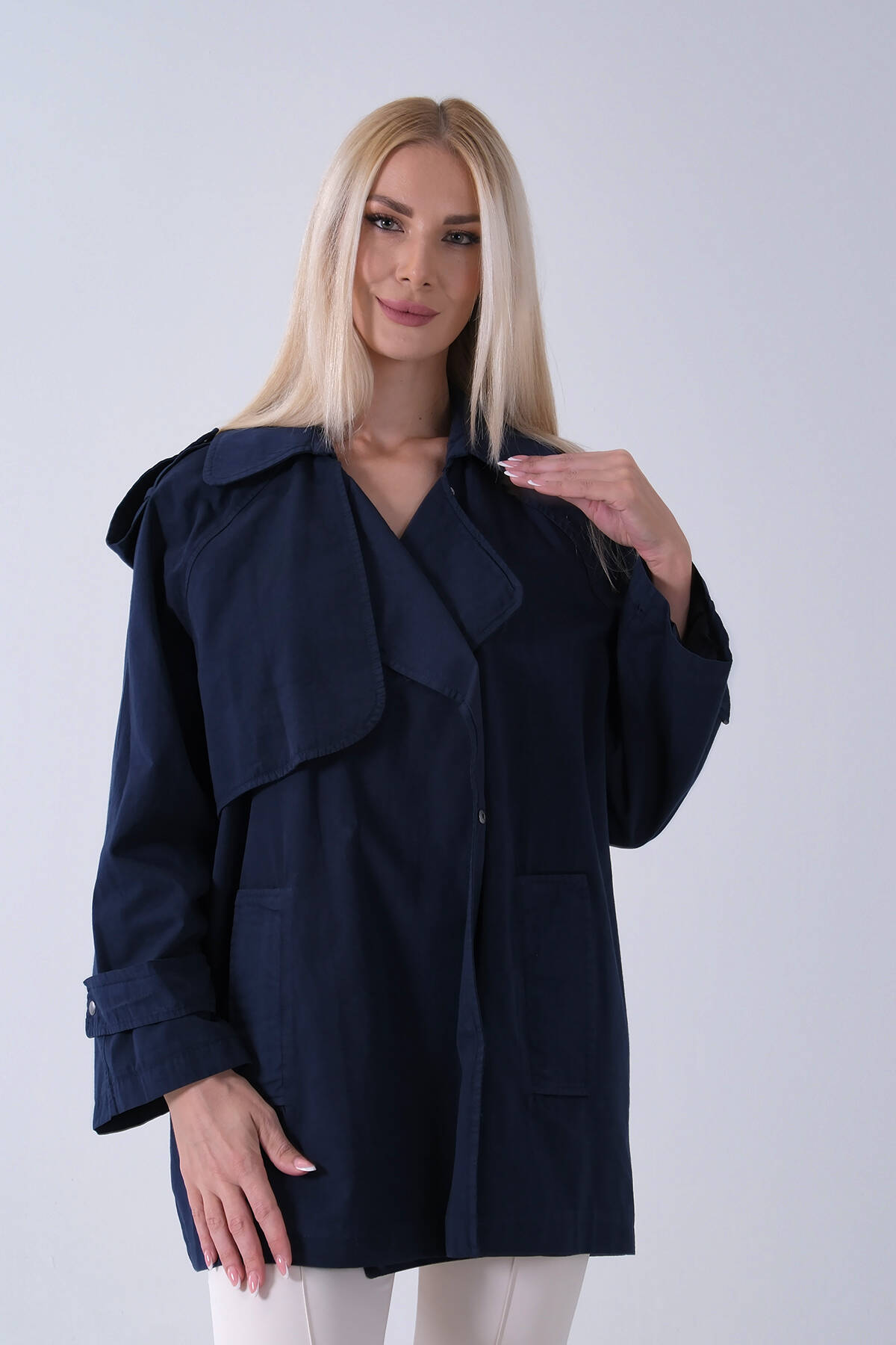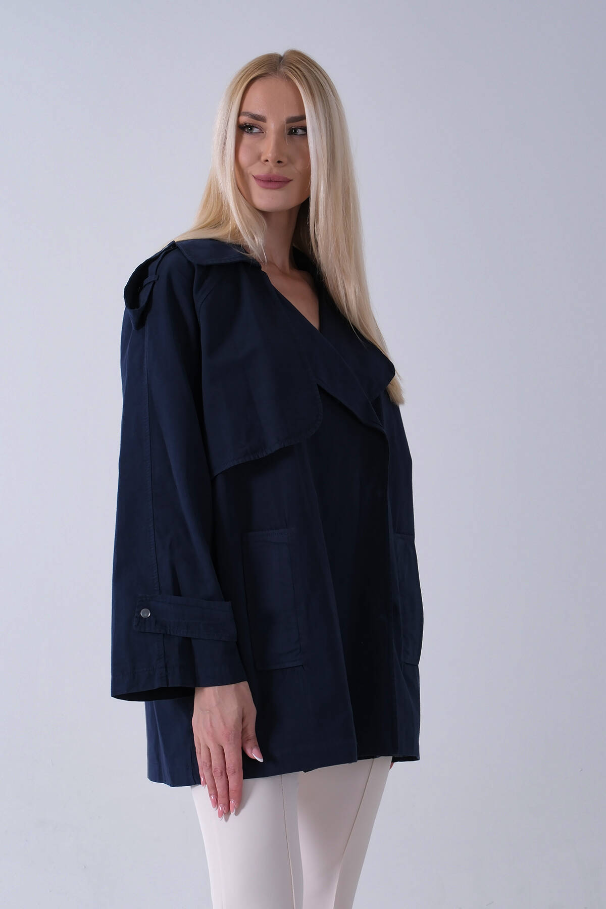 Lacivert Yandan Cepli Omuz Apolet Detaylı Trenç 422234.02