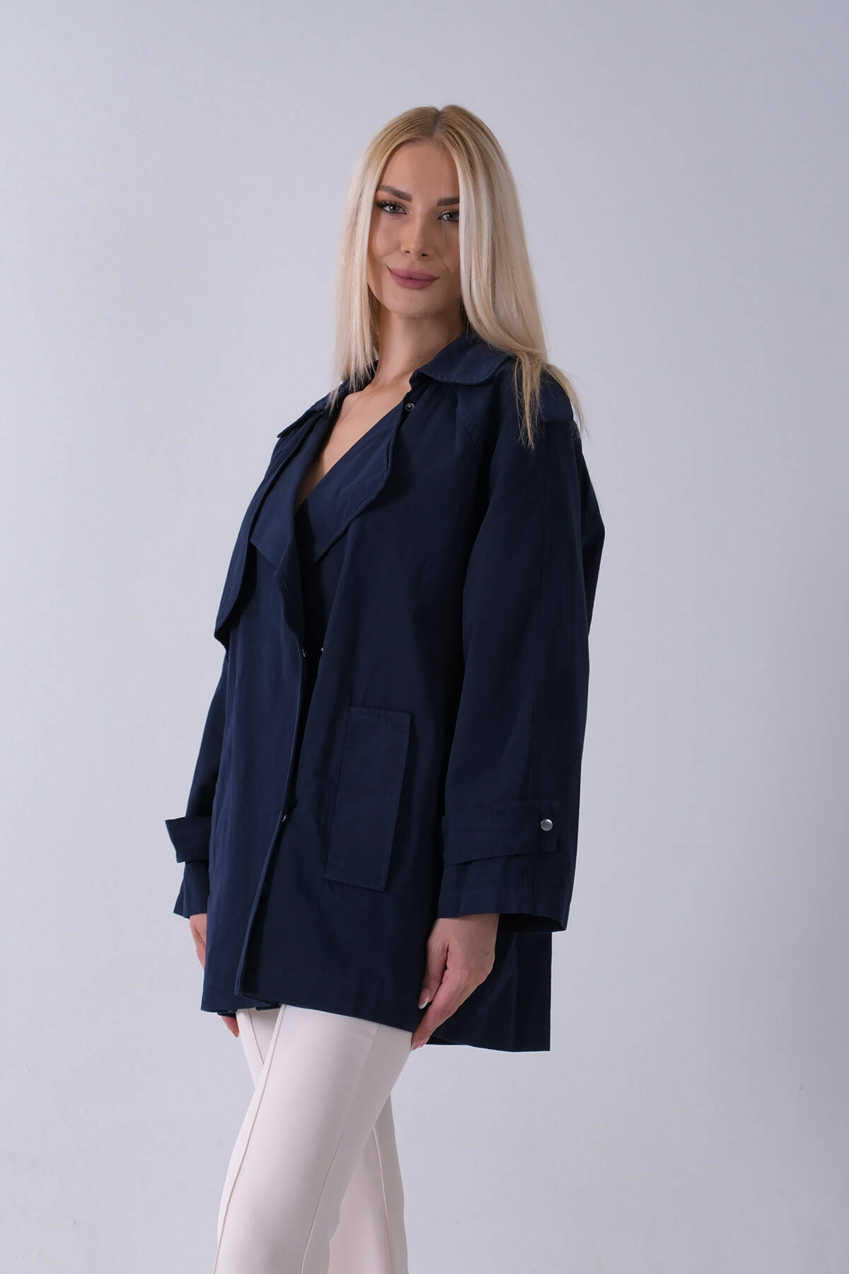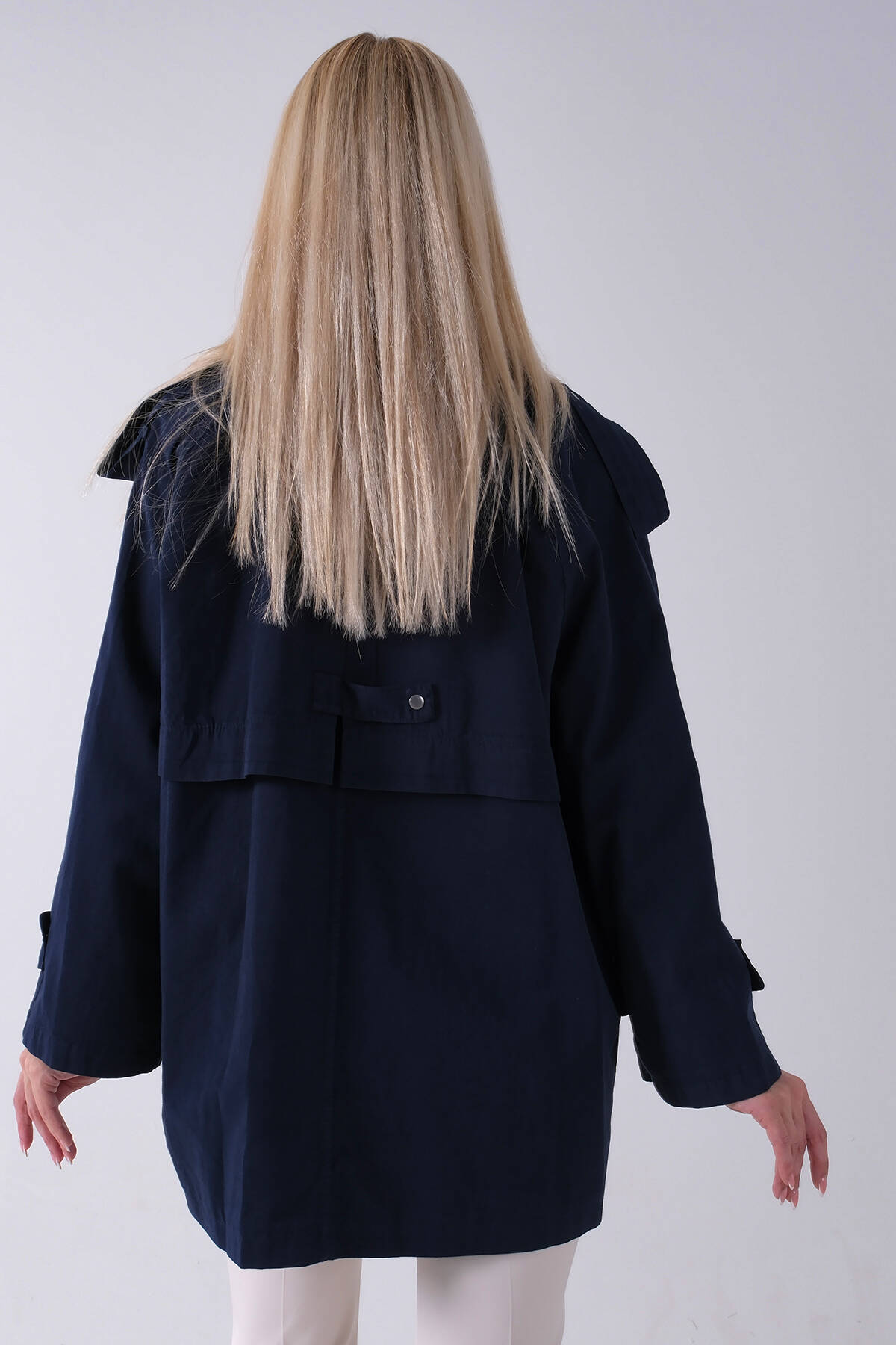 Lacivert Düğme Kapamalı Kuşaklı Yandan Cepli Trenç 422235.02