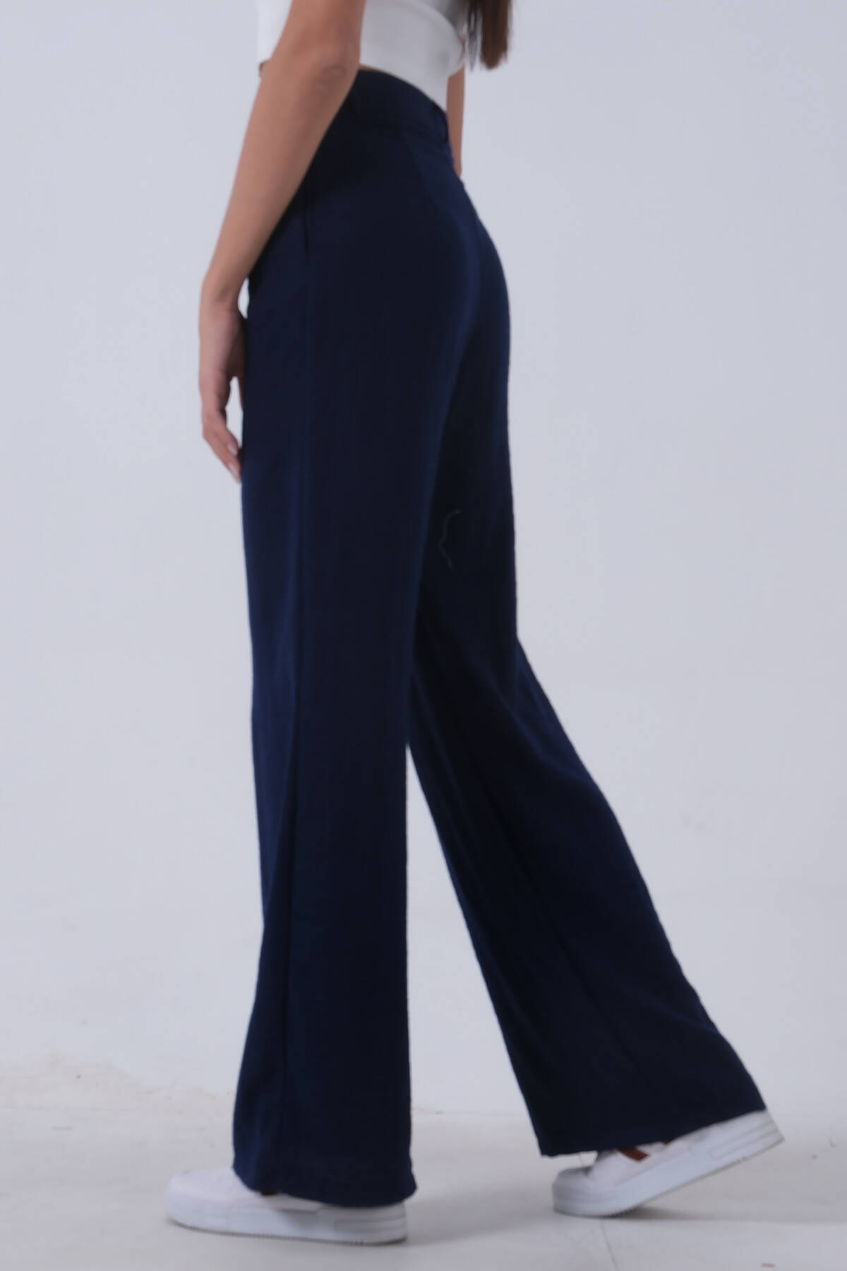 Lacivert İnce Kemerli Cepsiz Bol Paça Uzun Pantolon 03030306.02