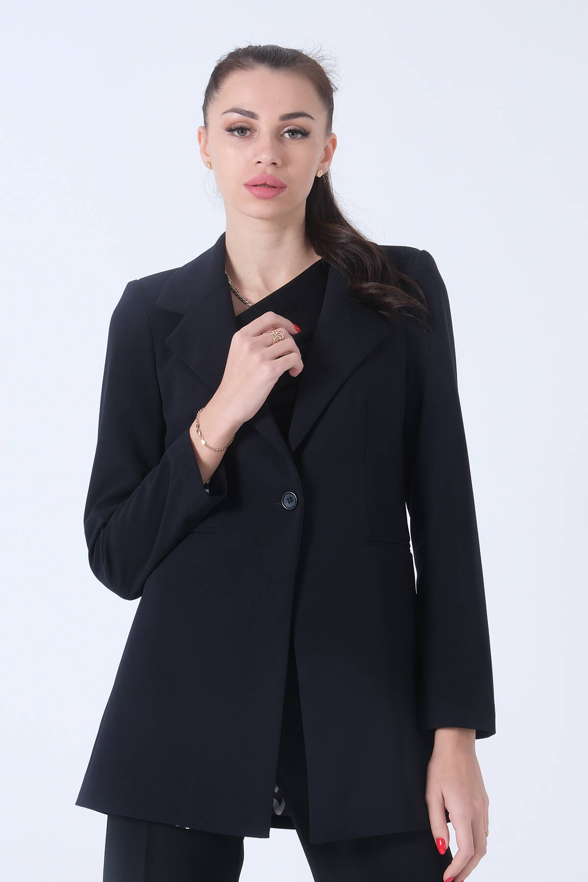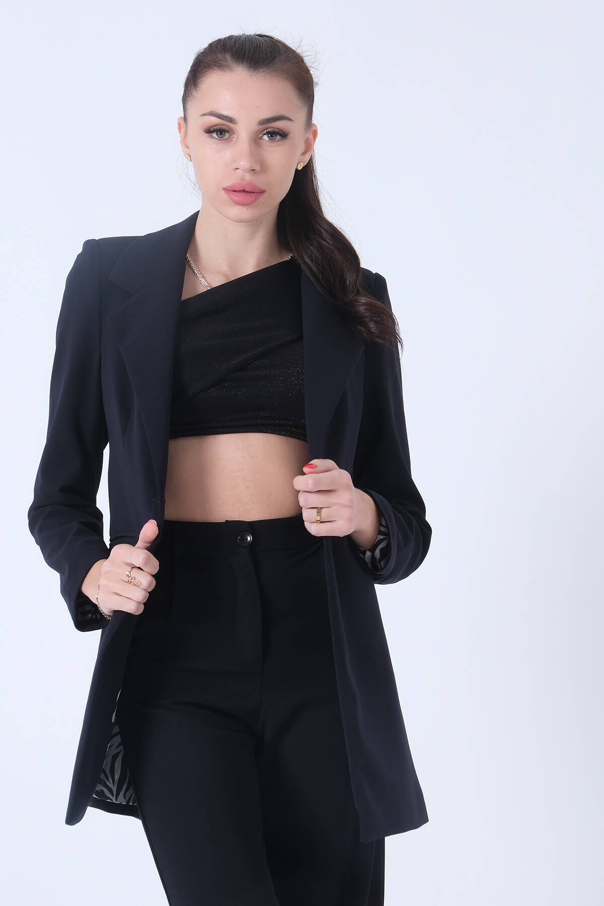 Modelin Ölçüleri : Boy: 1.80 cm / Göğüs: 88 cm / Bel: 69 cm /Basen : 94 cm Mankenin Üzerindeki Ürün 36/S Bedendir %100 Polyester Uzun Kol Klasik Yaka Zebra Astar Detaylı Tek Düğmeli Vatkalı Çift Cepli Krep Kumaş Blazer Ceket Ürün Boyu : 80 cm Stüdyo Çekimlerinde Renkler Işık Farklılıgından Dolayı Değişiklik Gösterebilir
