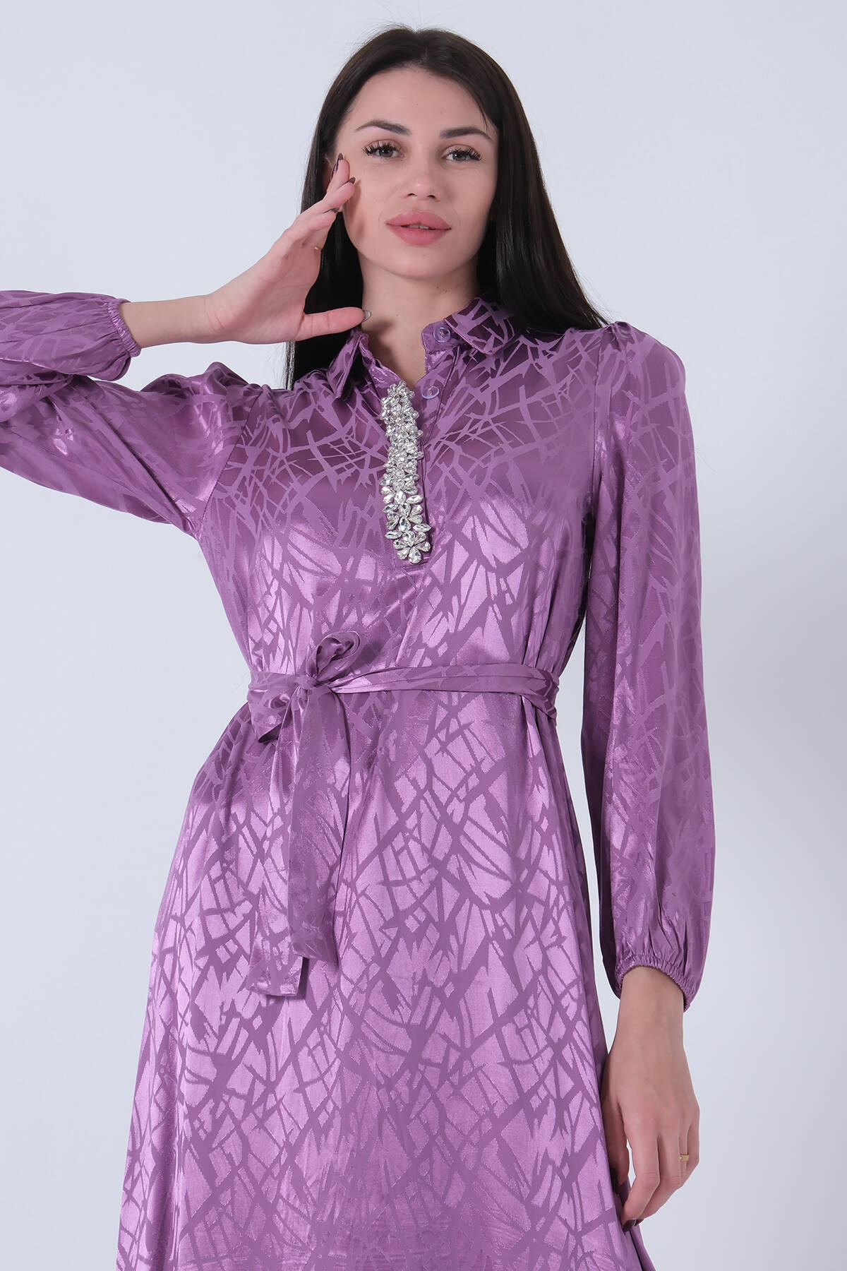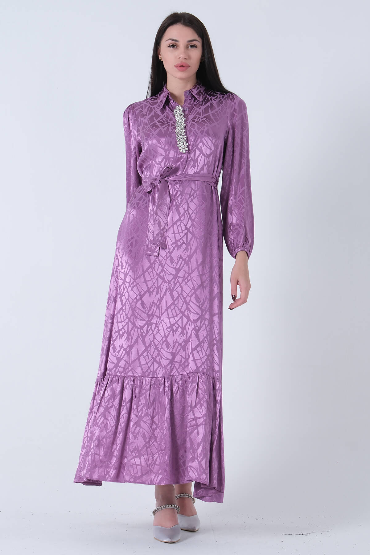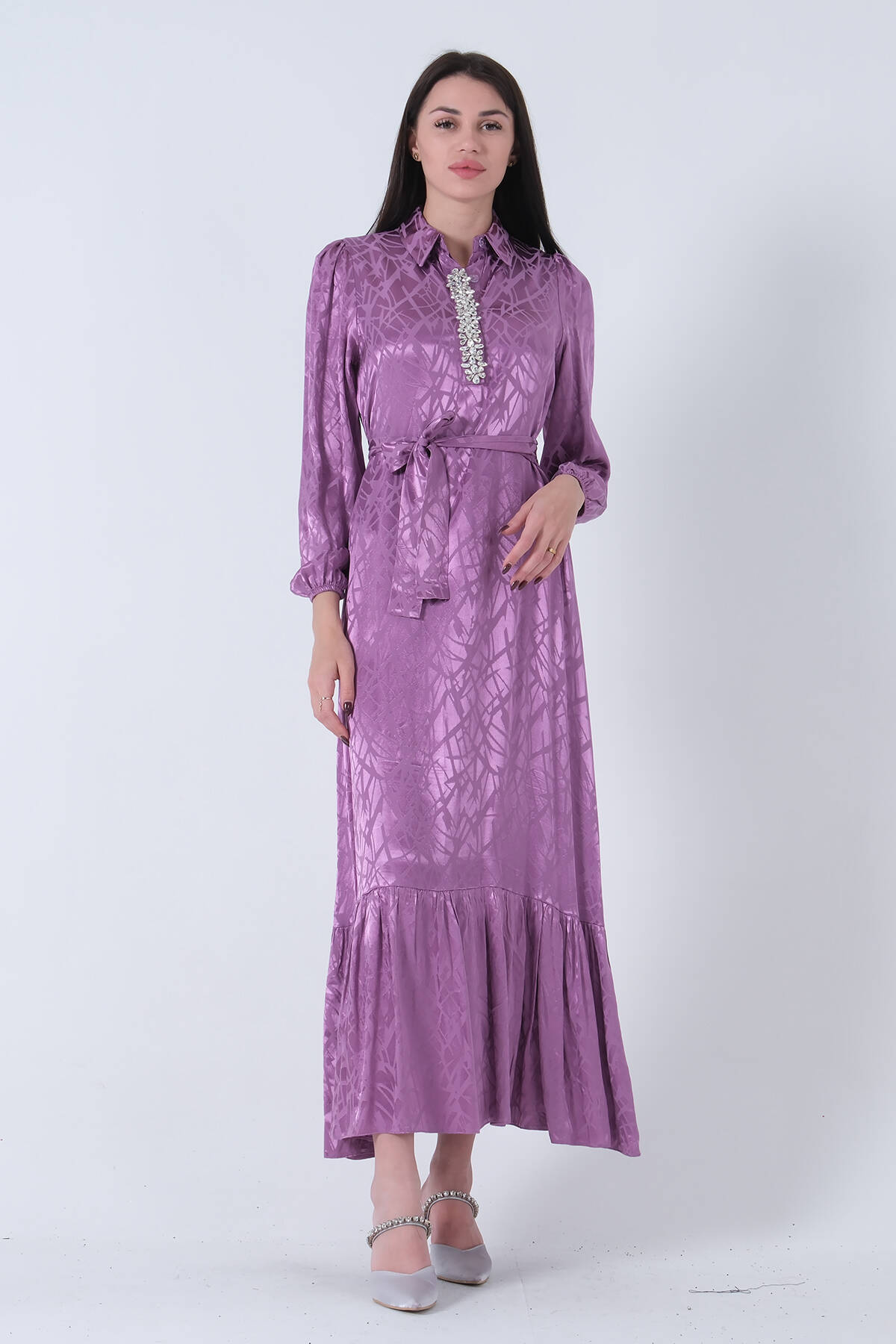 Lavanta Hakim Yaka Kemer Detaylı Elbise 4593265.333