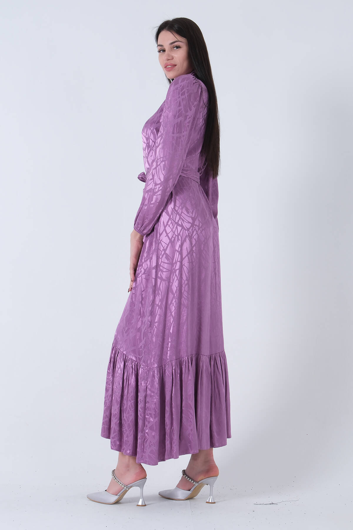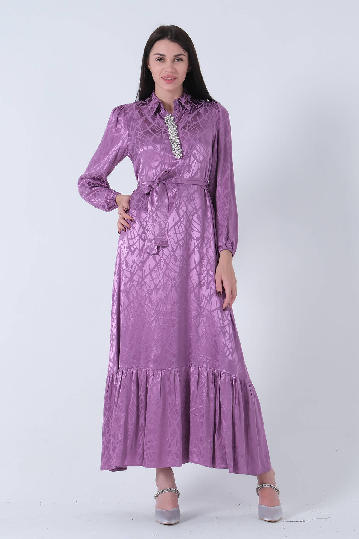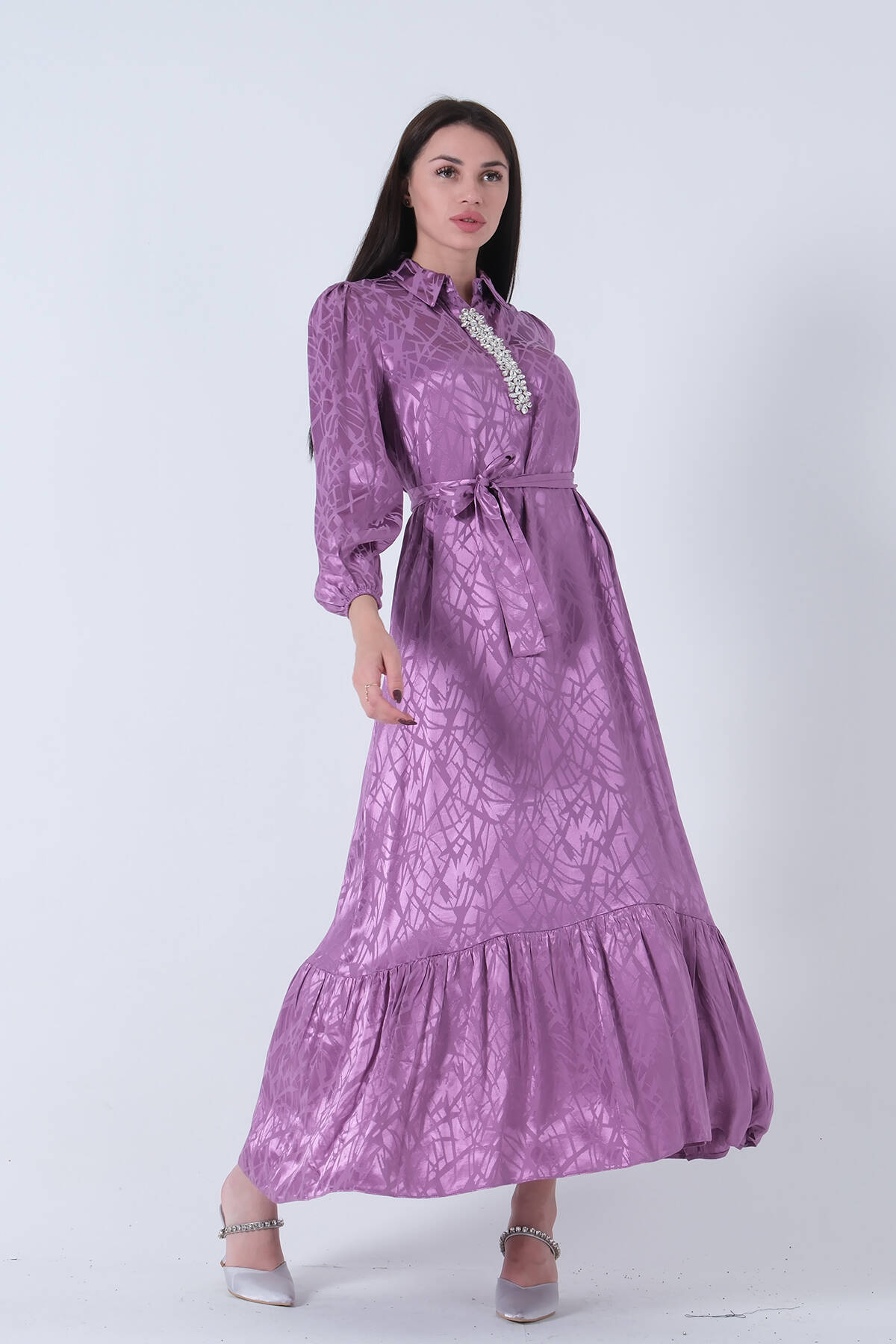Lavanta Hakim Yaka Kemer Detaylı Elbise 4593265.333