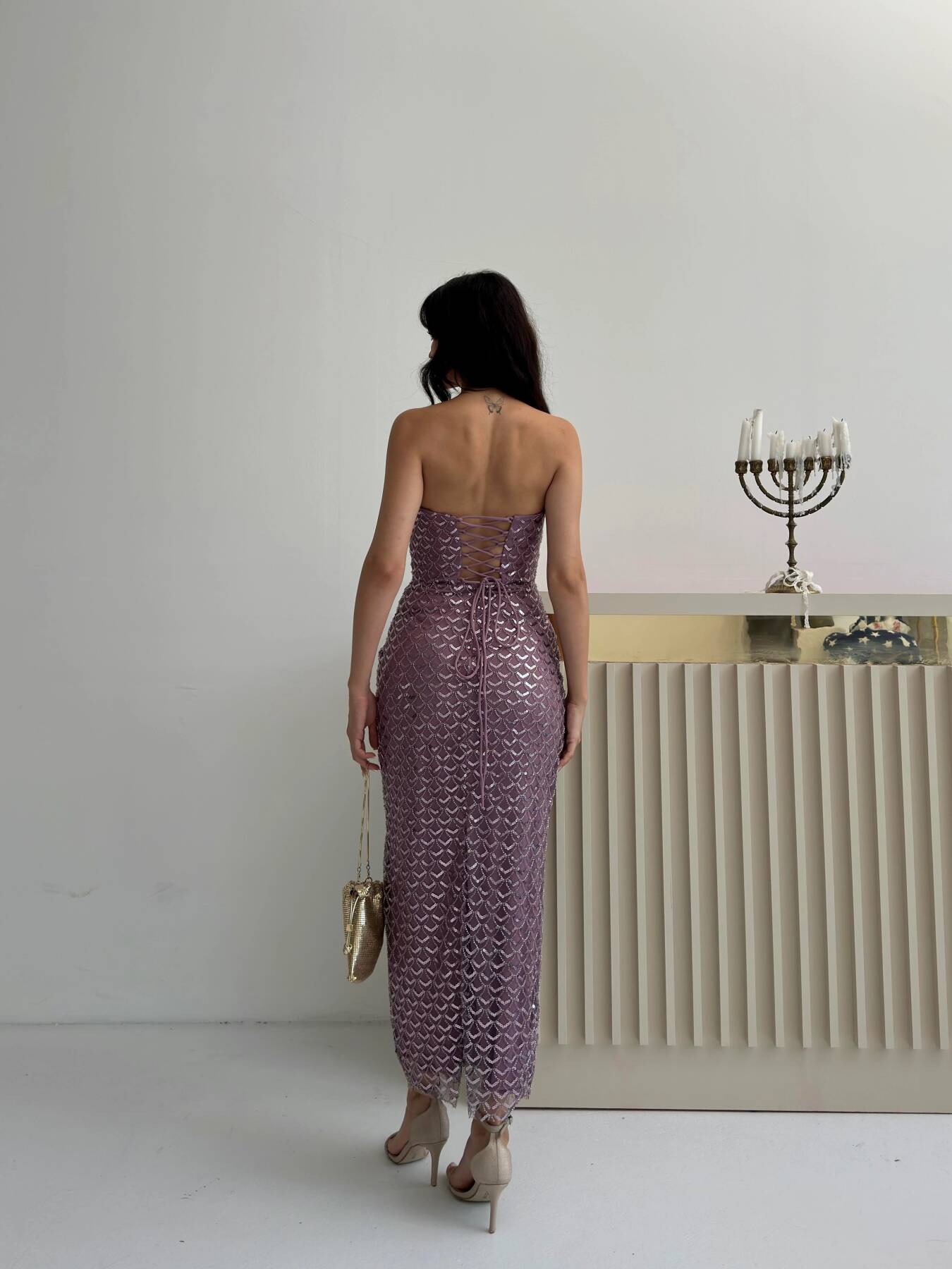 Lavanta Midi Boy Straplez Pul Payet Abiye 0801134.333