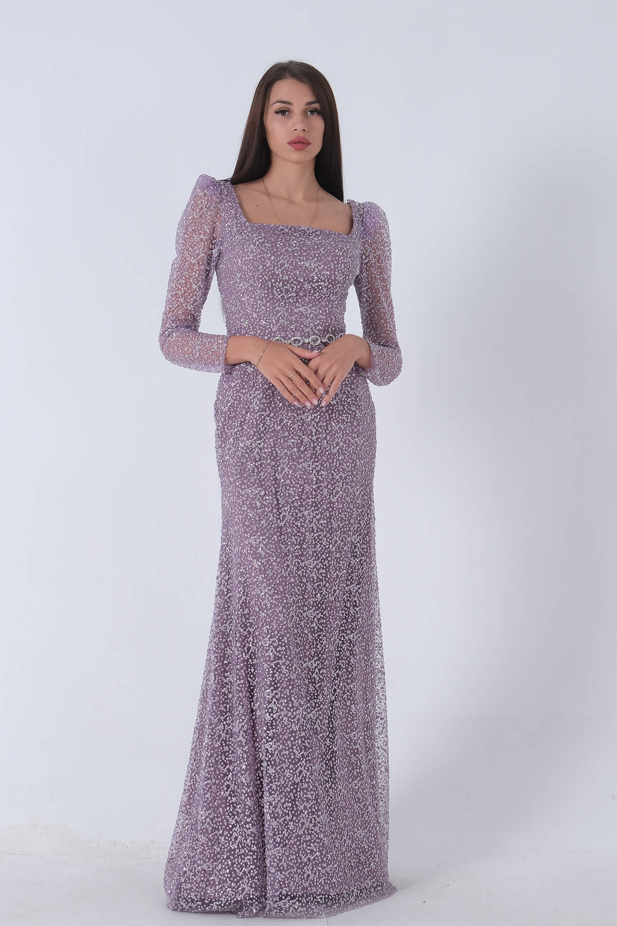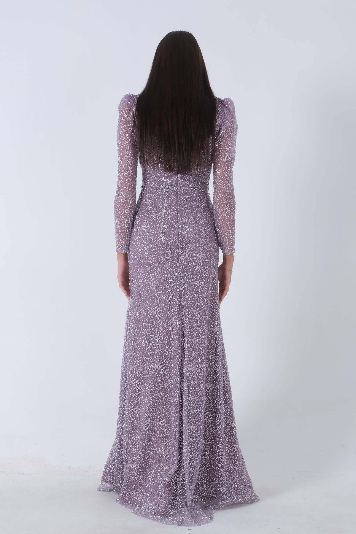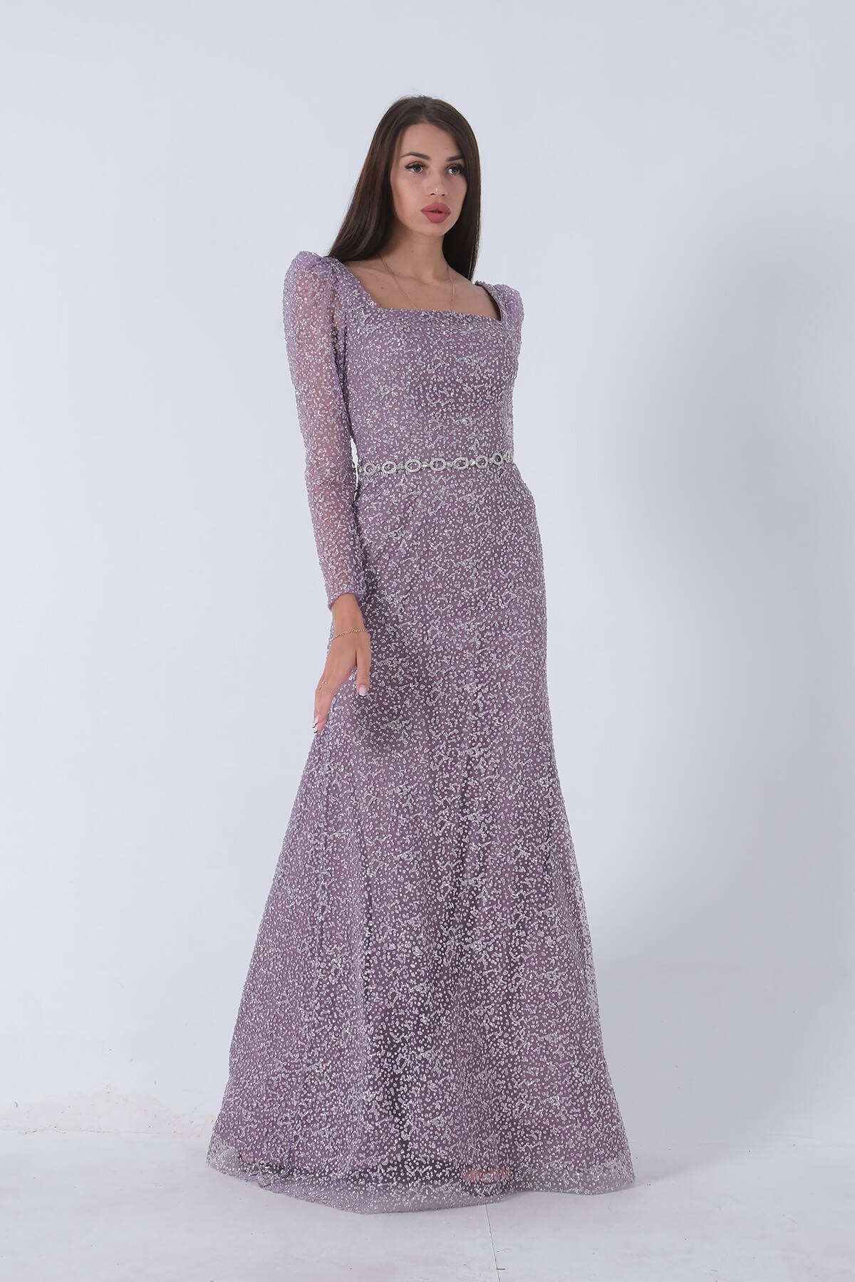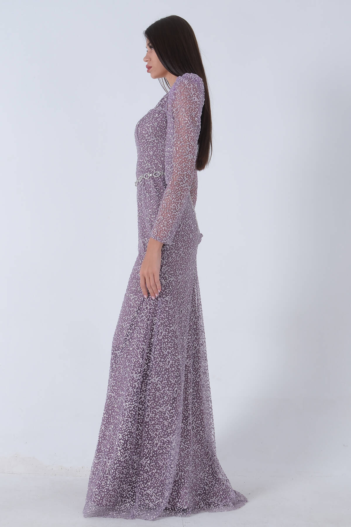 Lavanta Taş İşlemeli Balık Abiye Elbise 9705141.333