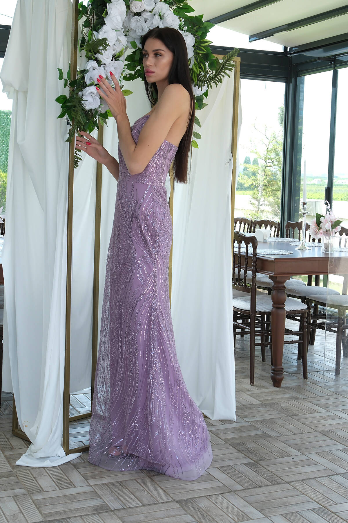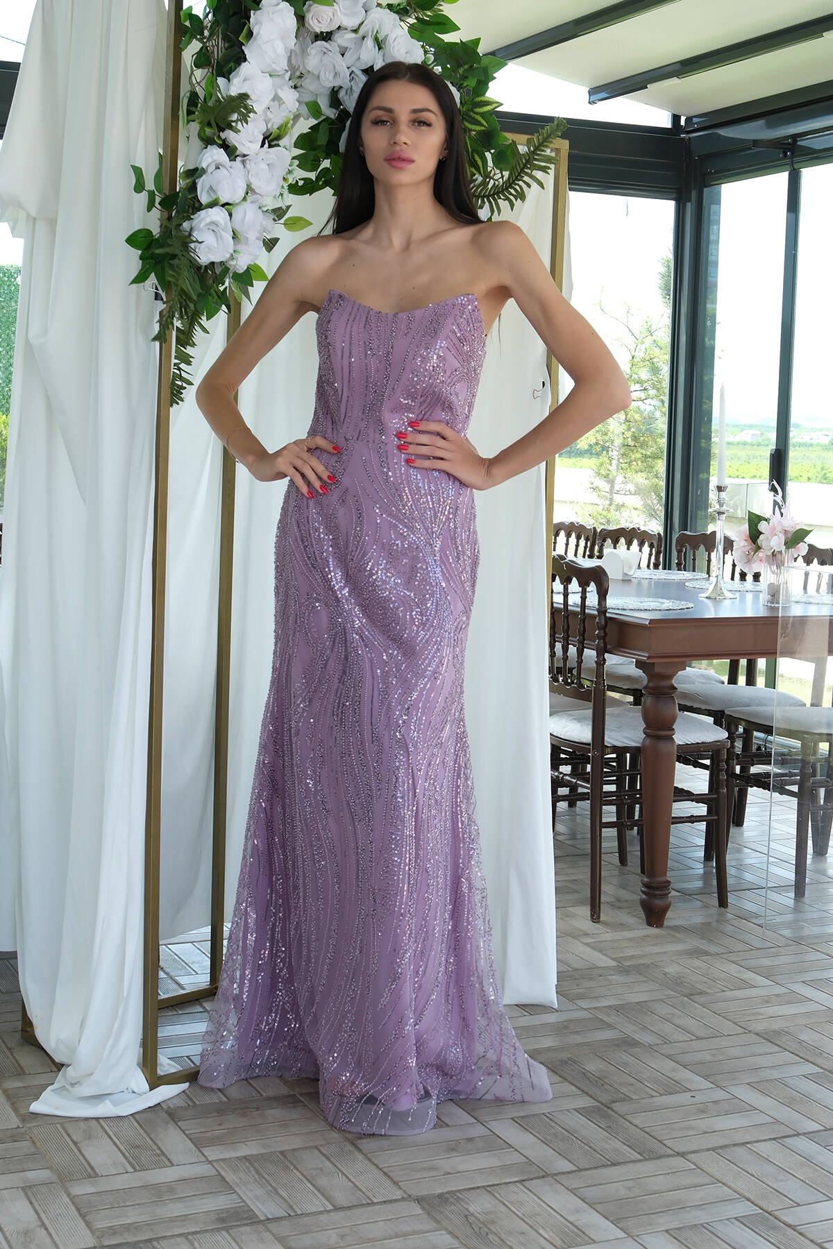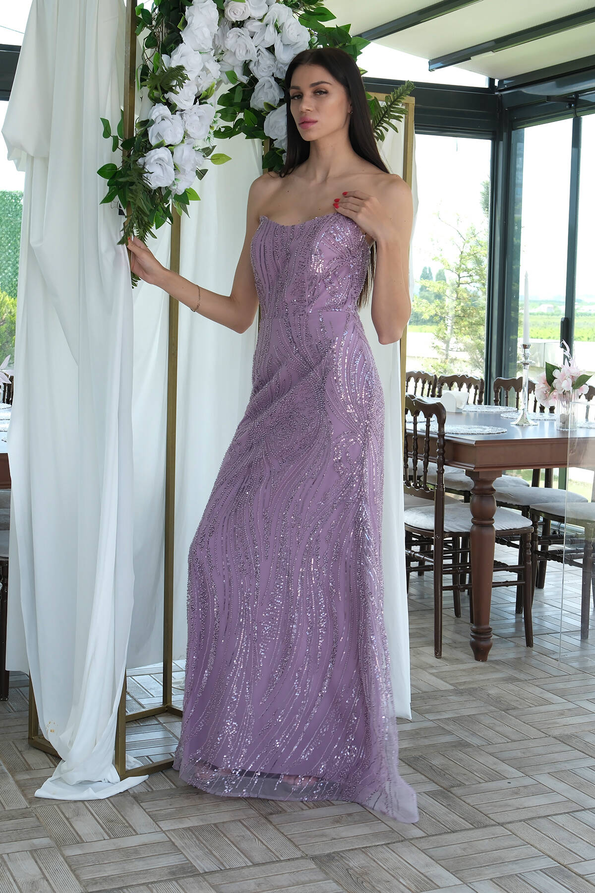 Lavanta Taş İşlemeli Uzun Balık Abiye 0801056.333