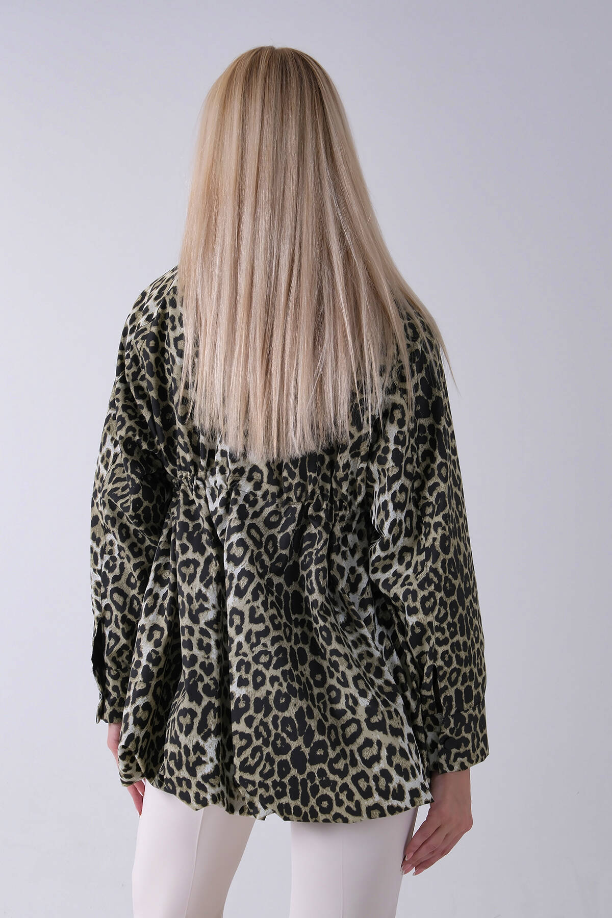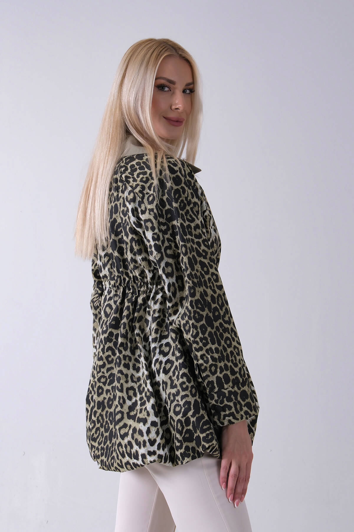 Leopar Yaka Garnili Leopar Desenli Beli Lastikli Trenç 5309347.53