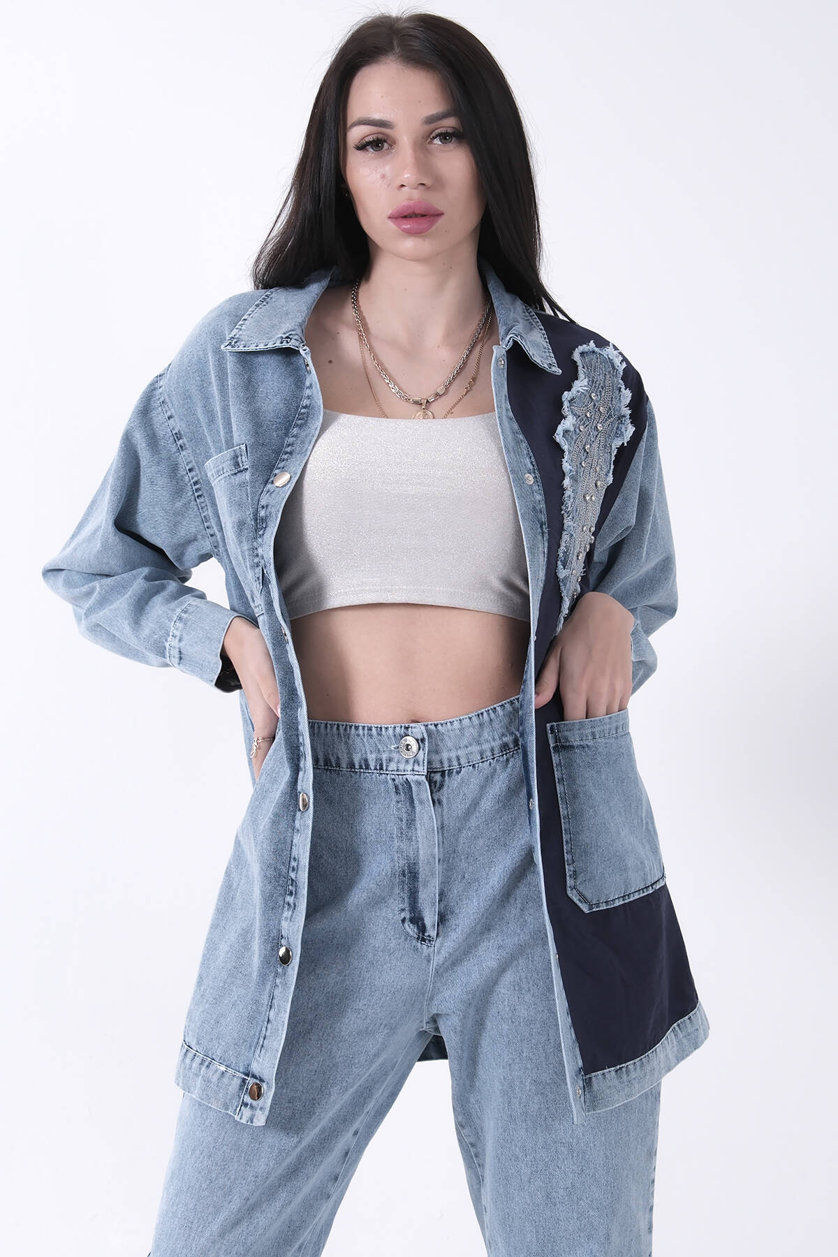 Mavi 2 Cep Detaylı Üzeri Taş İşlemeli Kot Gömlek 44510650.16