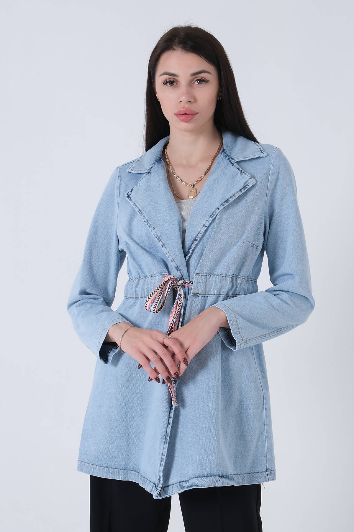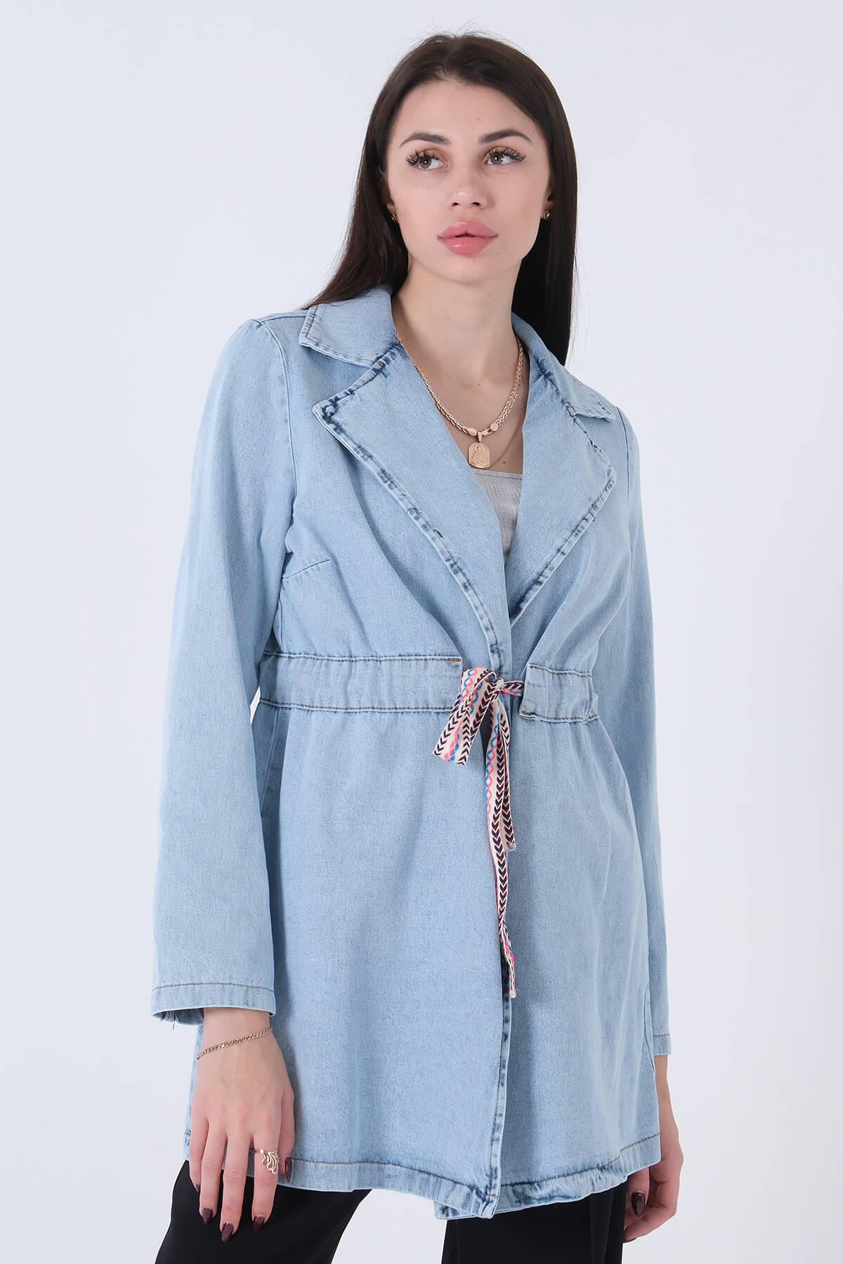 Mavi Belden Bağlamalı Kot Ceket 0809020.16