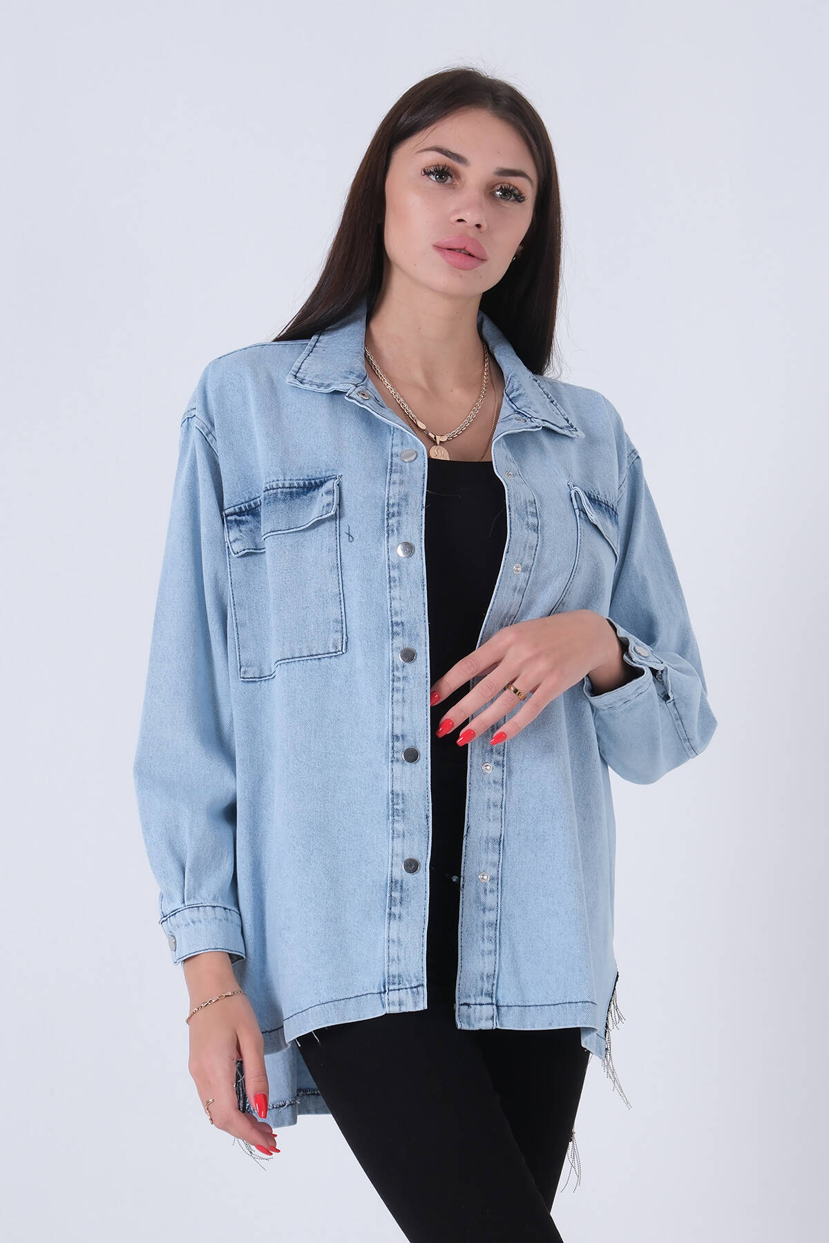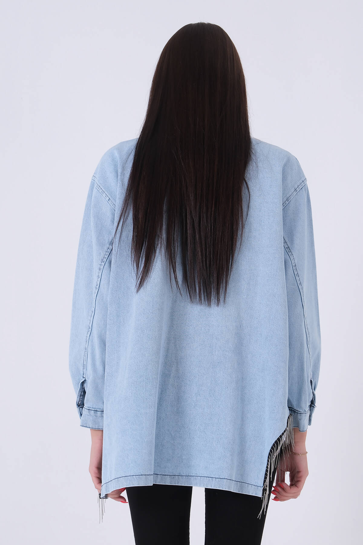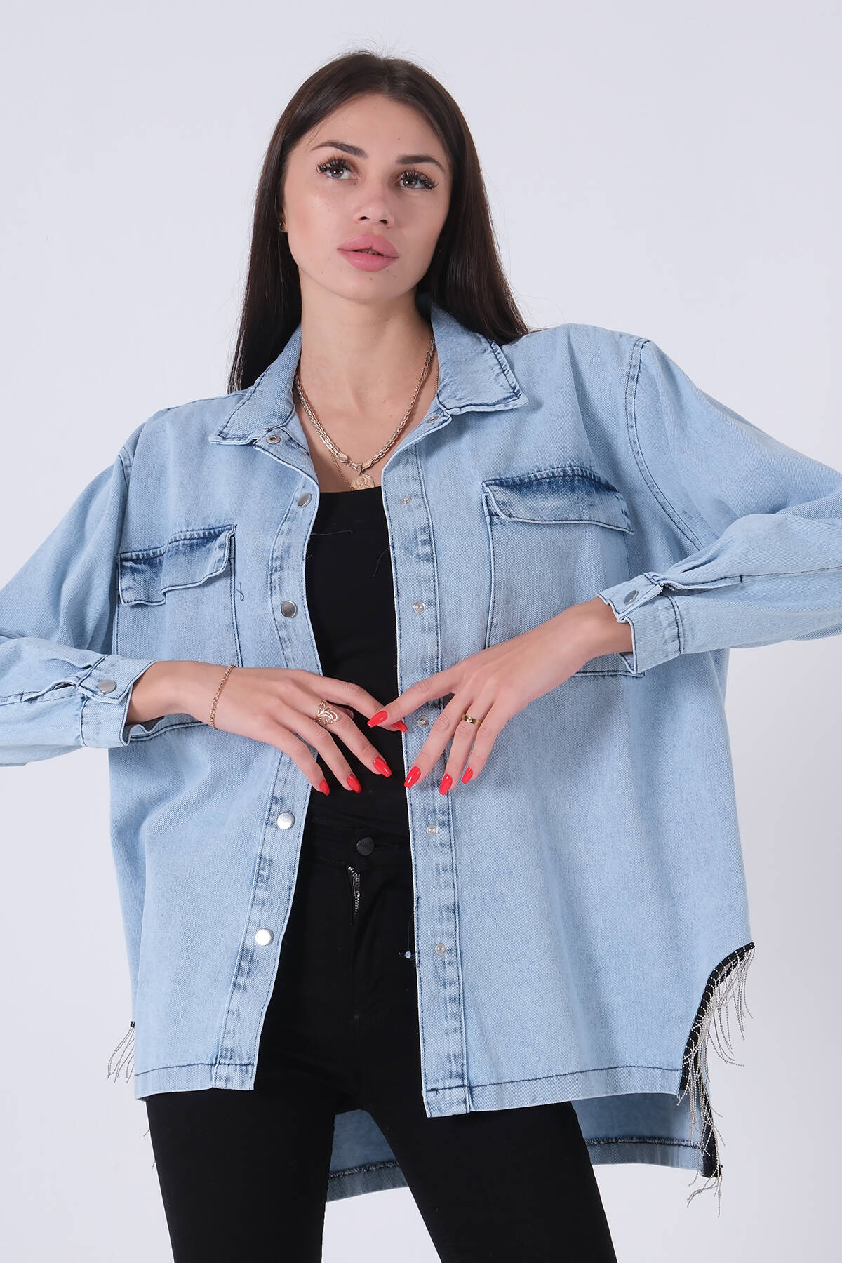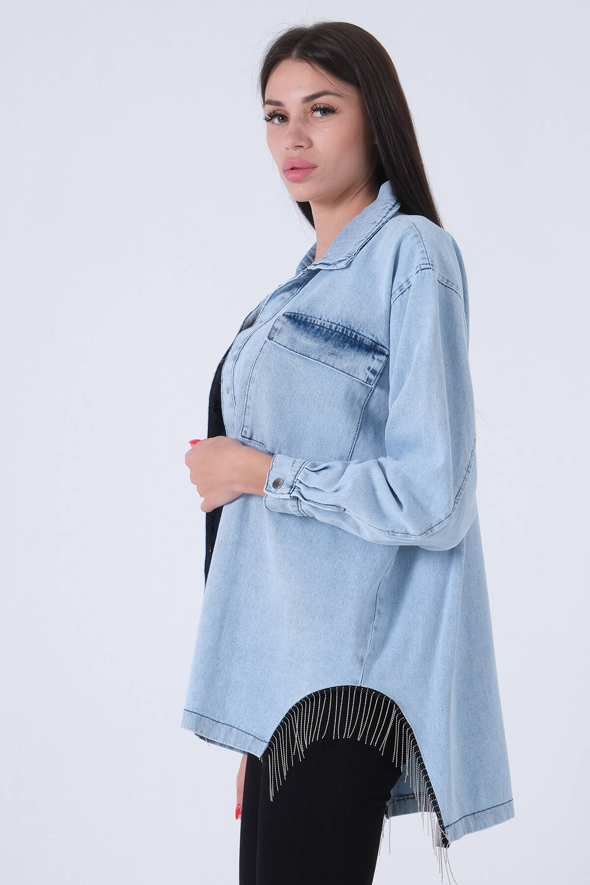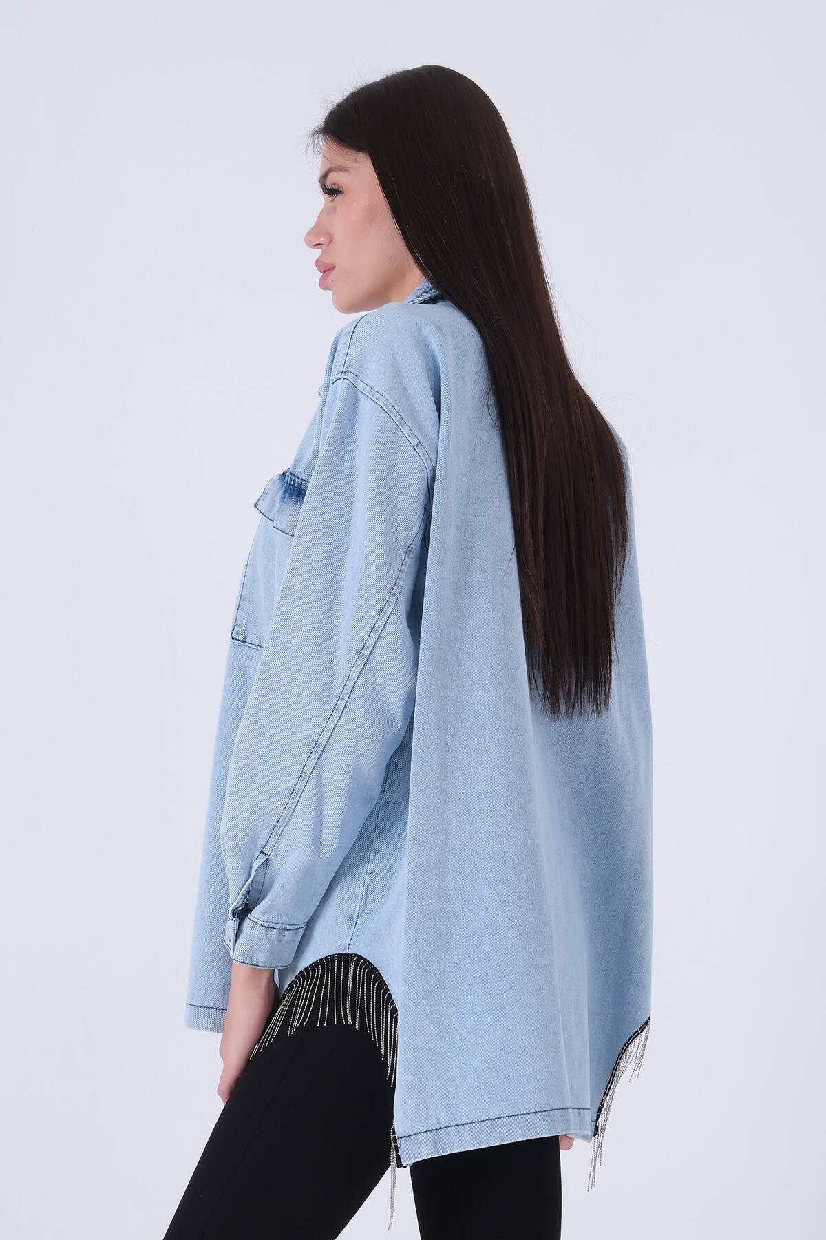 Mavi Çıtçıtlı Zincir Püskül Detaylı Kot Ceket 0806208.16
