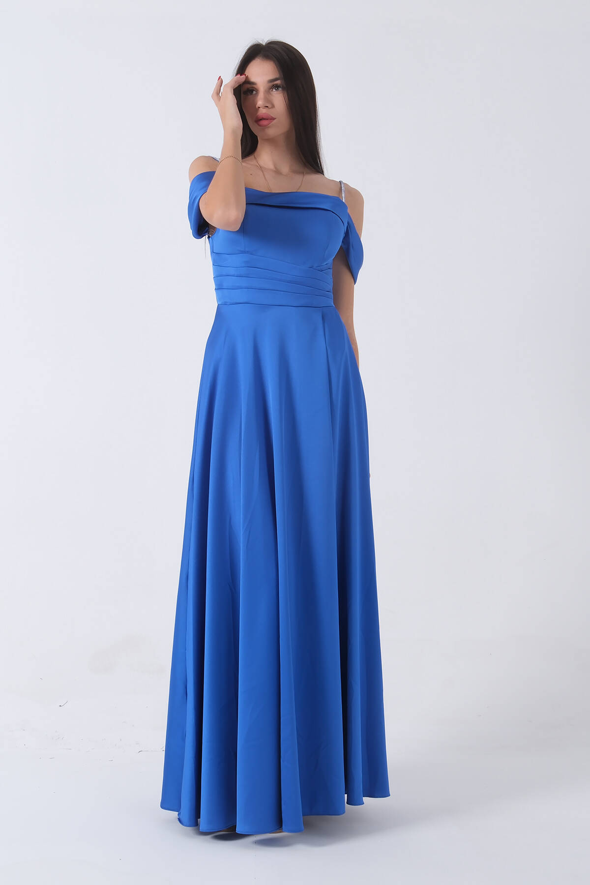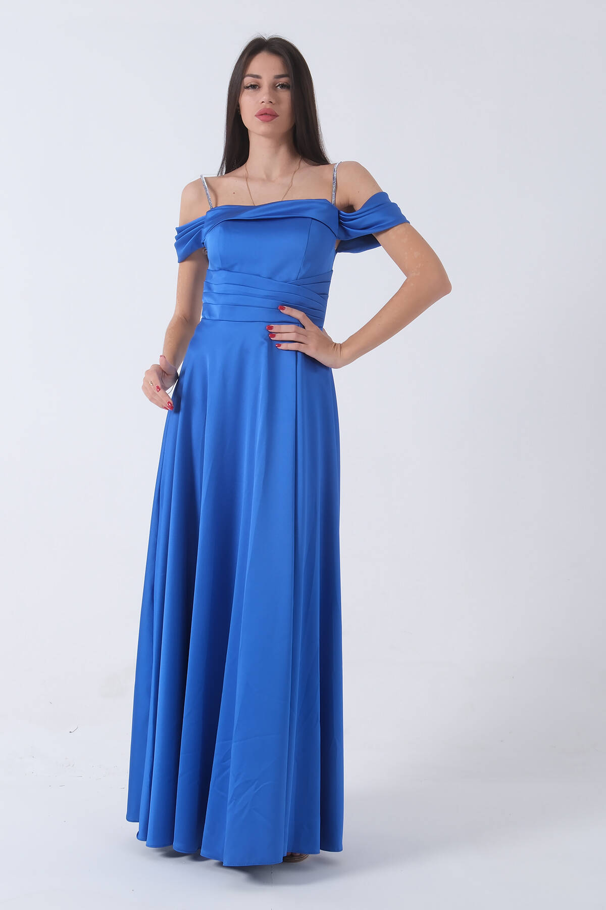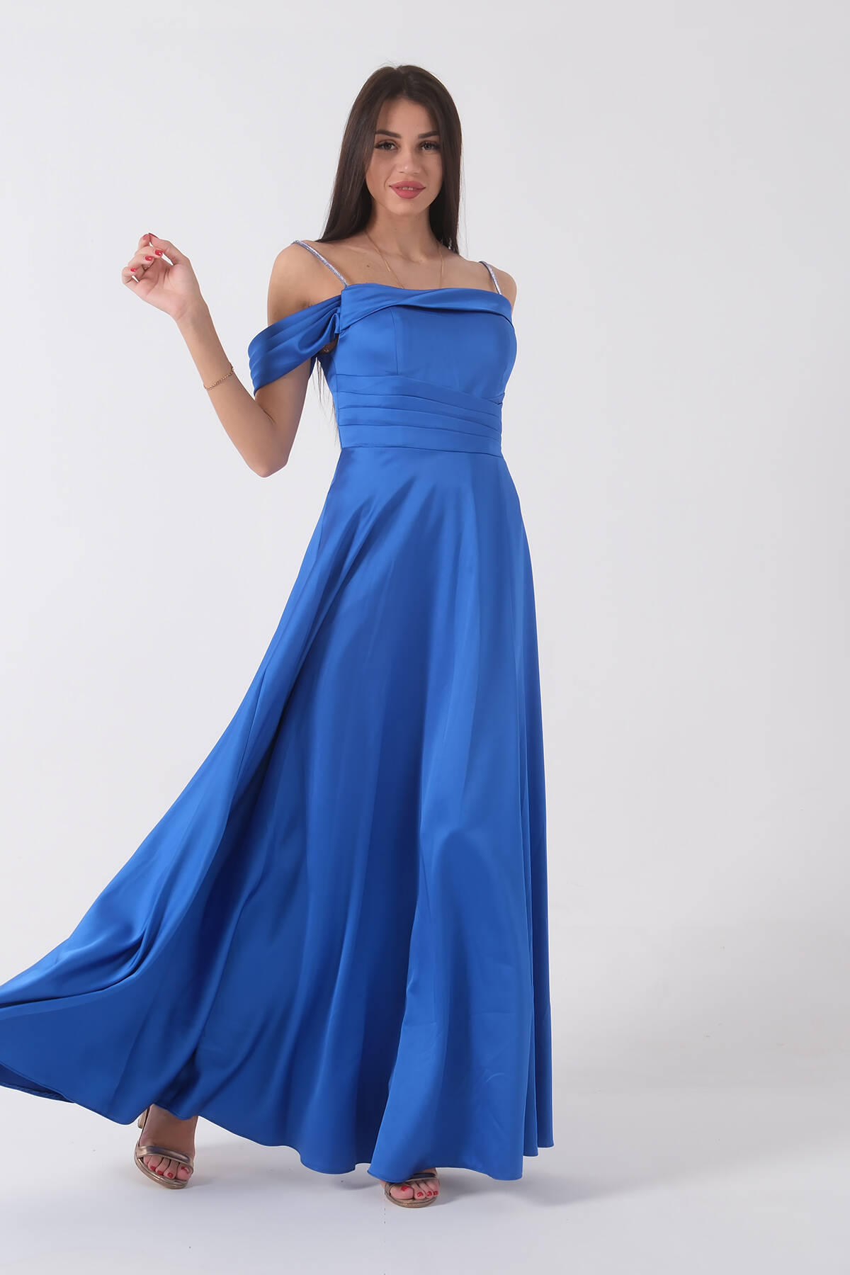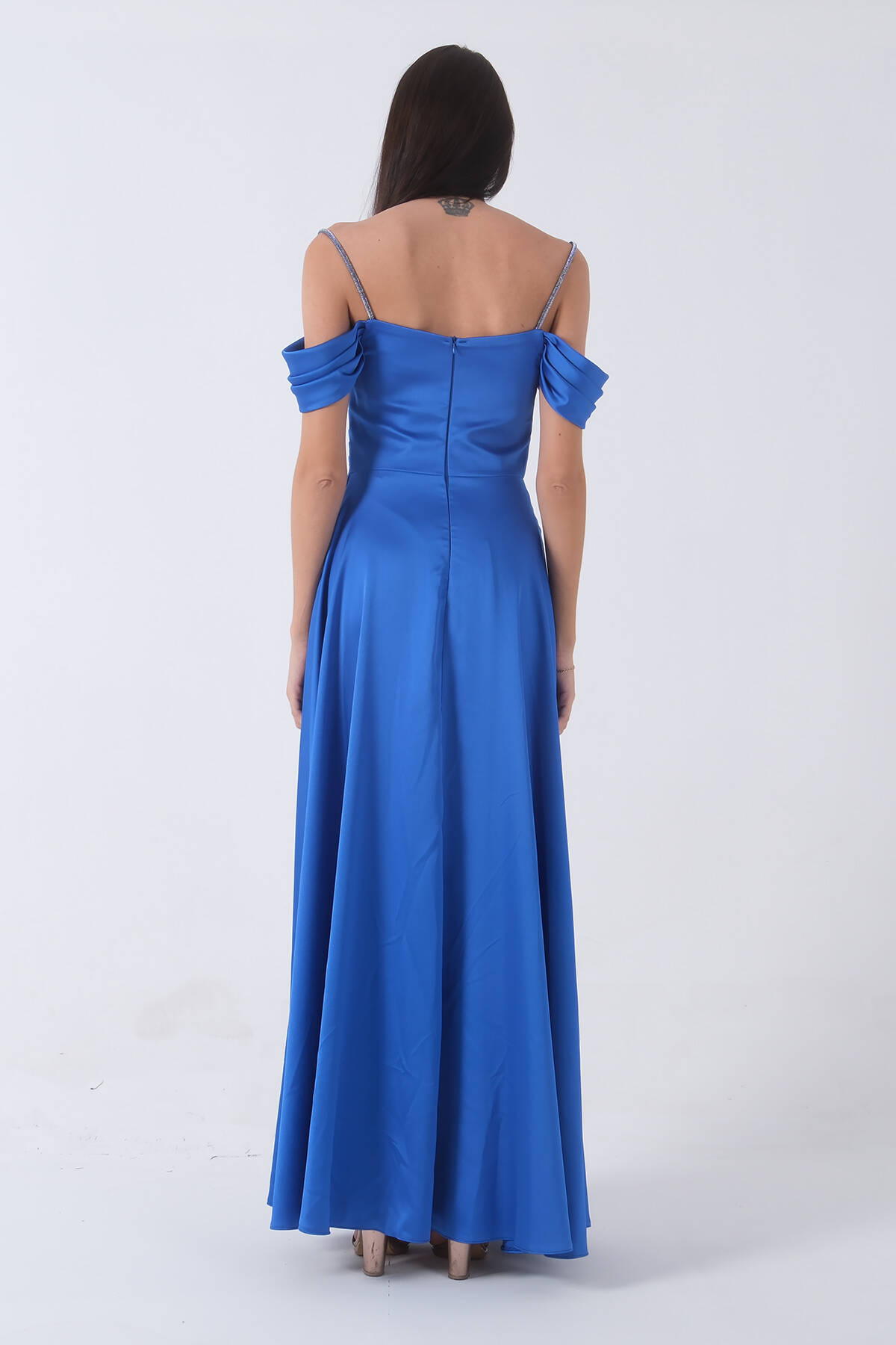 Mavi Taş Askılı Düşük Kol Saten Abiye 0806118.16
