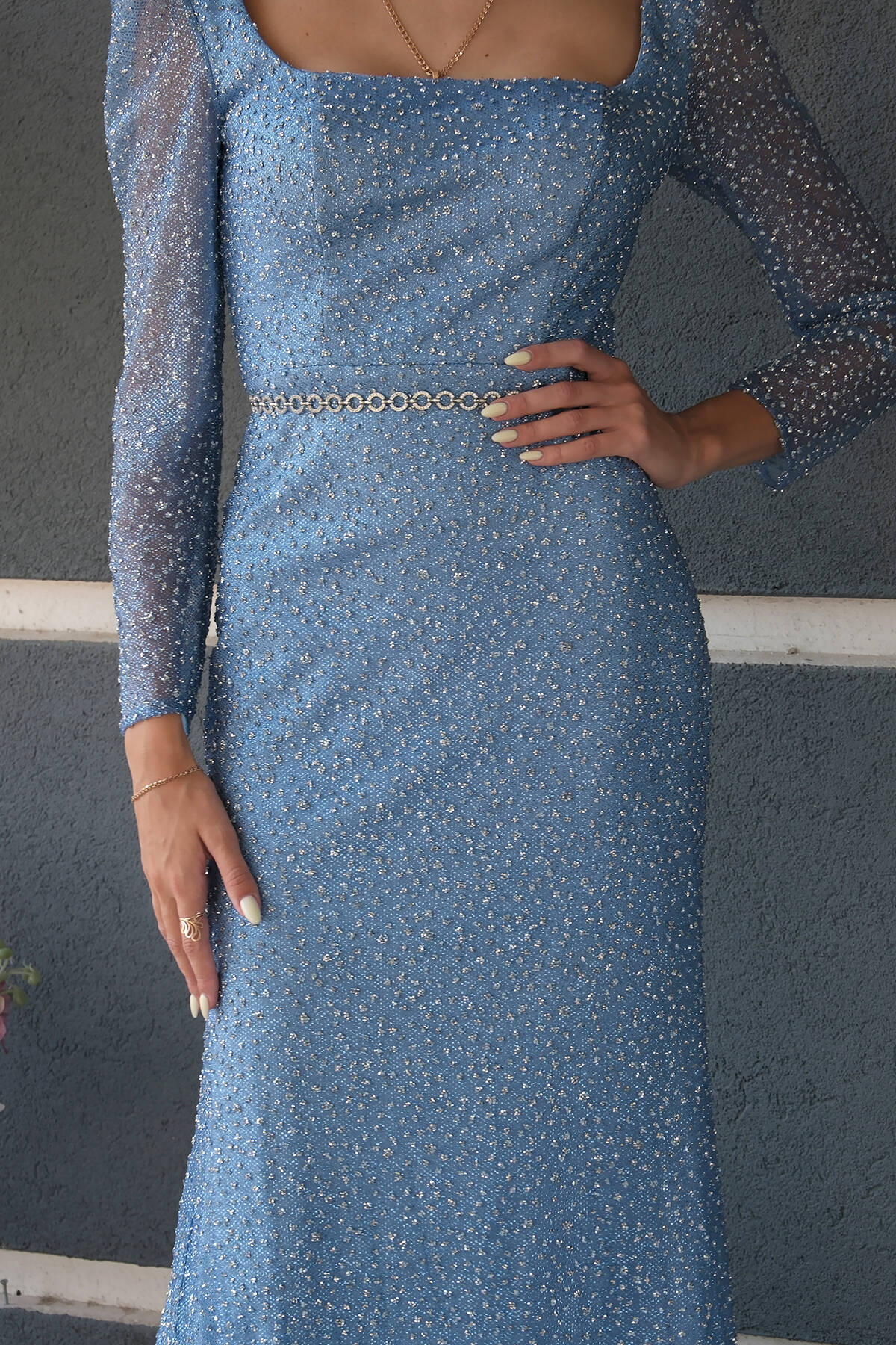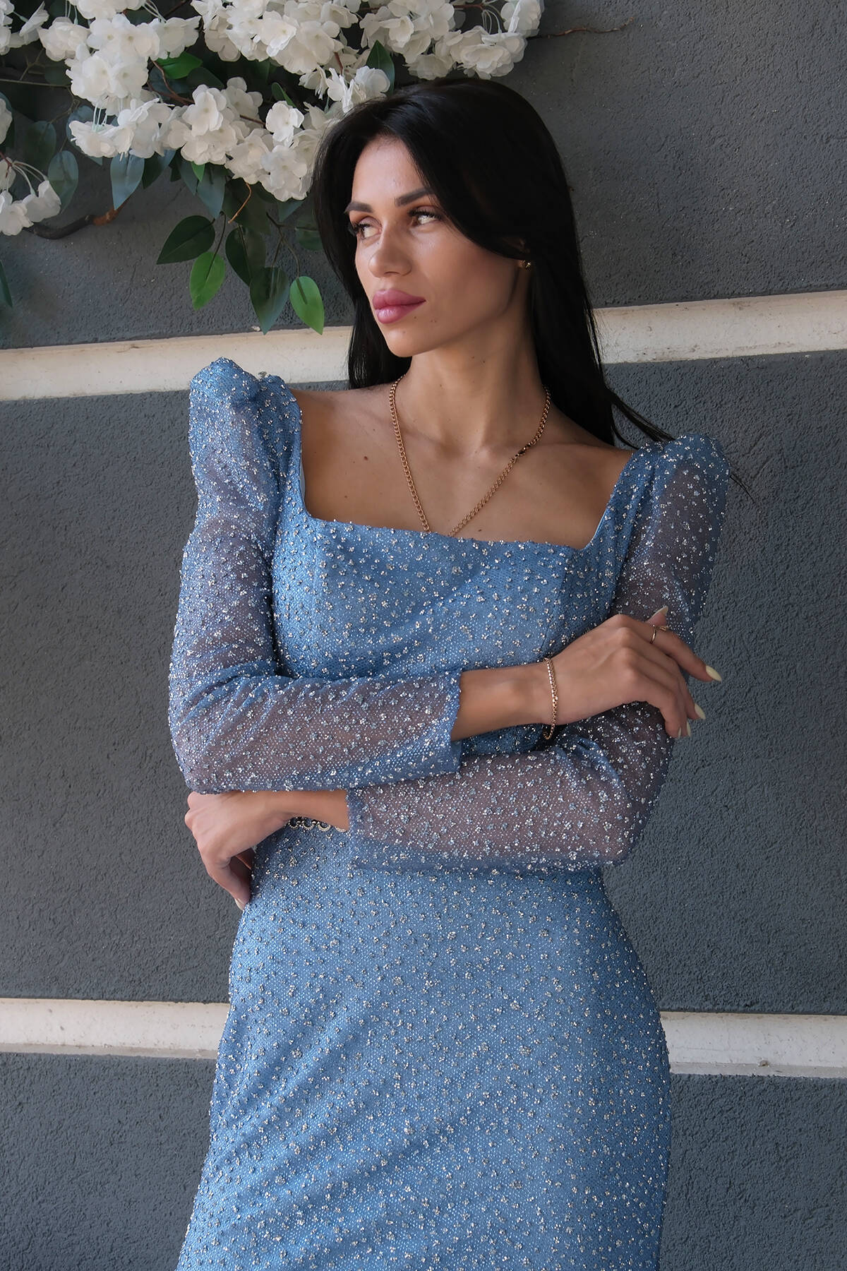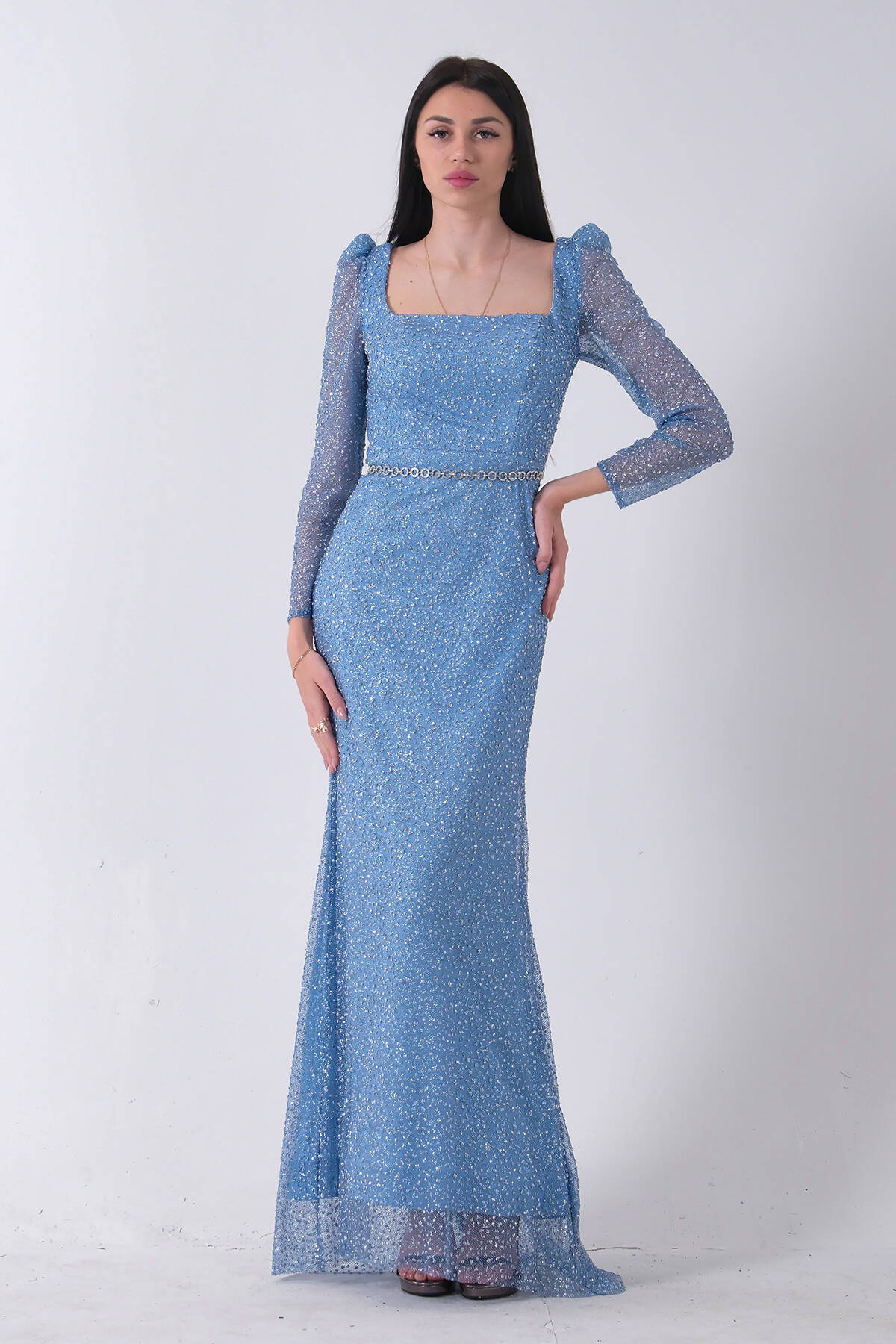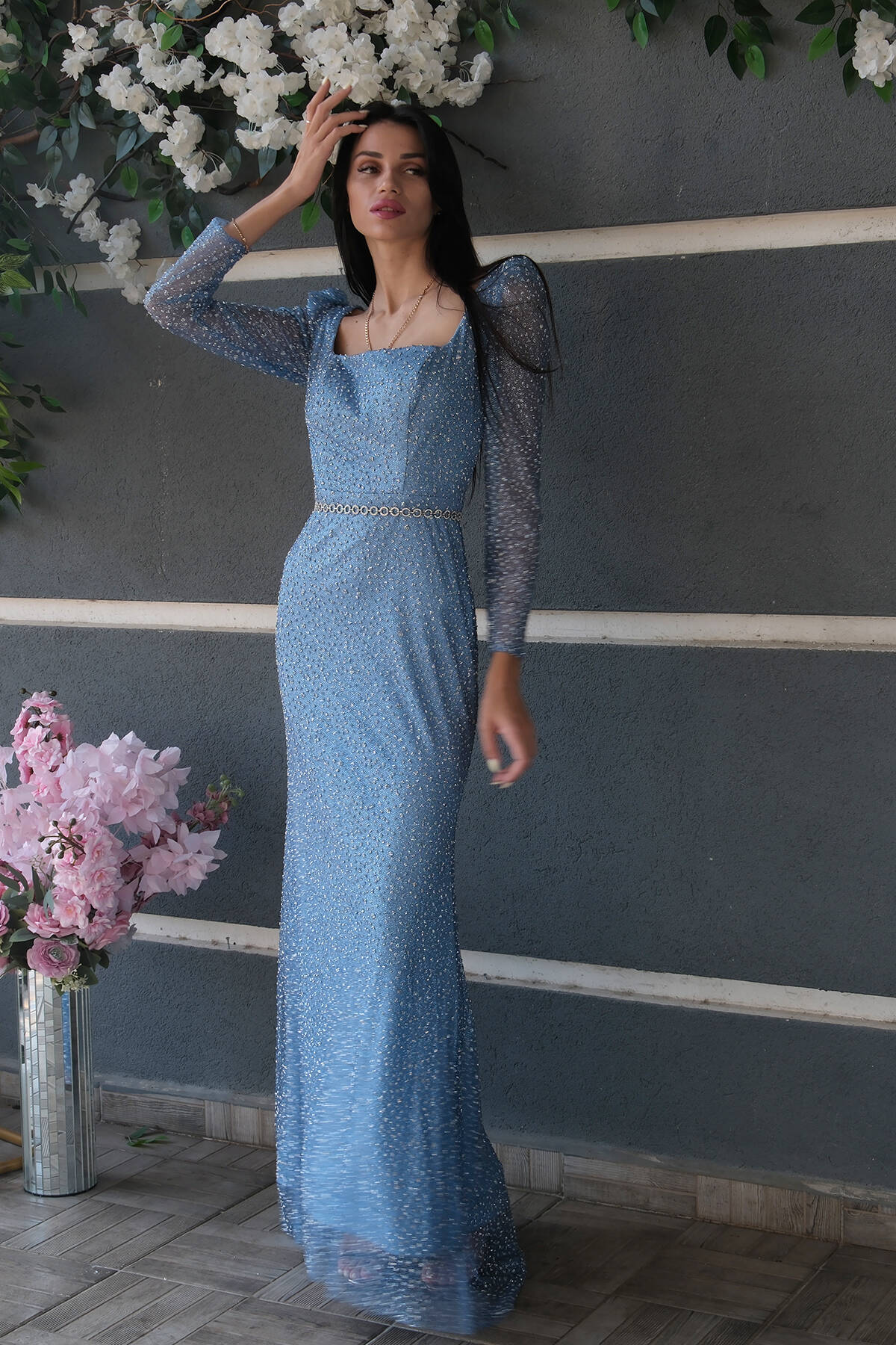 Mavi Taş İşlemeli Balık Abiye Elbise 9705141.16