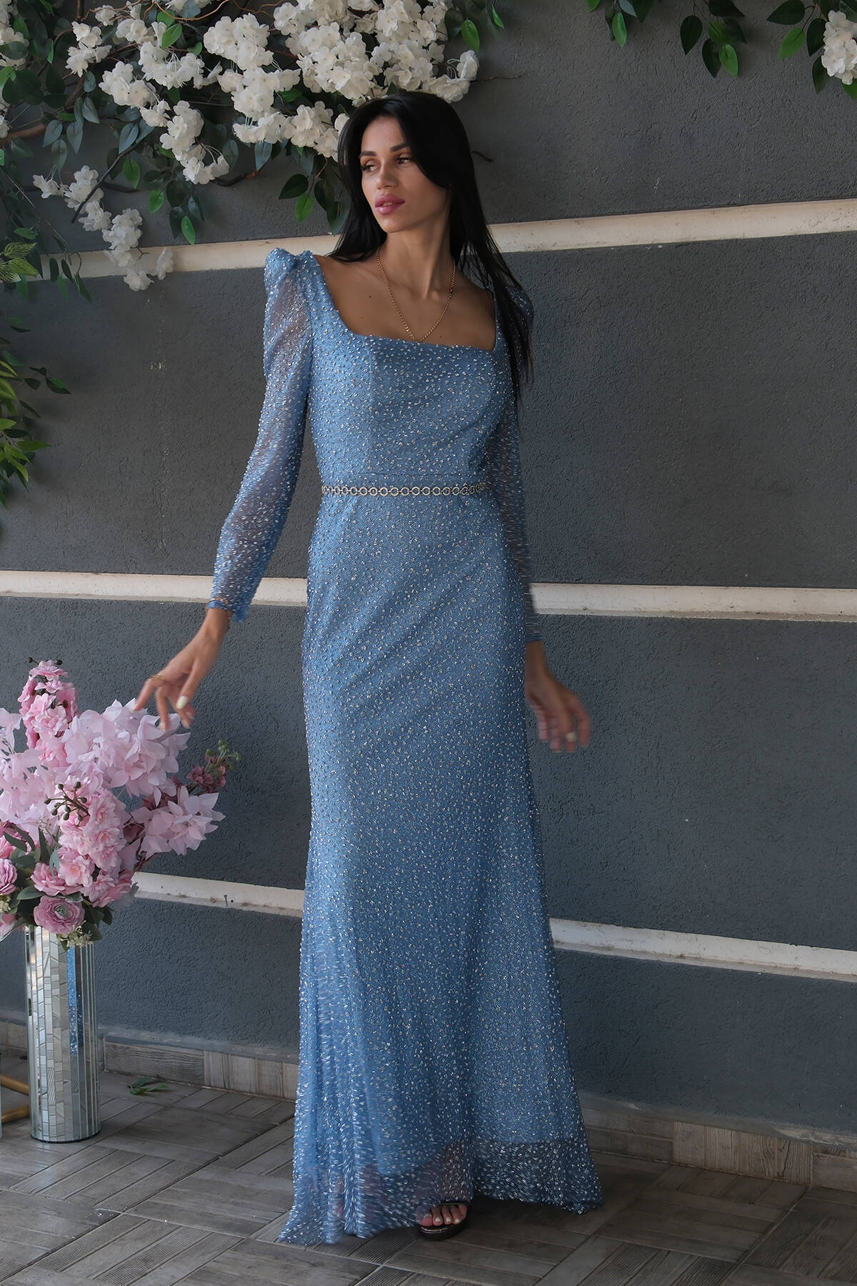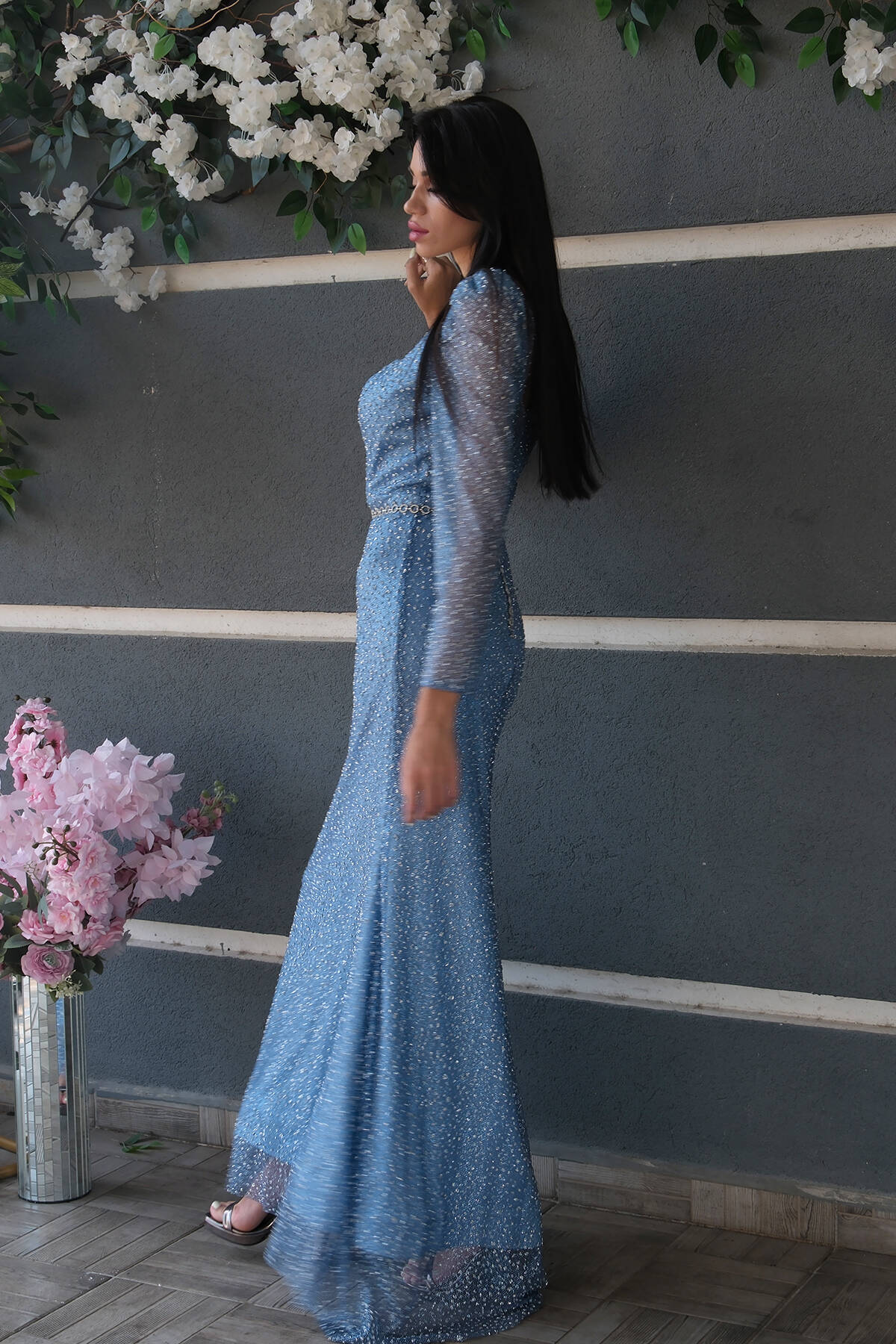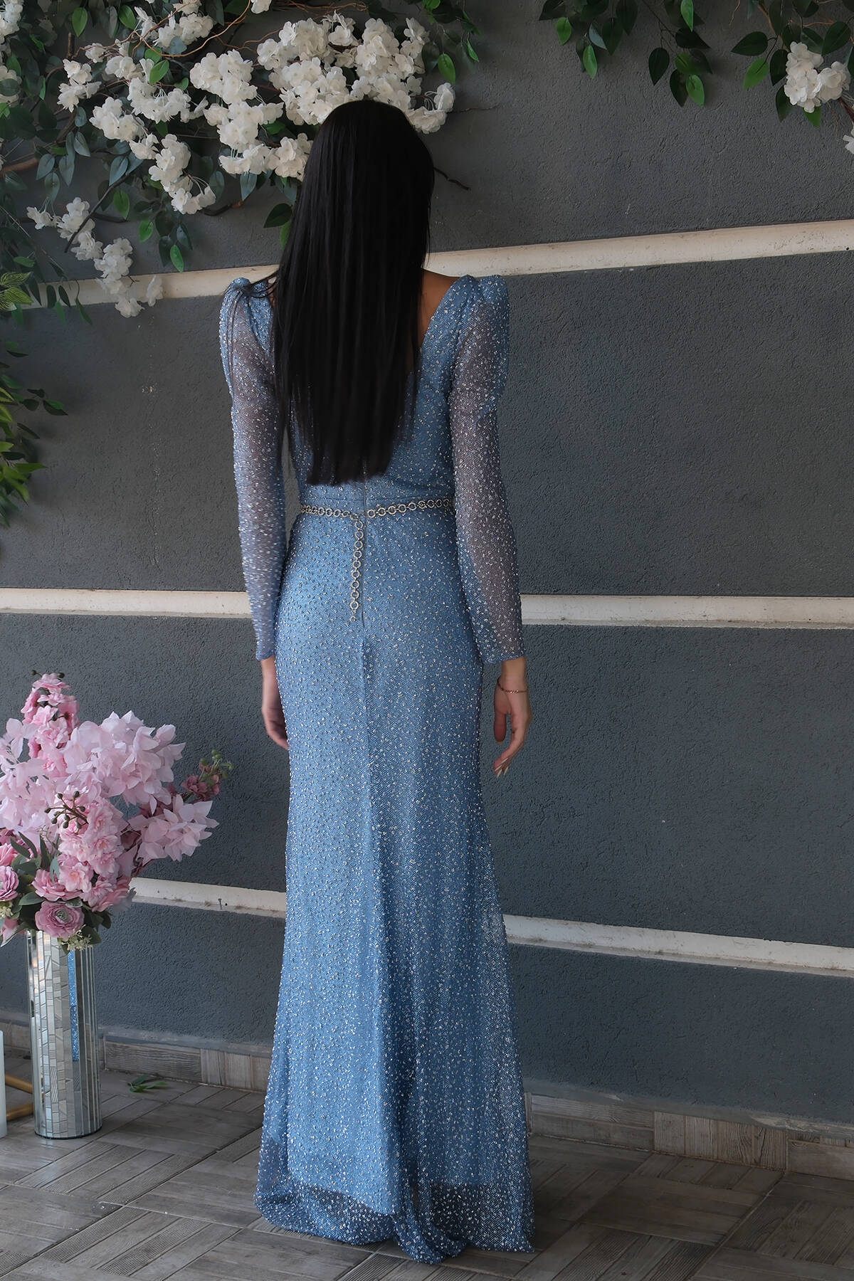 İndigo Taş İşlemeli Uzun Balık Abiye 0801056.98