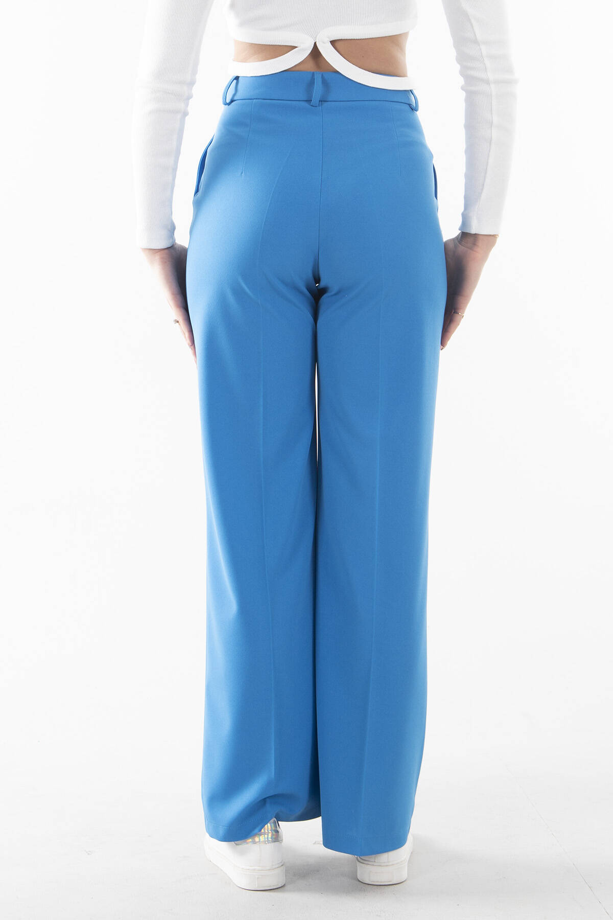 Mavi Yüksek Bel Pileli Palazzo Pantolon 0102066.16