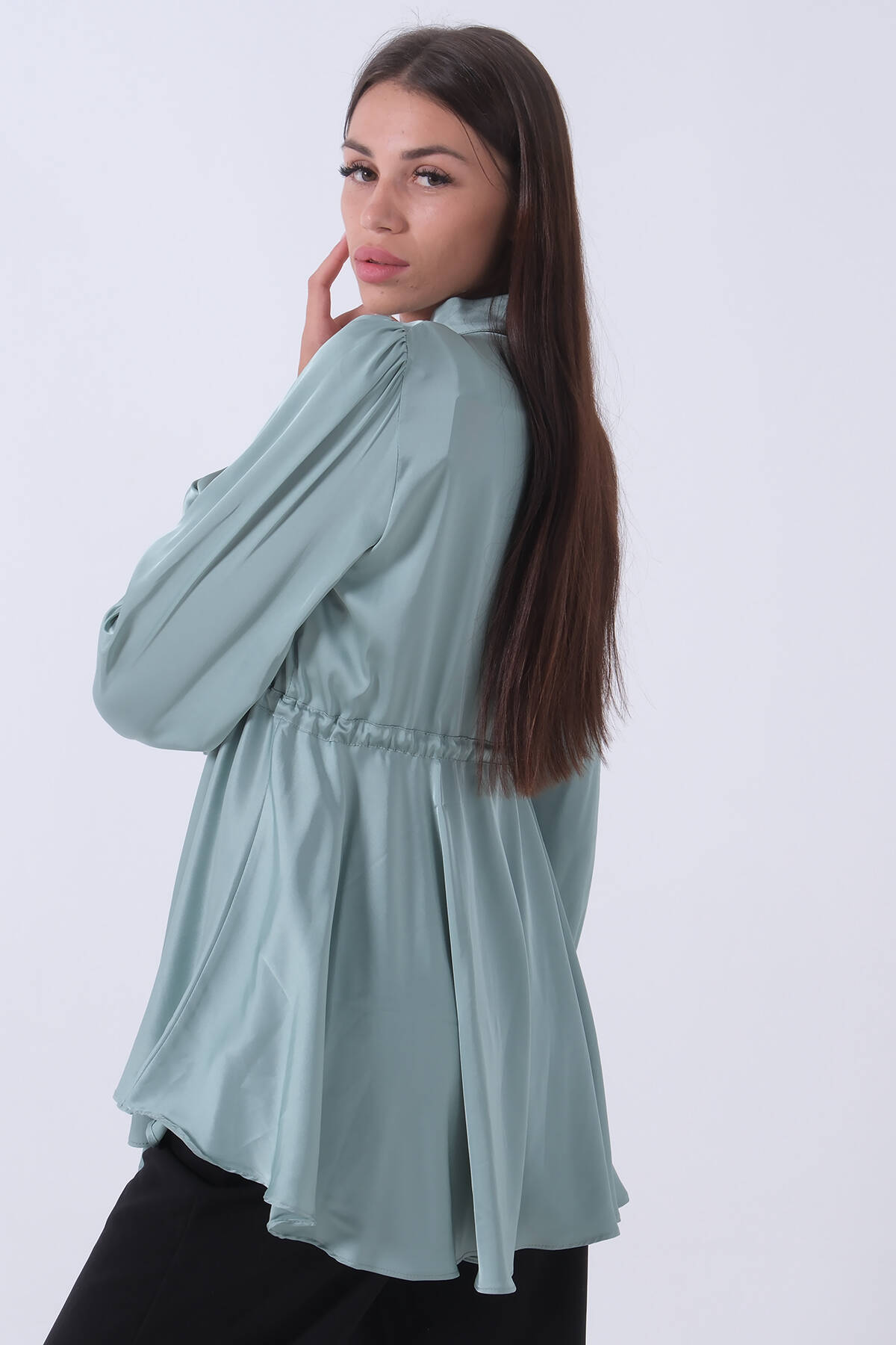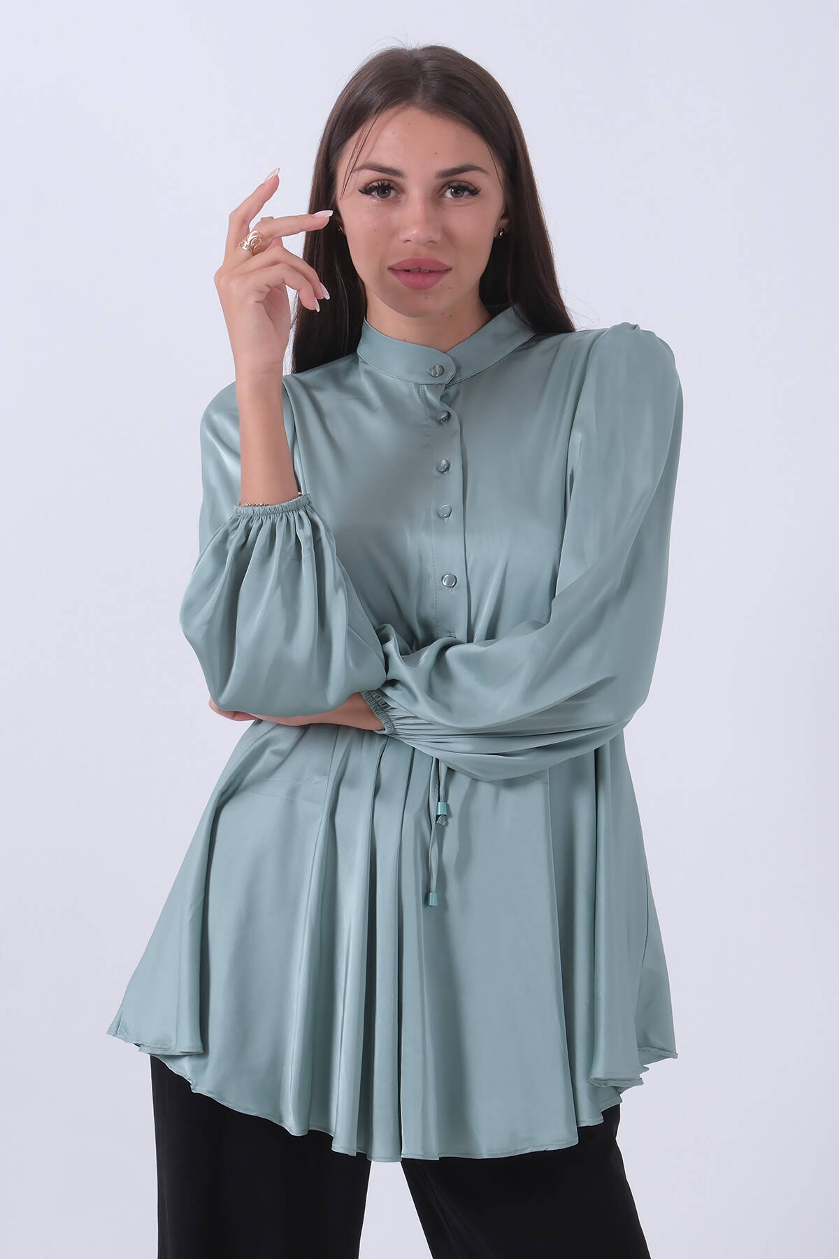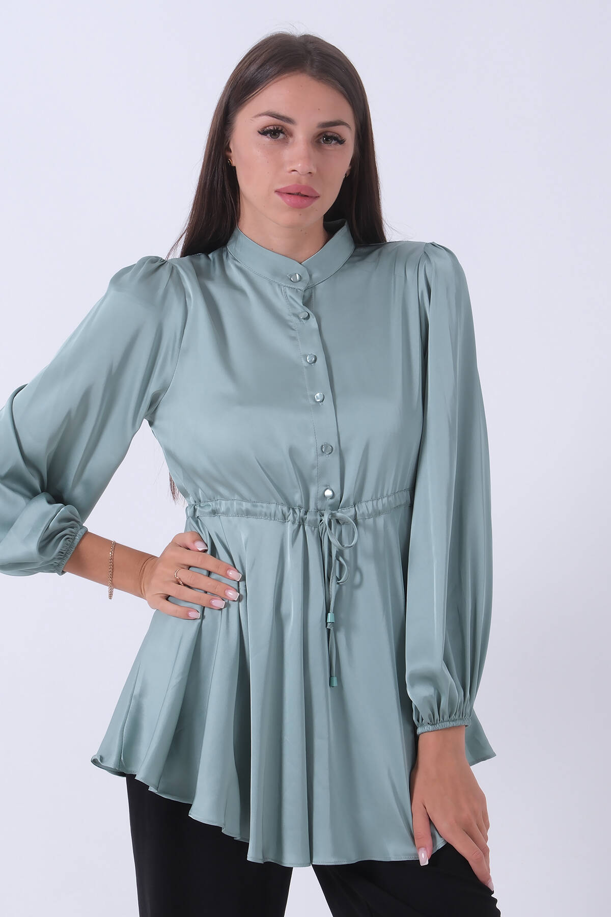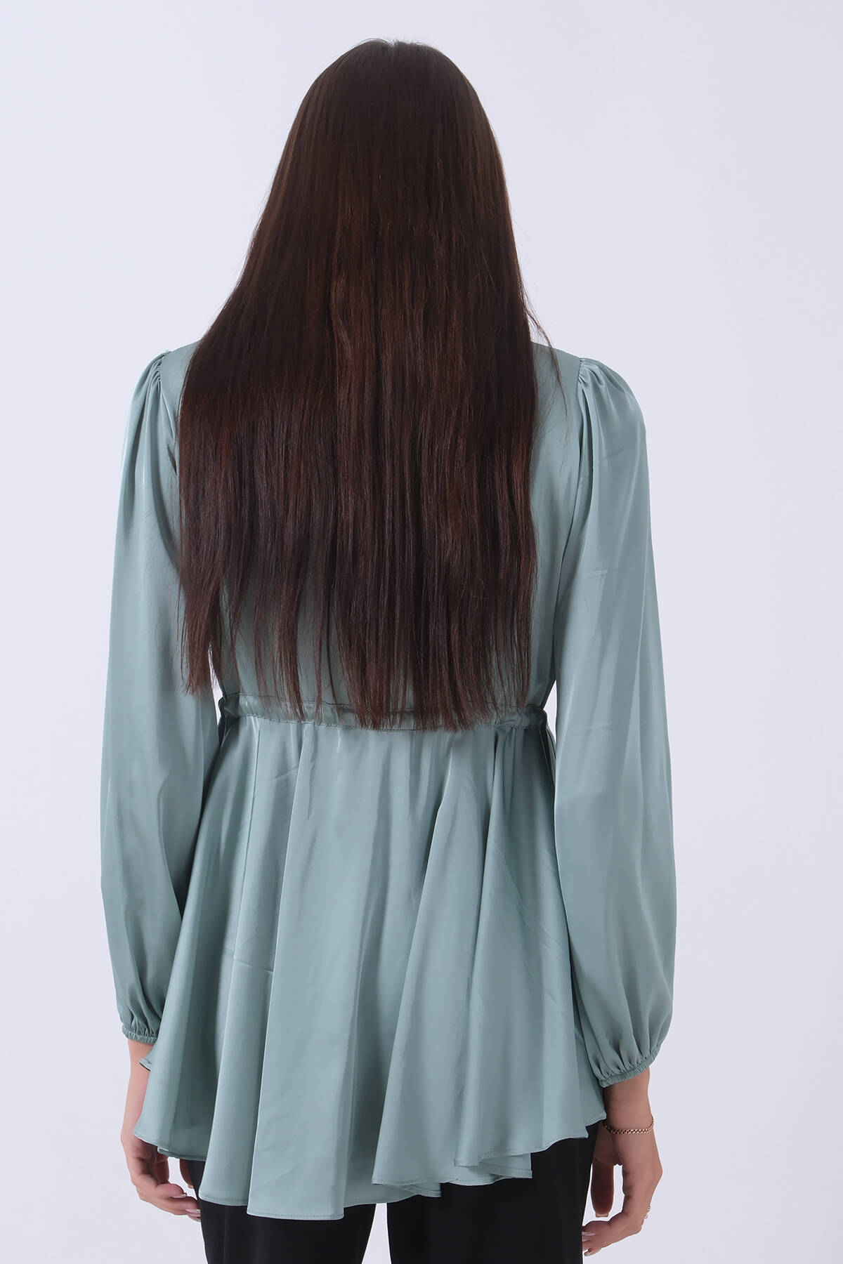 Mint Kolu Lastikli Belden Bağlamalı Saten Tunik 44510418.27