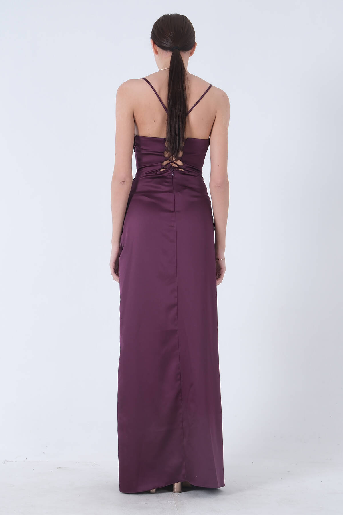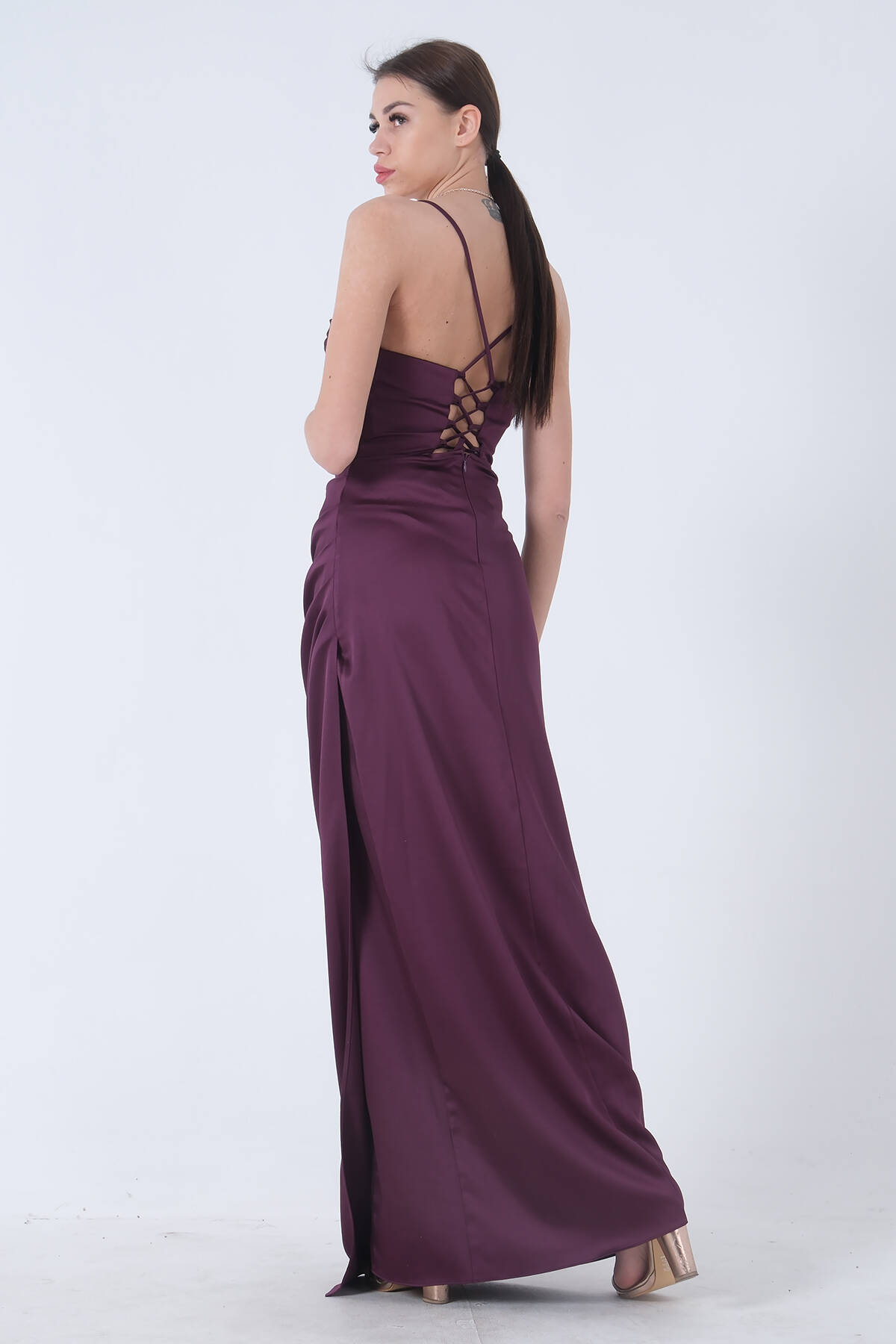 Mürdüm Sırtı Bağlamalı Yırtmaçlı Abiye 4522018.21