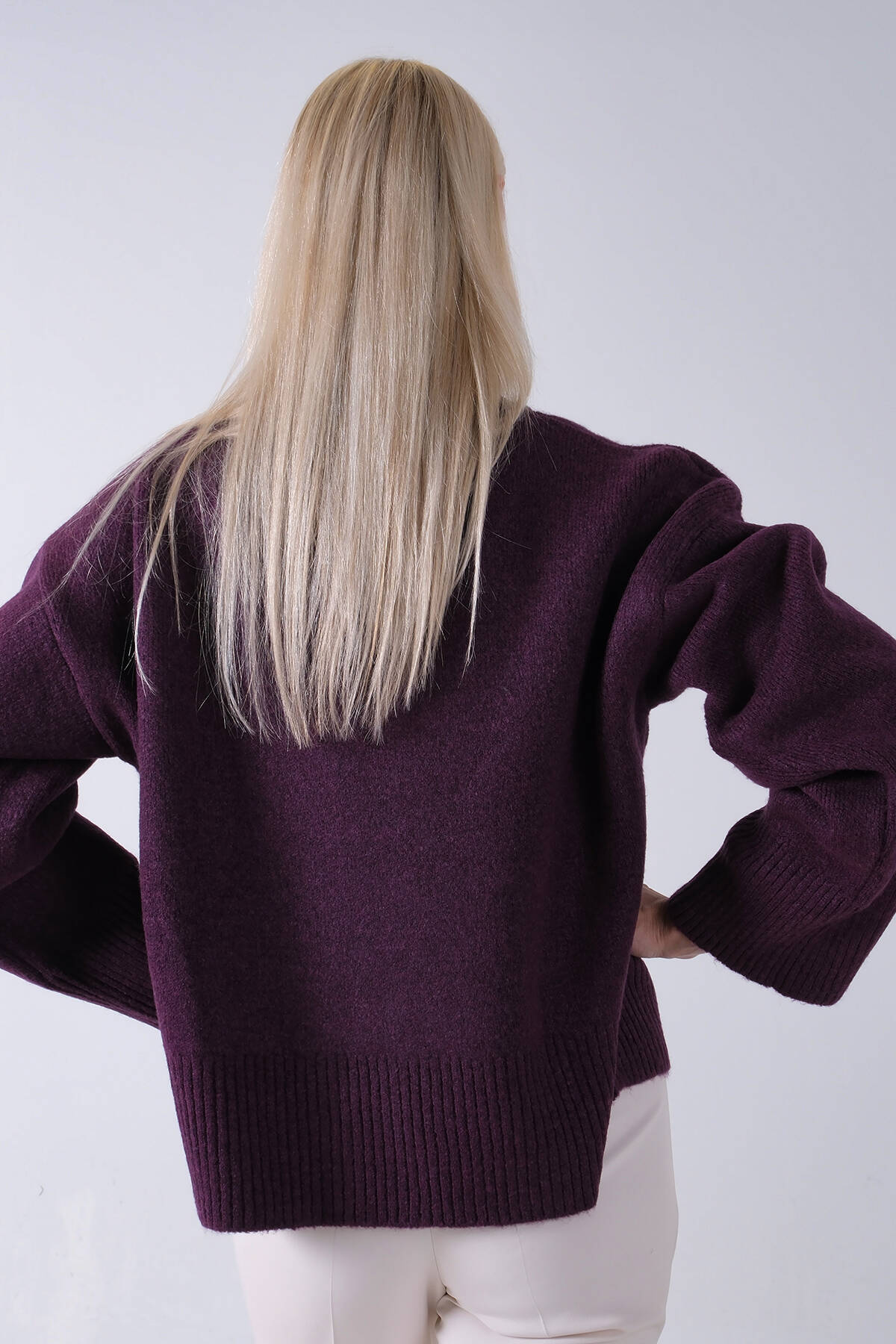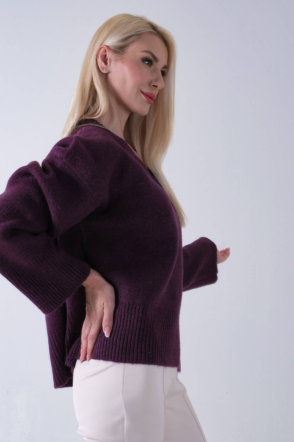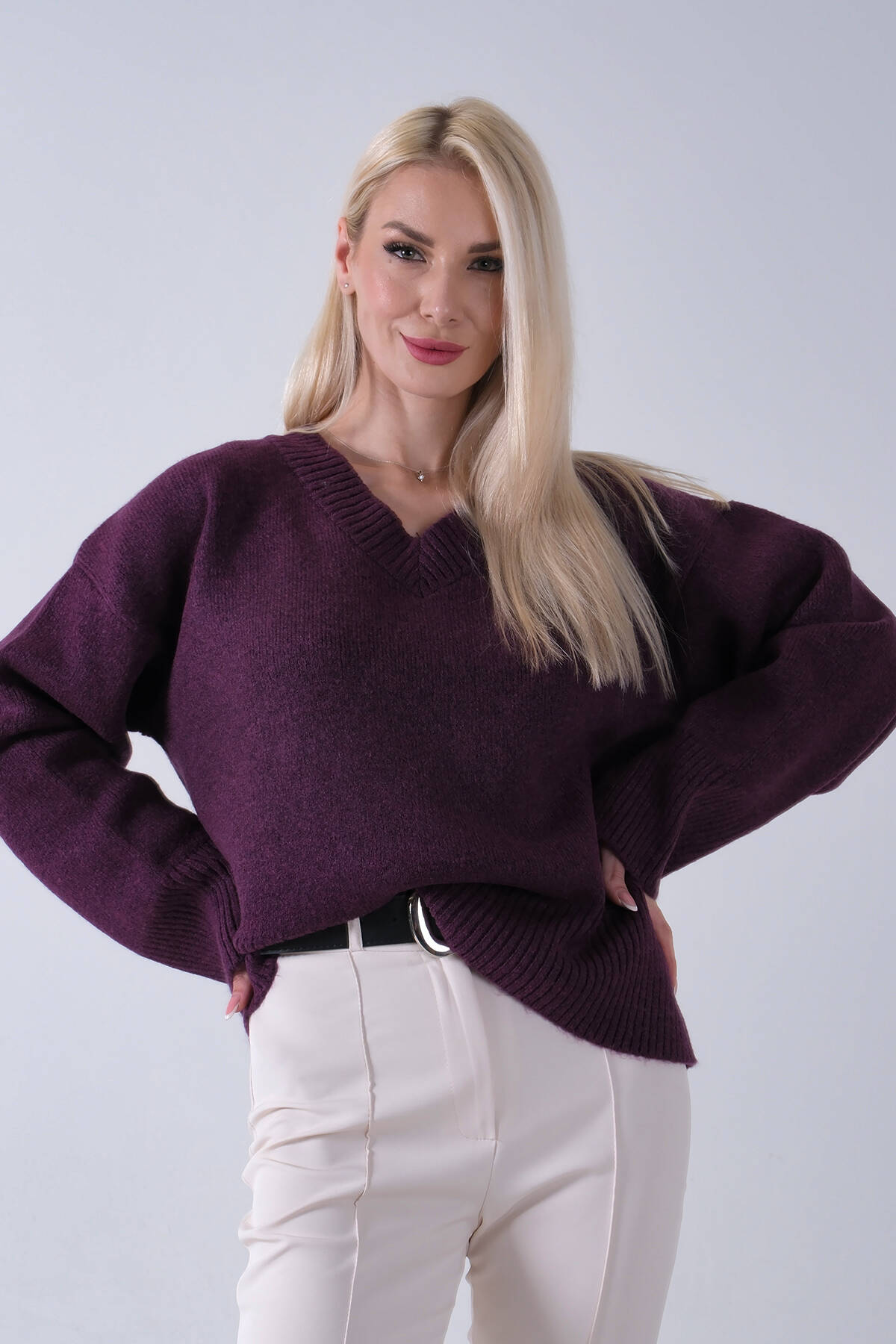 Mürdüm V Yaka Beli Lastikli Triko Kazak 46892623.21