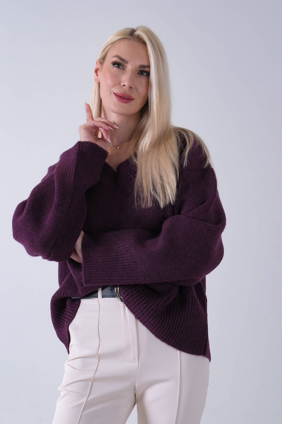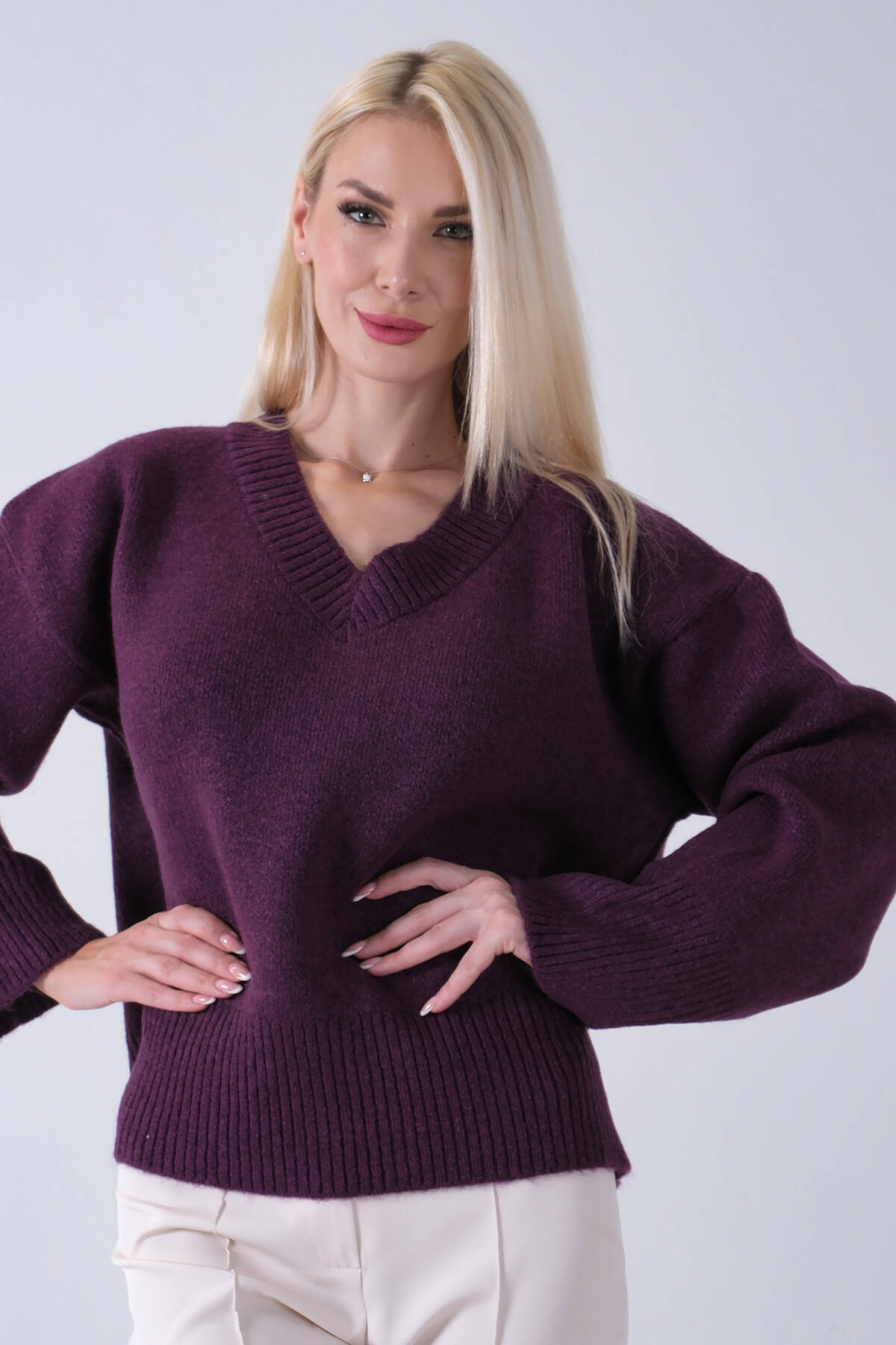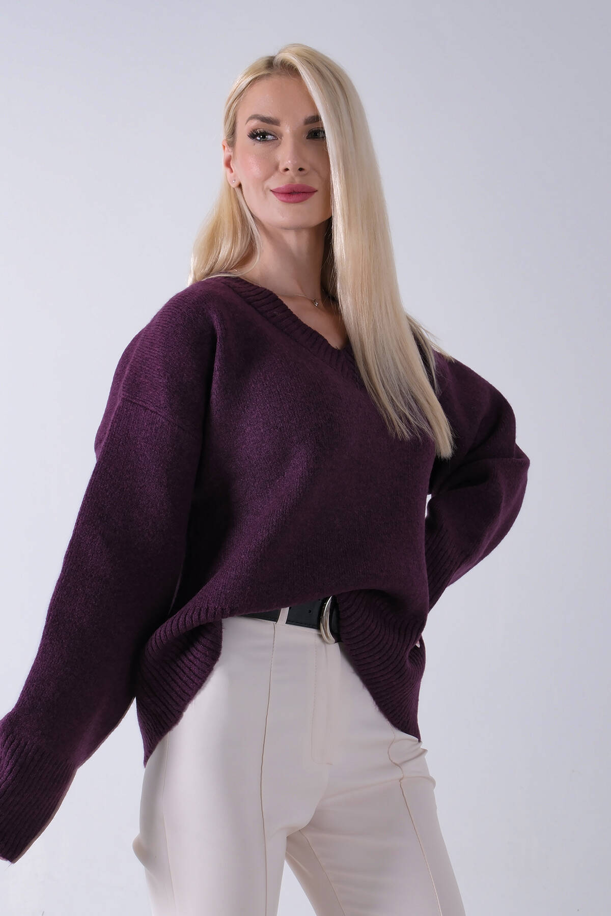 Mürdüm V Yaka Beli Lastikli Triko Kazak 46892623.21