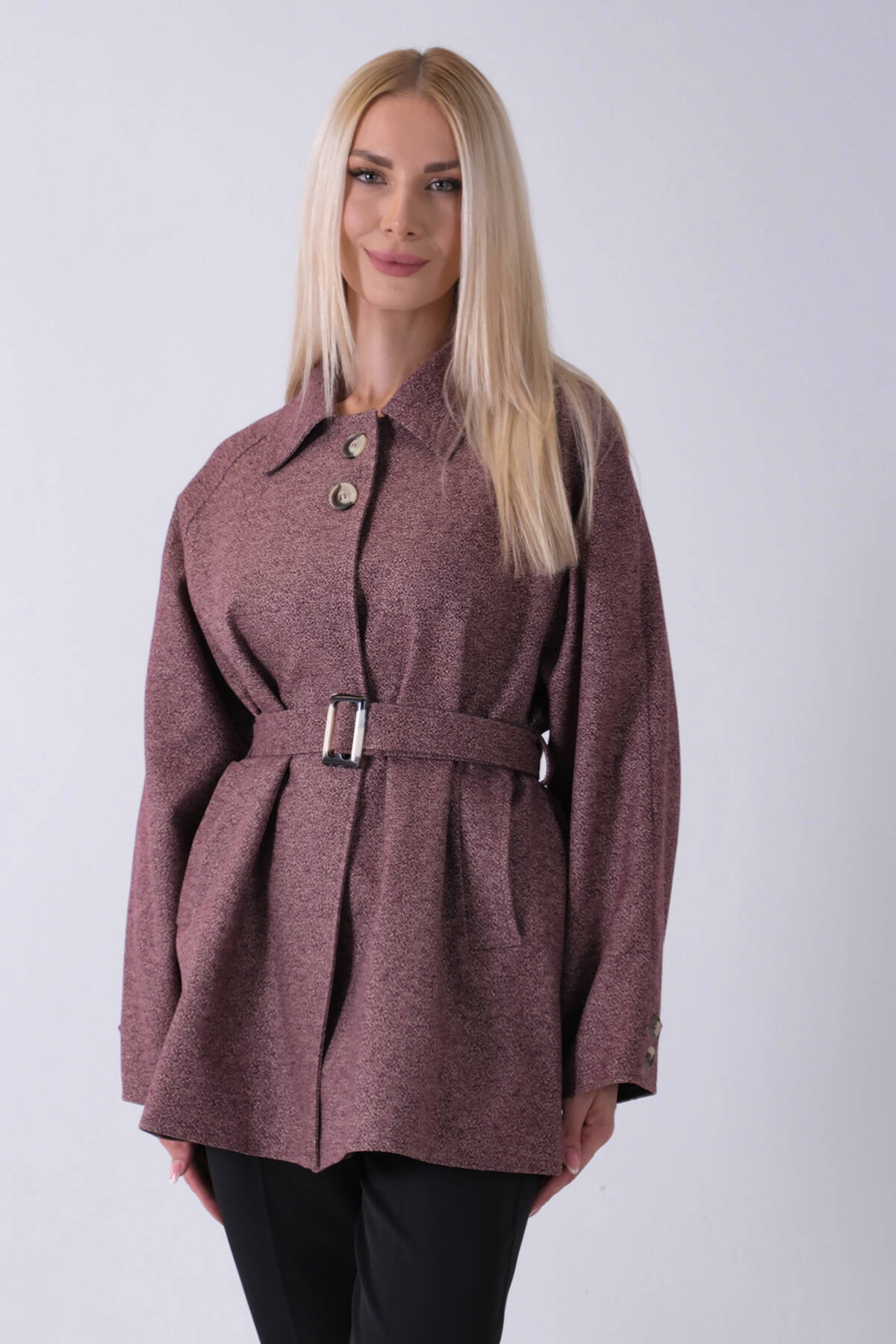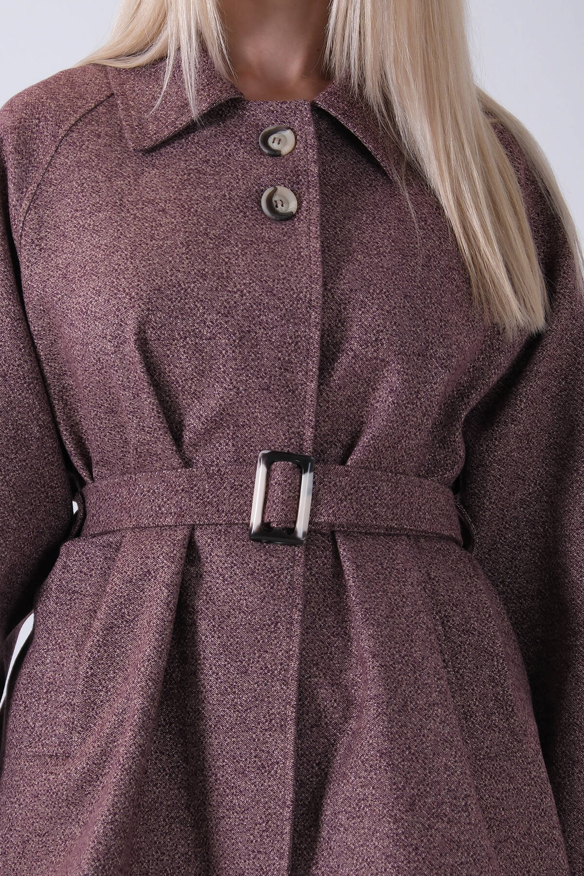 Mürdüm Yaka 2 Düğme Kapamalı Yandan Cepli Kemerli Kaban 4578039.21