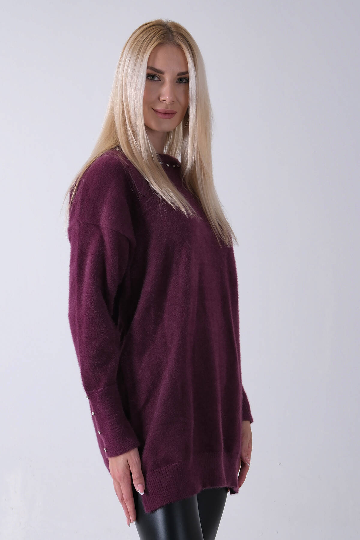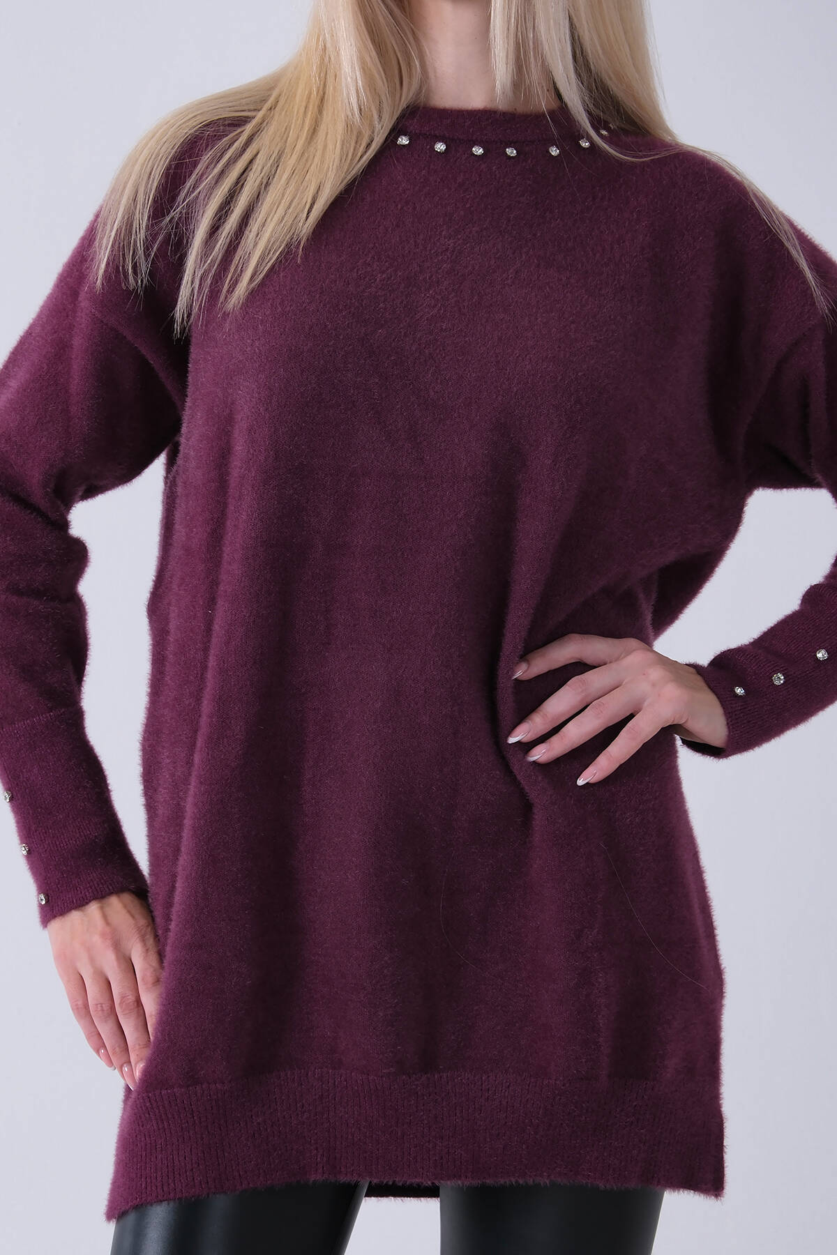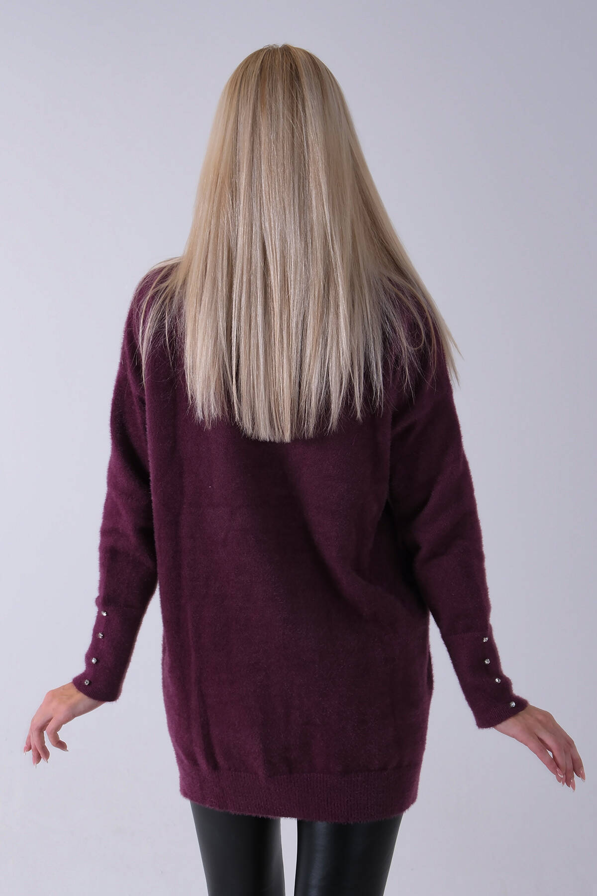 Mürdüm Yaka ve Kolları Taş Detaylı Bisiklet Yaka Kazak 44530206.21