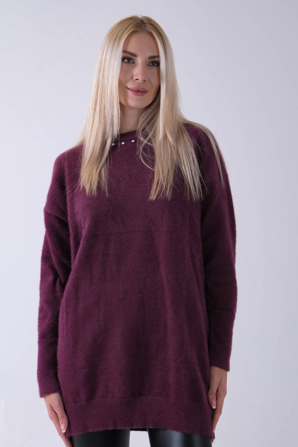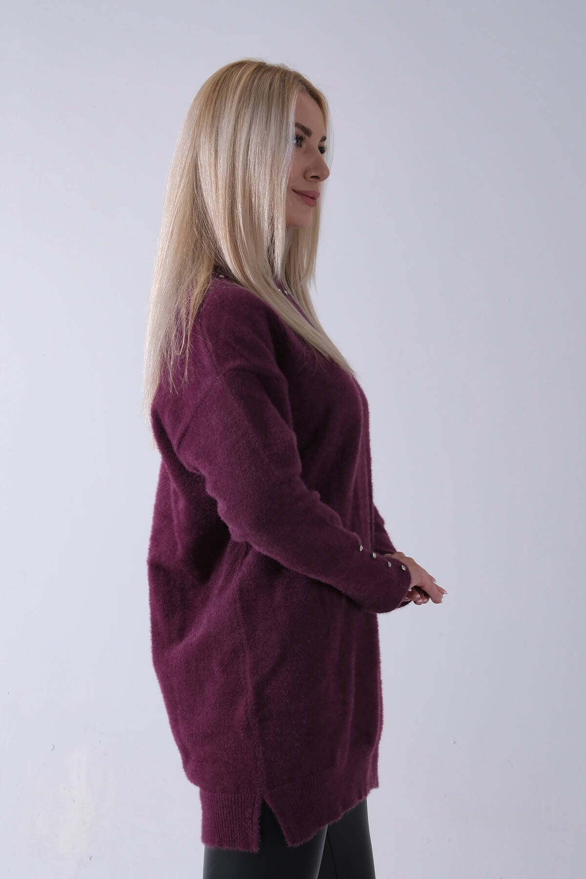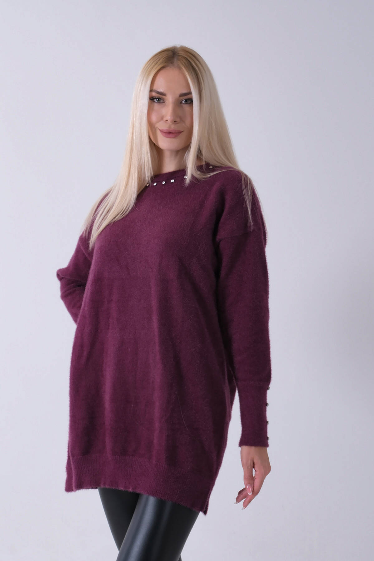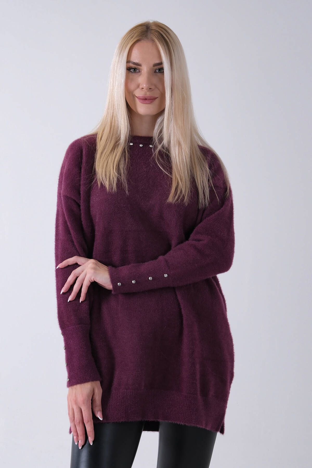 Mürdüm Yaka ve Kolları Taş Detaylı Bisiklet Yaka Kazak 44530206.21
