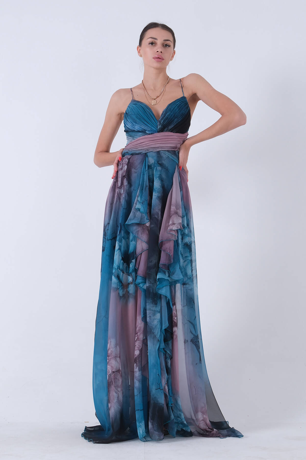 Petrol Baskılı Şifon Sırt Dekolteli Abiye Elbise 1301844.13