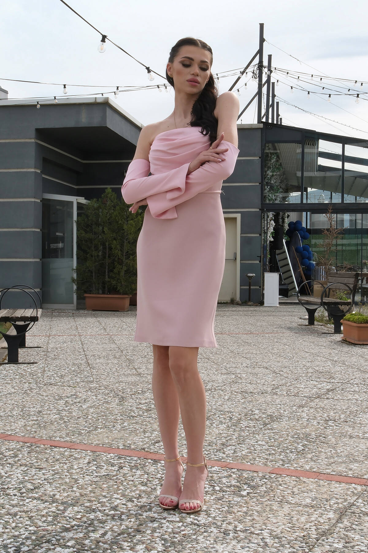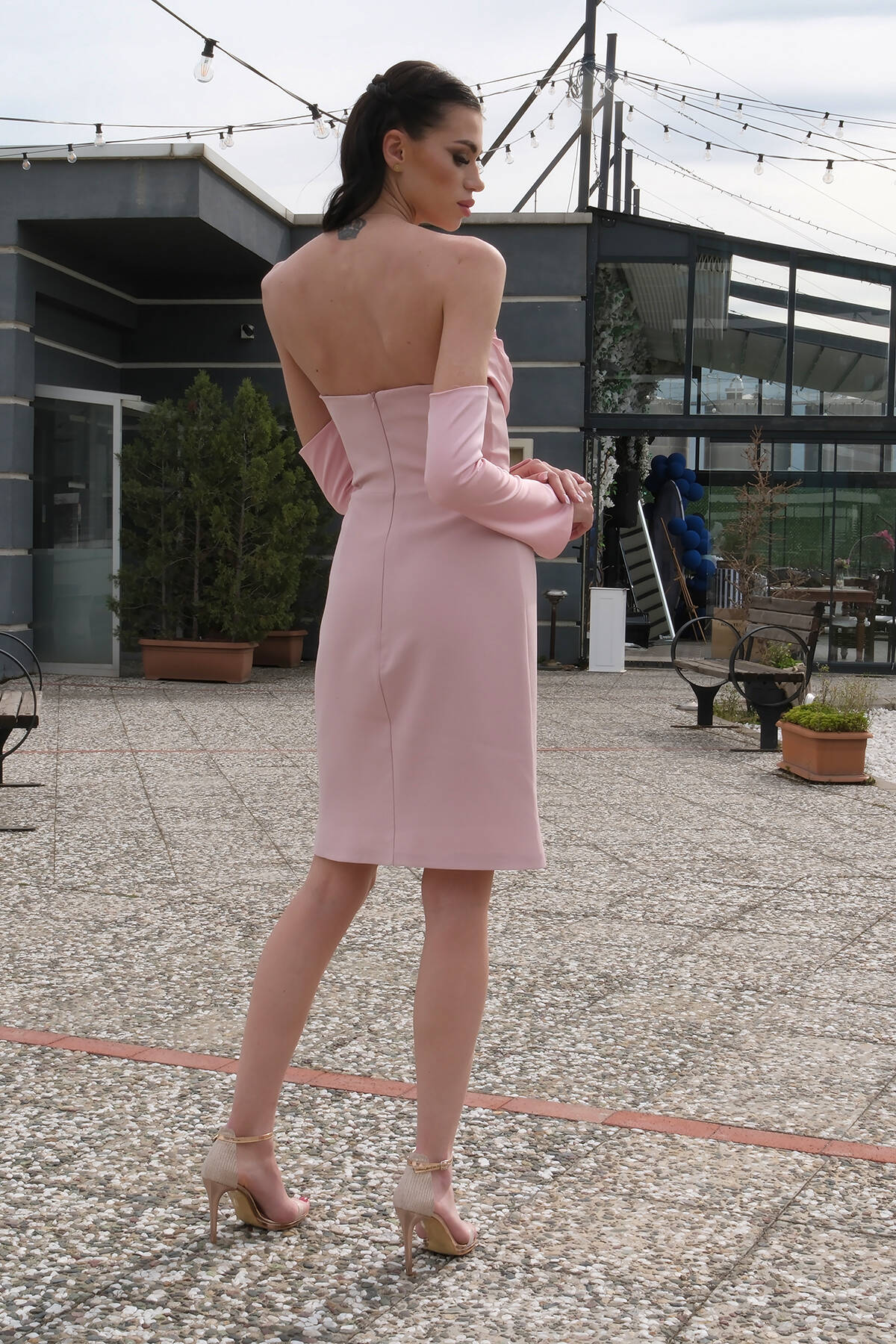 Pudra Drape Düğme Detaylı Midi Boy Abiye 0801168.79