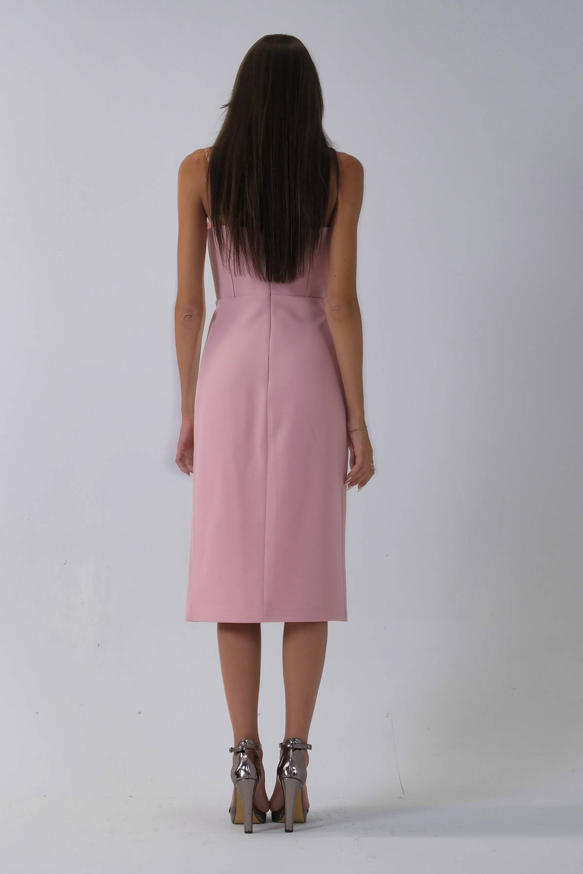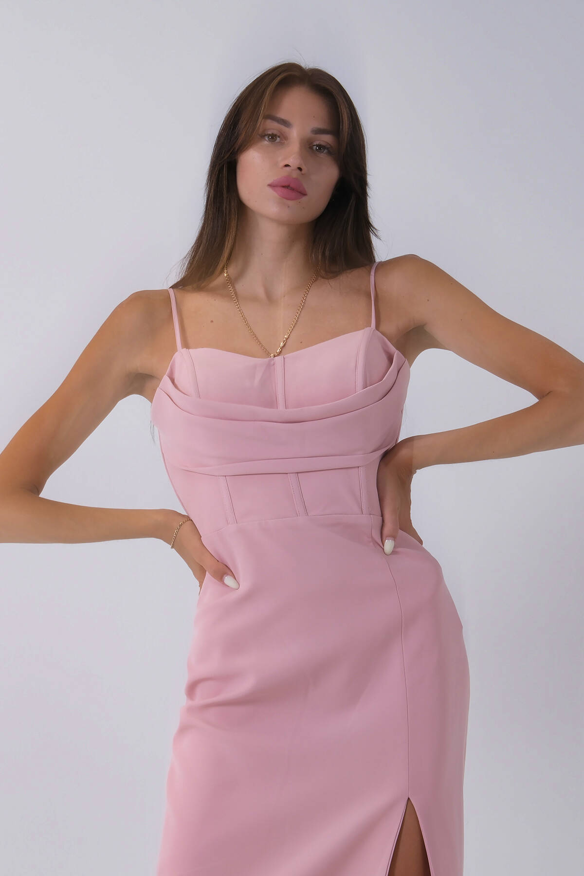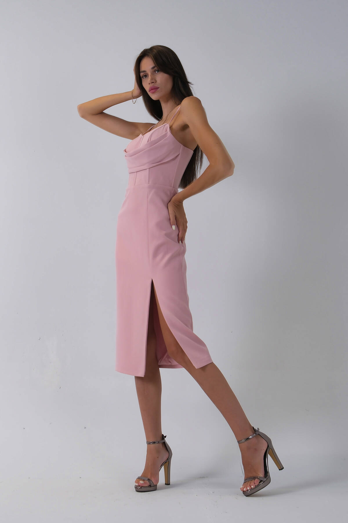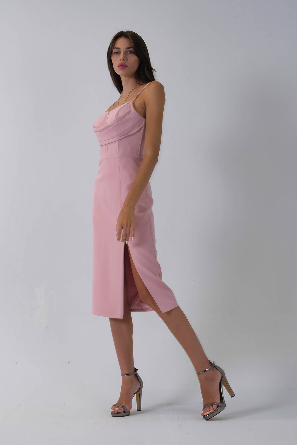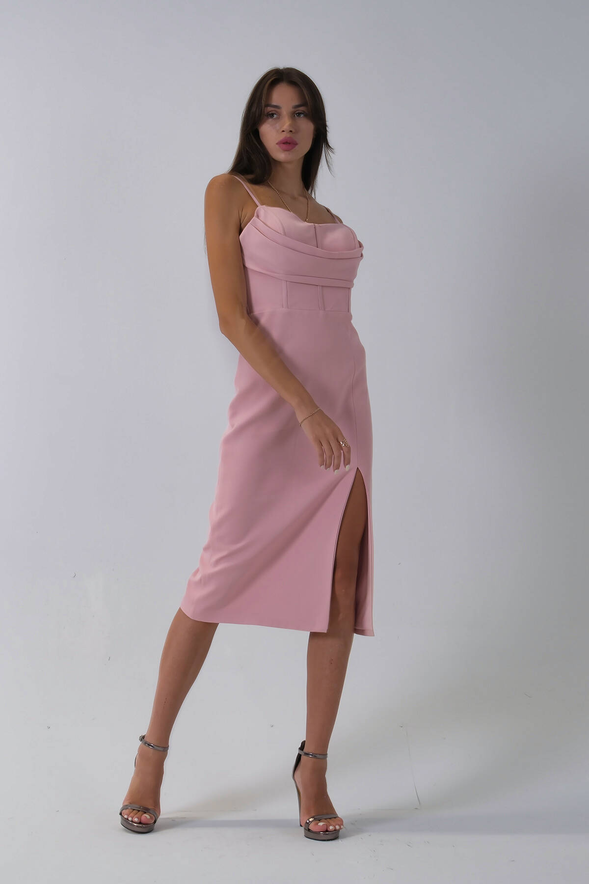 Pudra İp Askılı Yırtmaç Detaylı Midi Boy Abiye 0801078.79