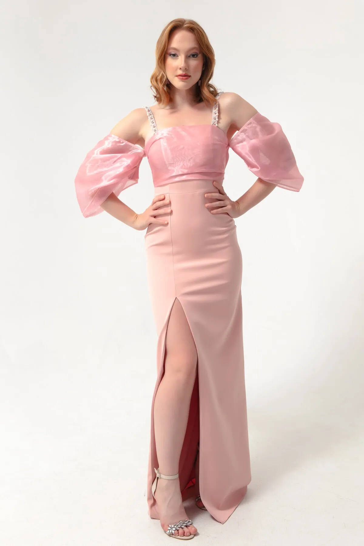 Pudra Kolları Şifon Yırtmaçlı Abiye 9705139.79