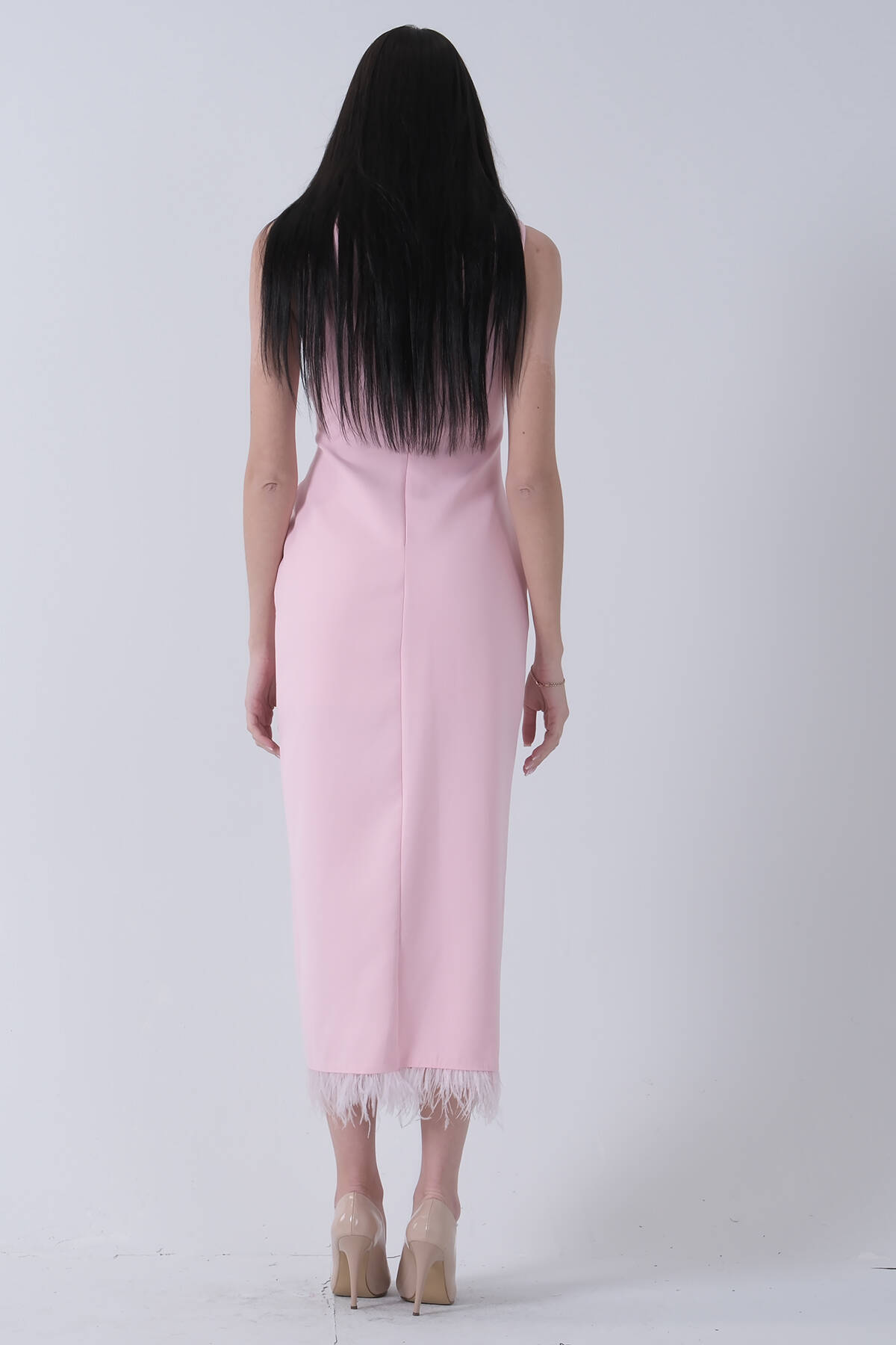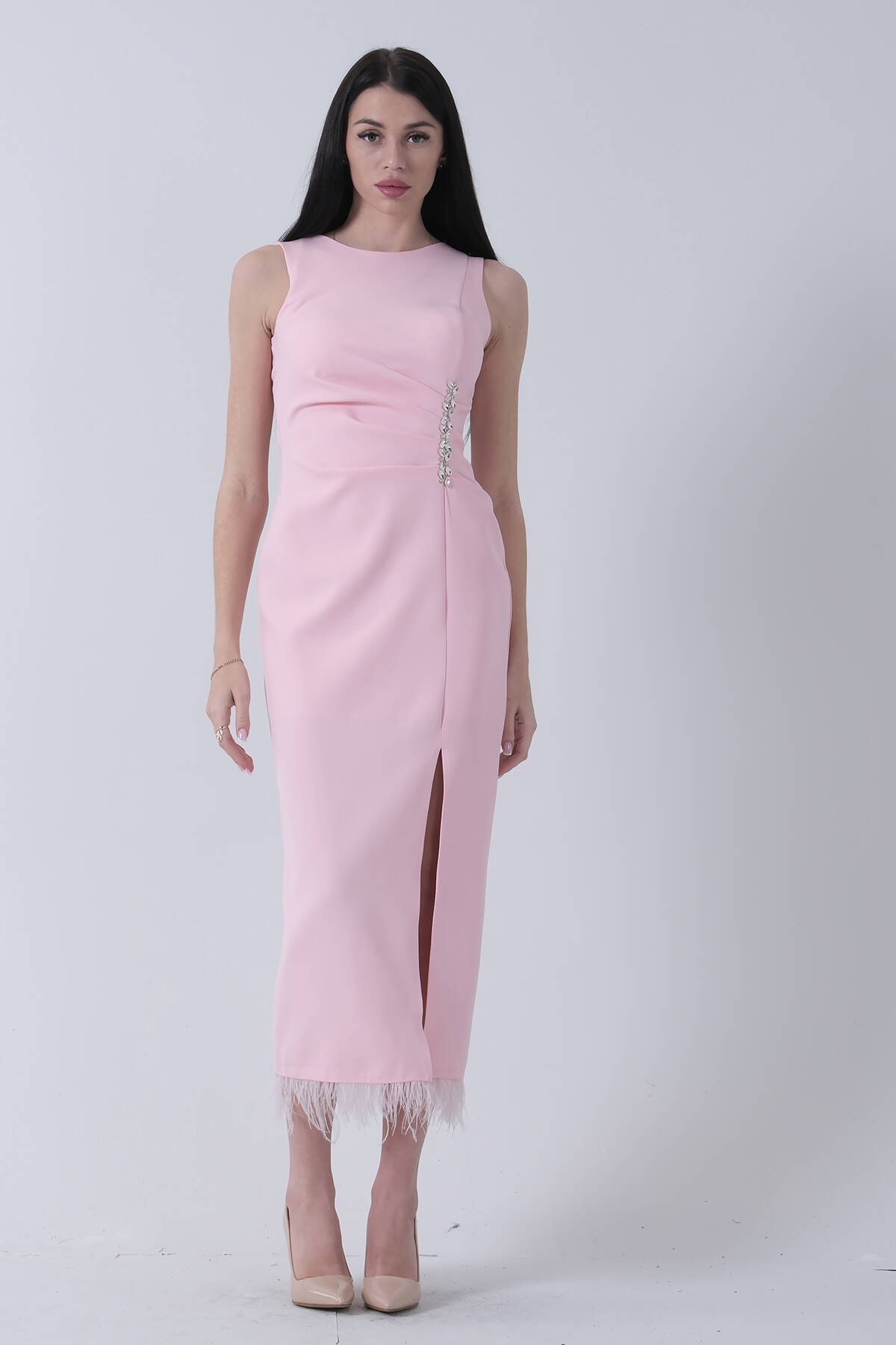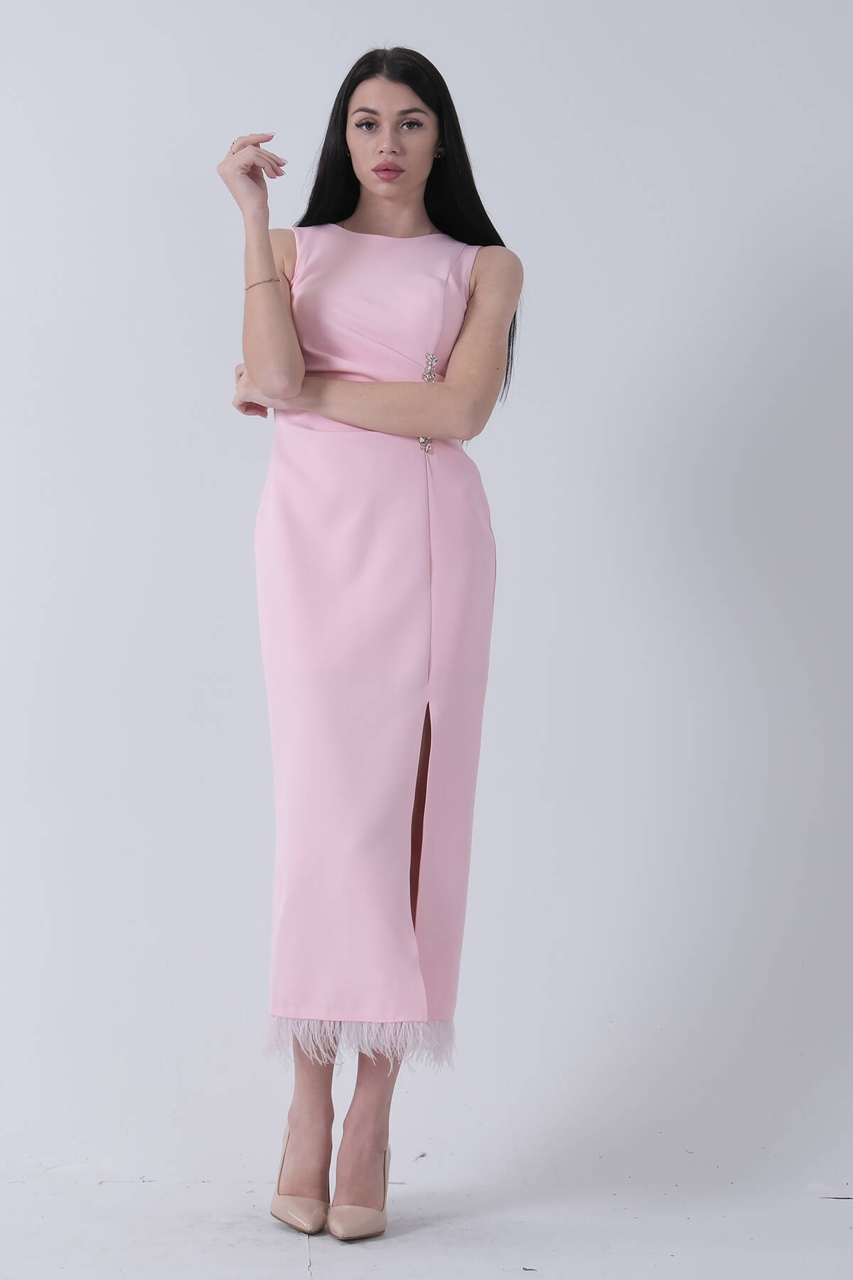 Pudra Önü Taş Detaylı Yırtmaçlı Tüy Detaylı Abiye 9705402.79