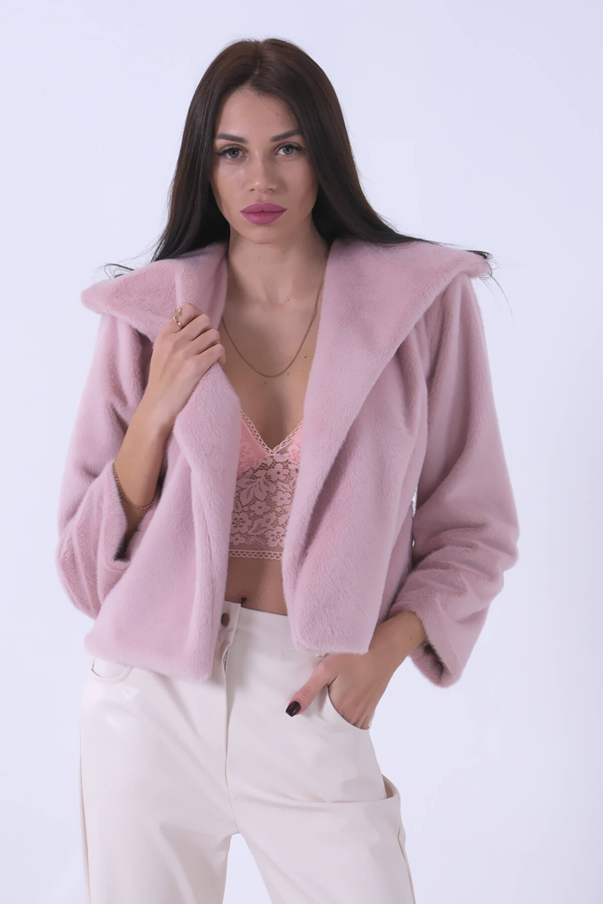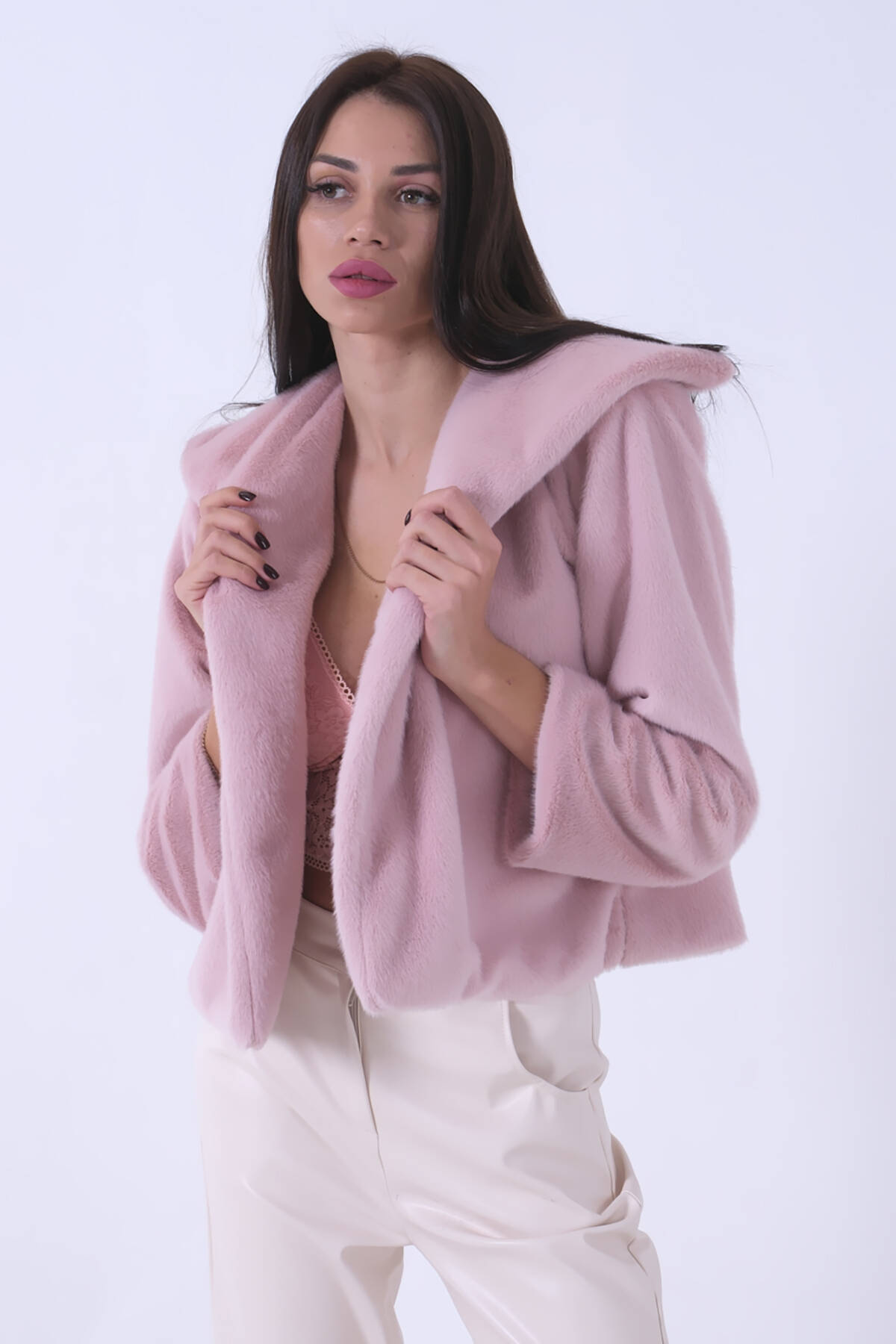 Pudra Peluş Şal Yaka Kapamasız Ceket 0105139.79