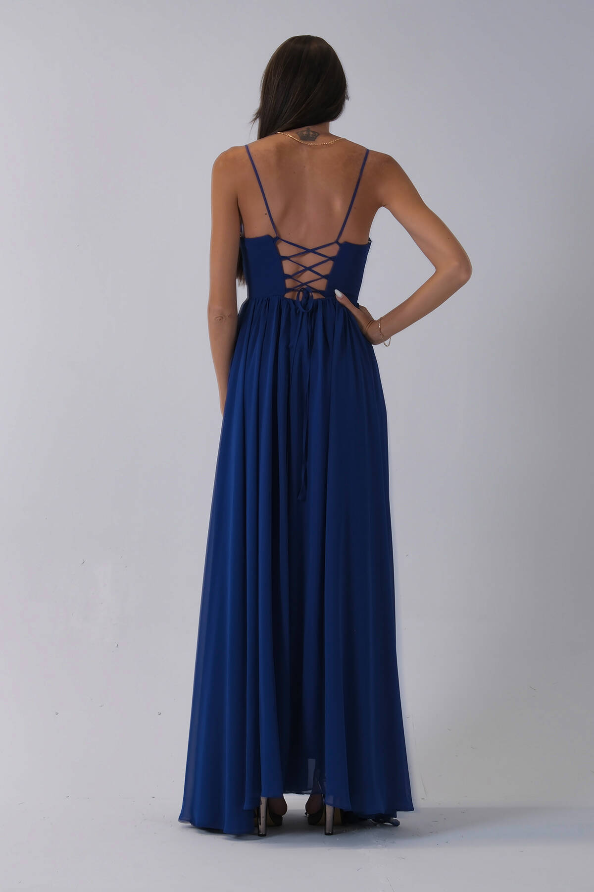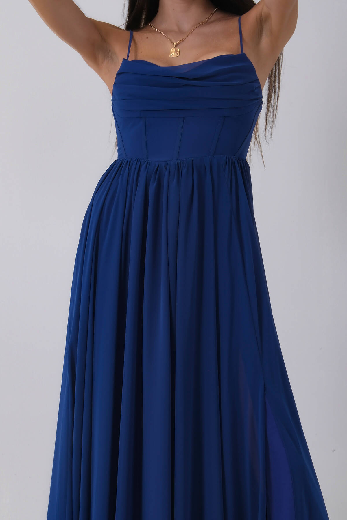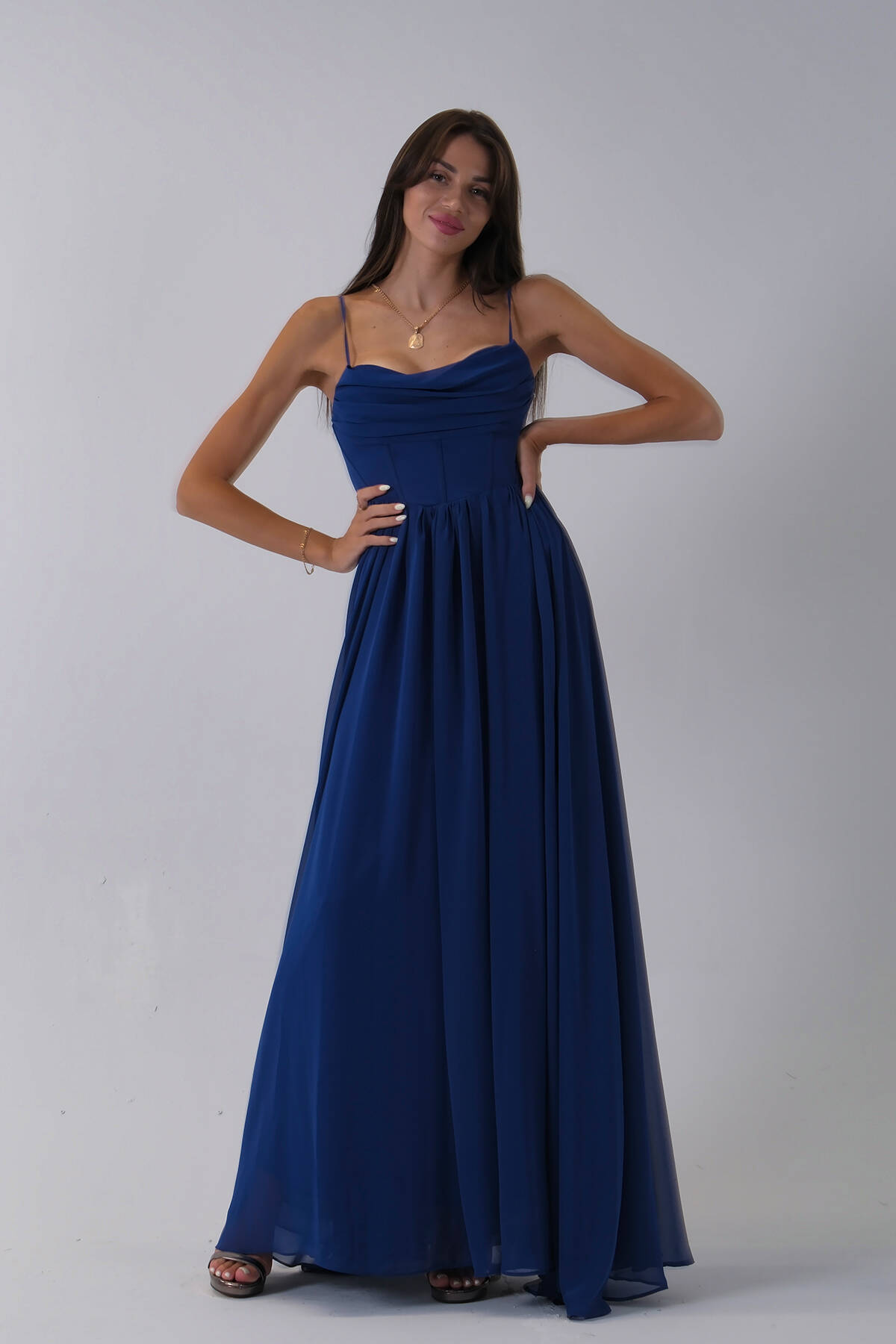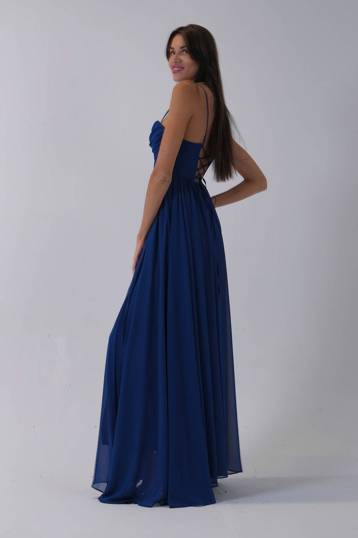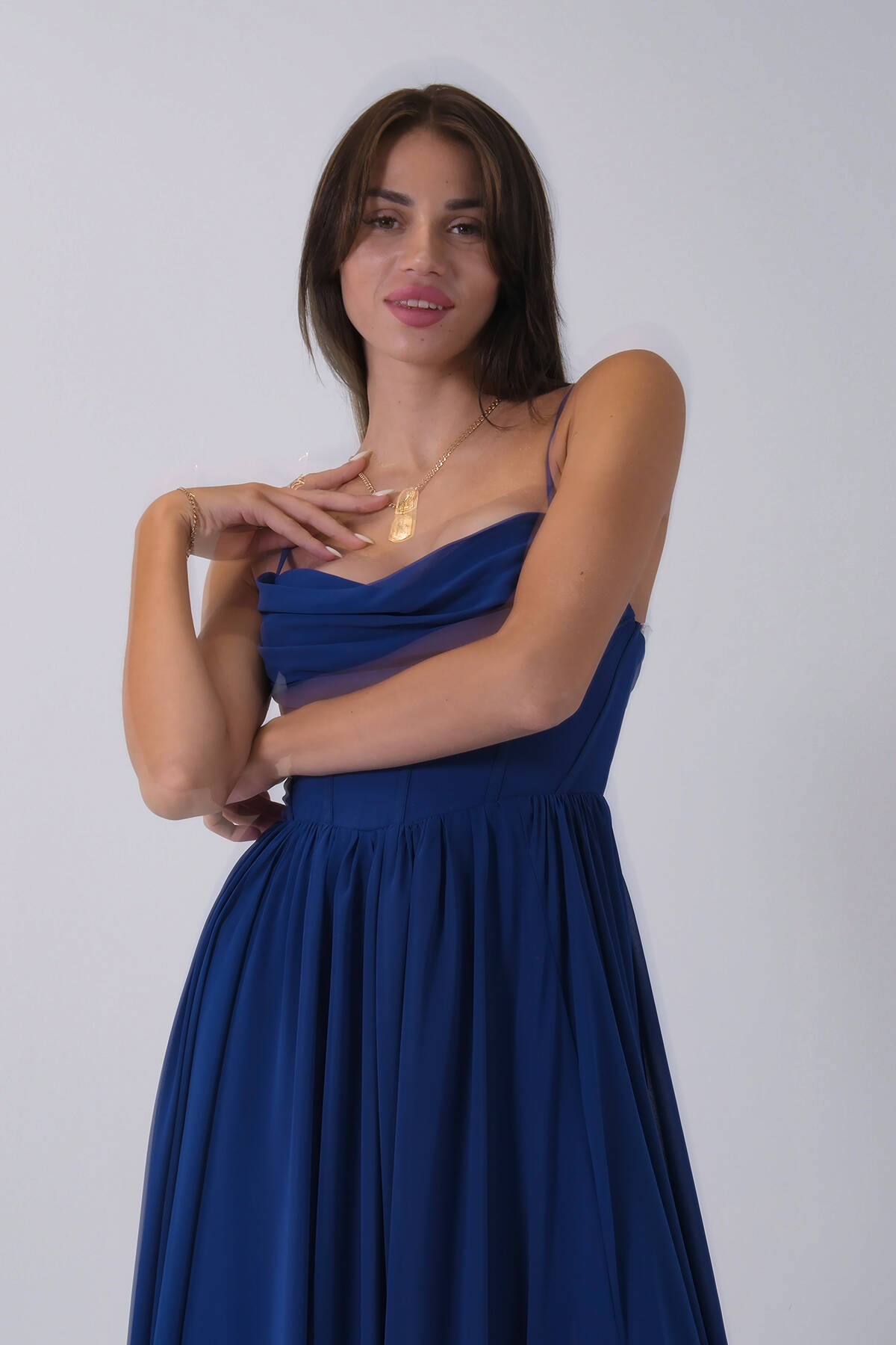 Saks Askılı Drapeli Uzun Şifon Abiye 08020032.26