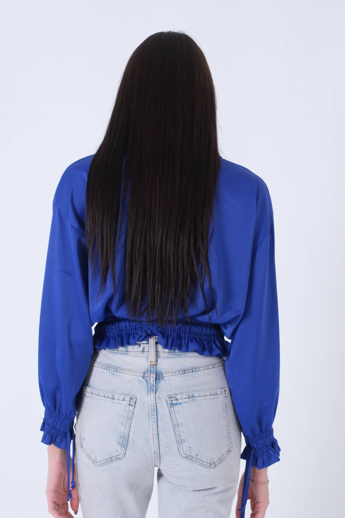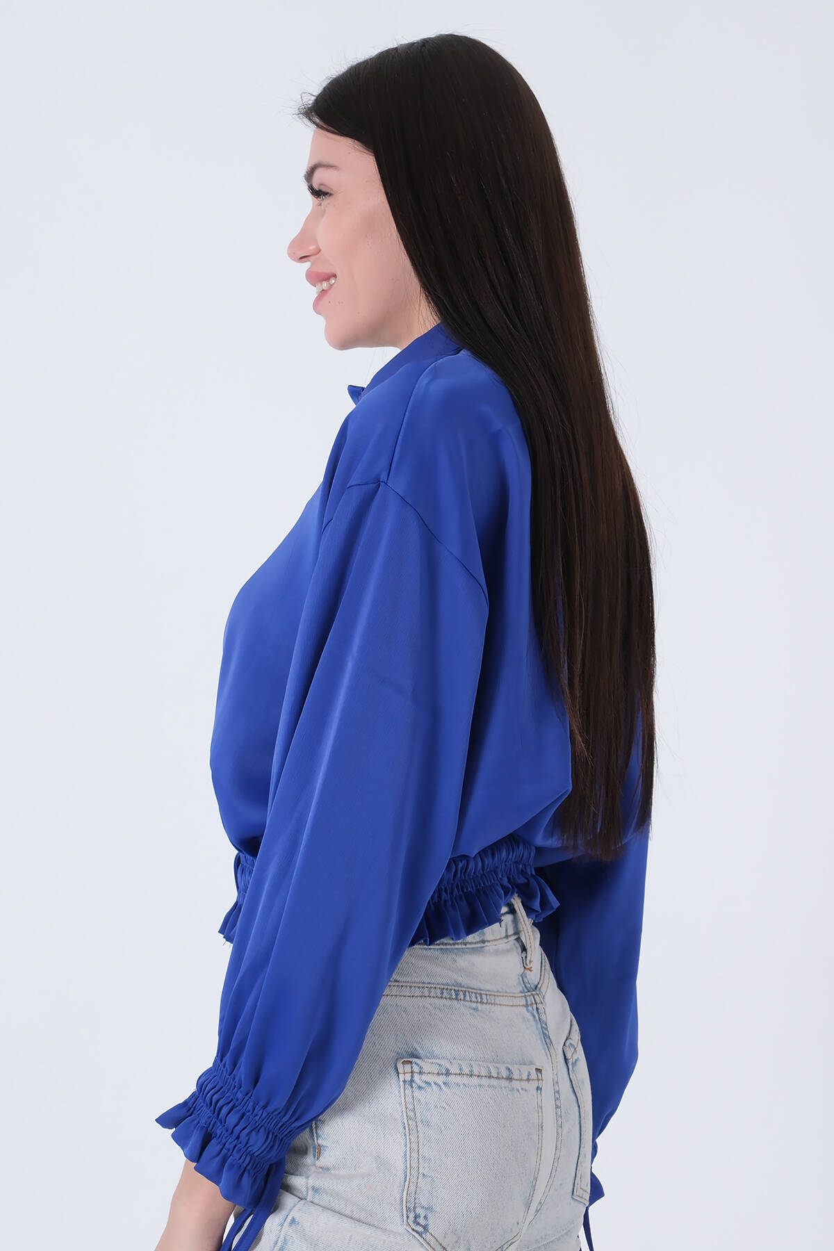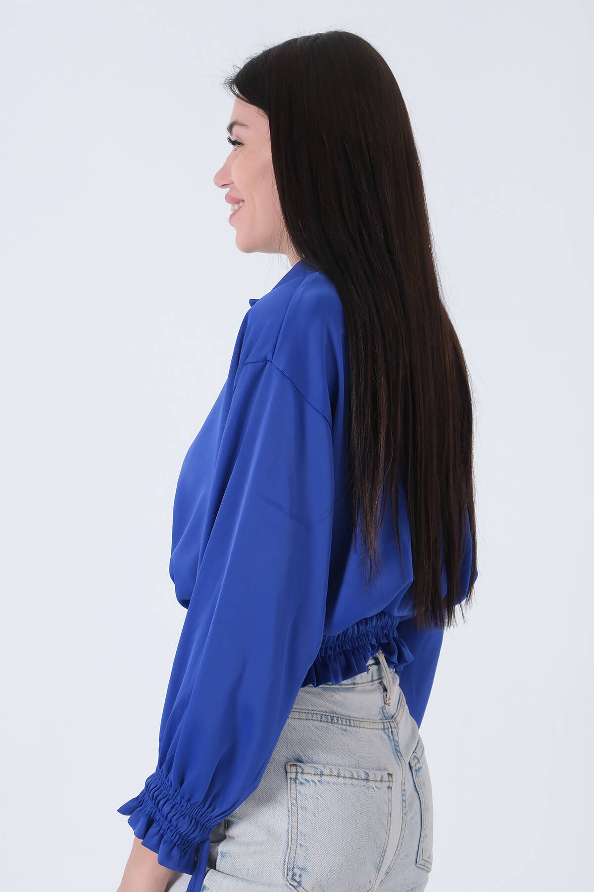 Saks Bel ve Kol Ucu Gipe Detaylı Saten Gömlek 3972863.26