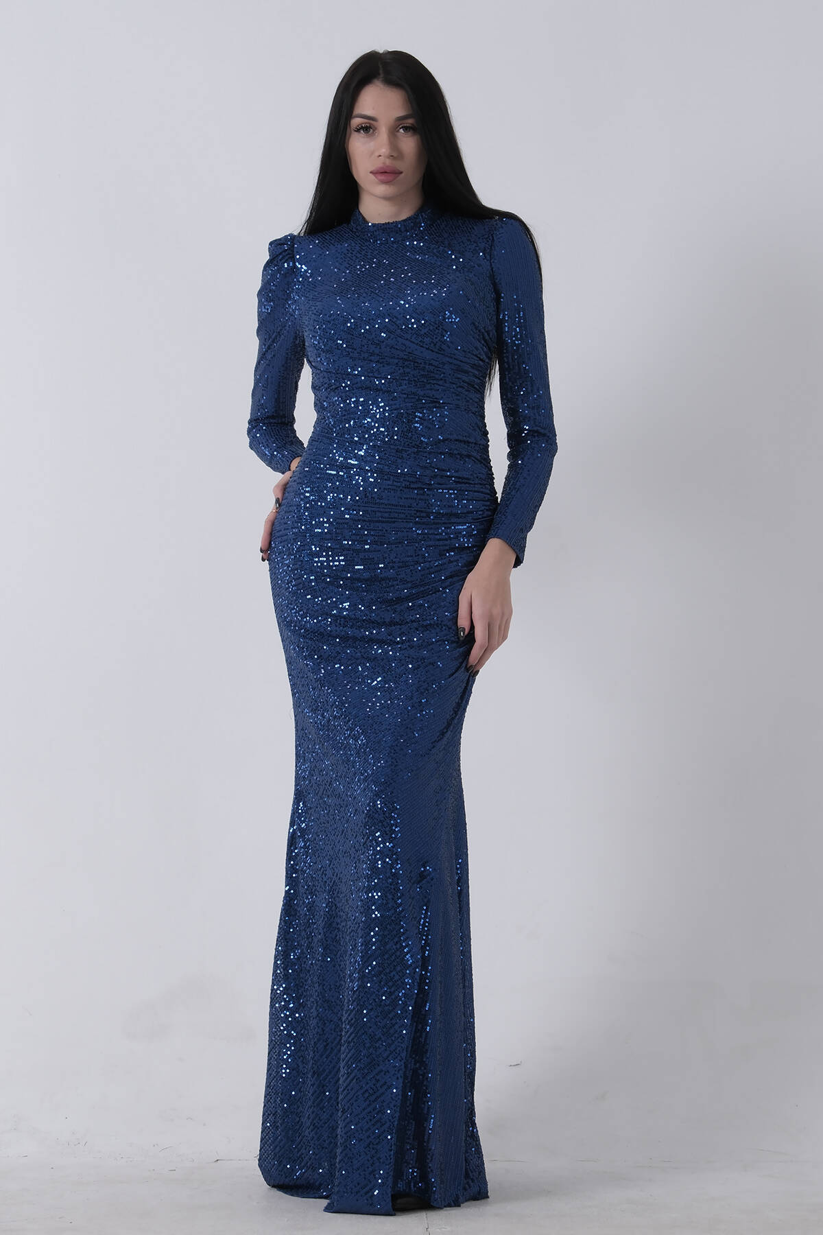 Lacivert Taş İşlemeli Uzun Balık Abiye 0801056.02